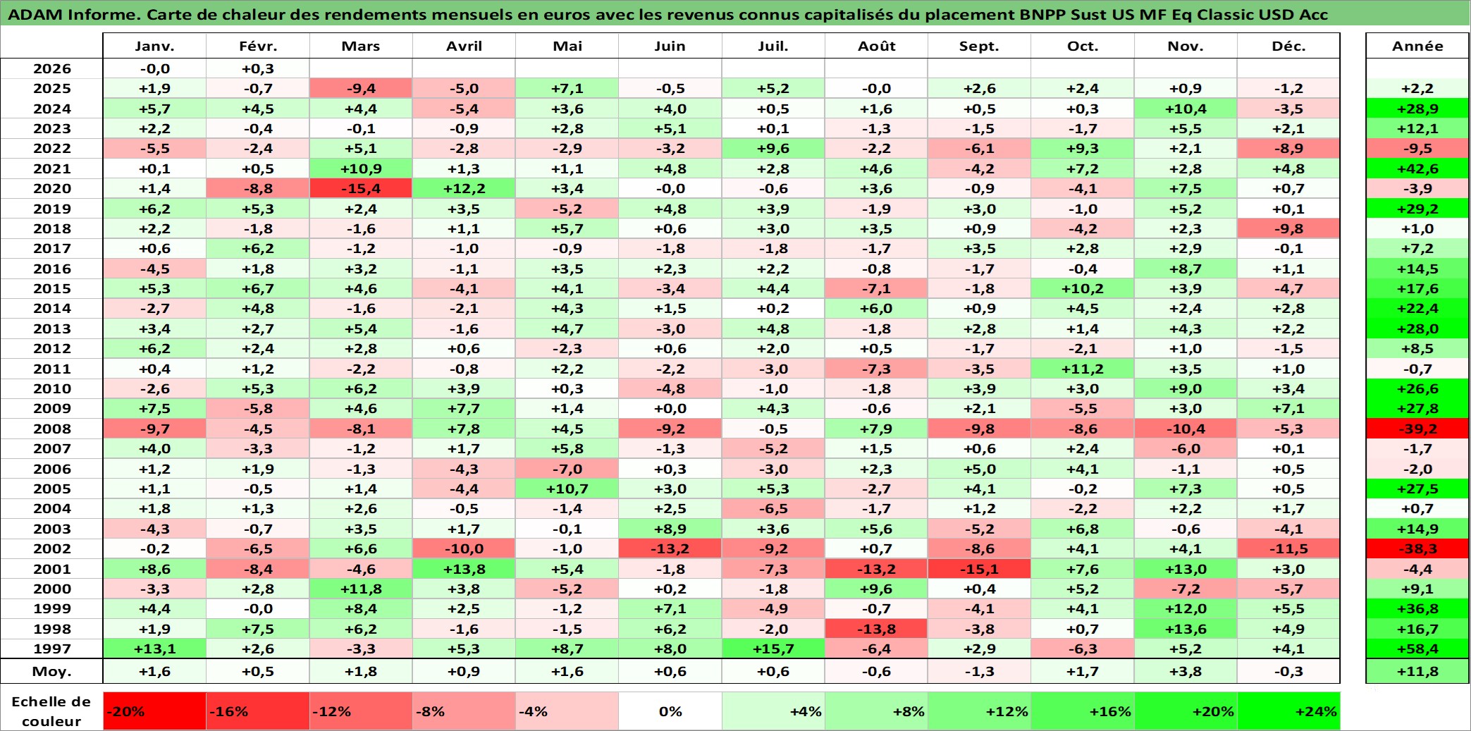 Dernière perfo 1 an en %
