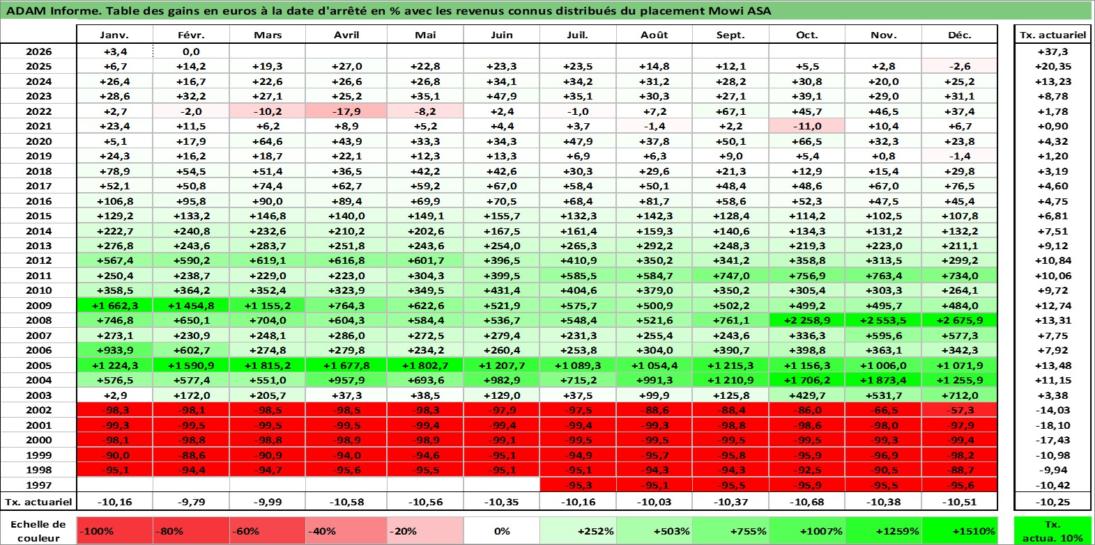 Dernière perfo 10 ans en %
