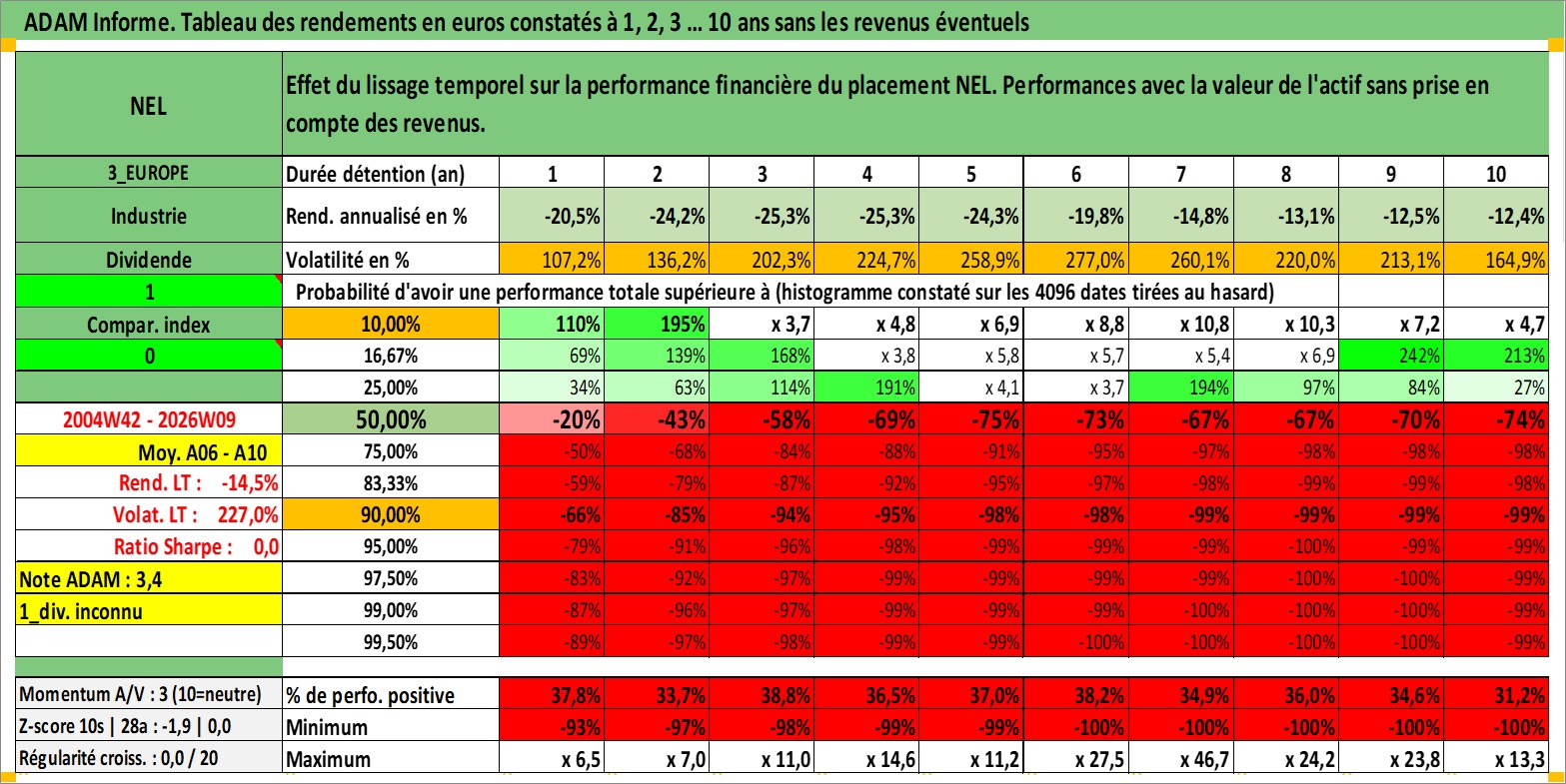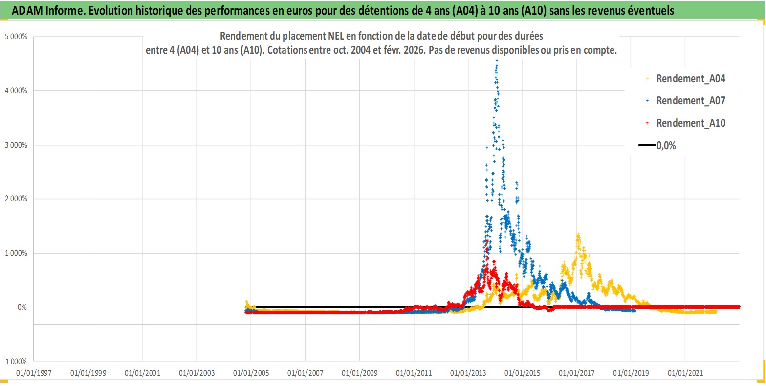 Site dédié aux investisseursPage dédiée sur site financeAnalyse des valorisations hebdomadaires de l'action NEL. Cet actif est cote en NOK. Les valorisations sont en contrevaleur EURO et couvrent les semaines 2004W42 a 2026W09. Les revenus de cet actif financier ne sont pas connus car non existants ou non disponibles sur le site Yahoo Finance. La note ESG de cet actif n'est pas connue.