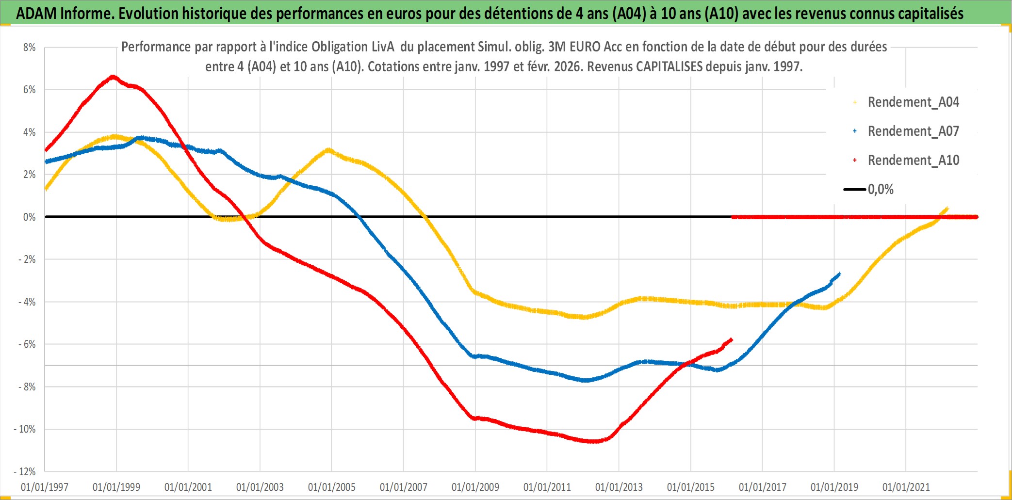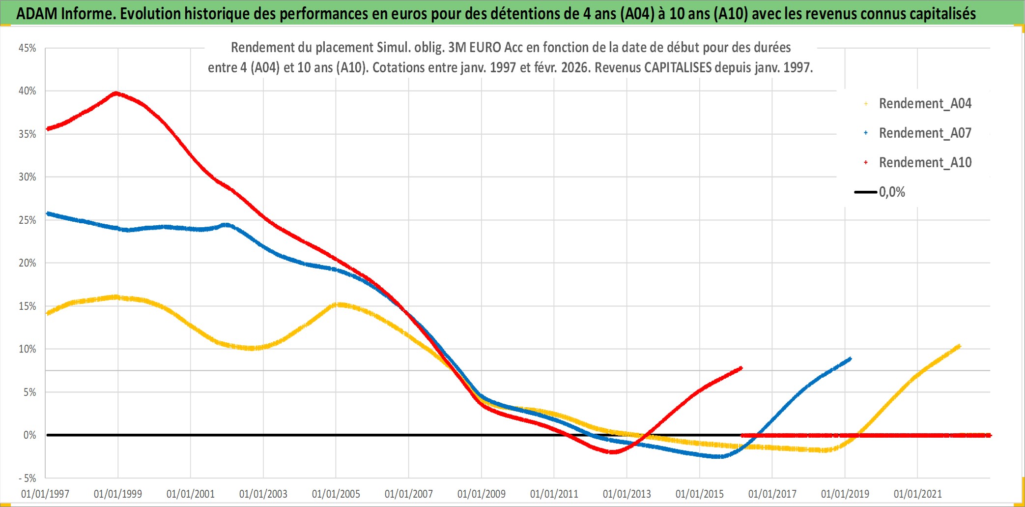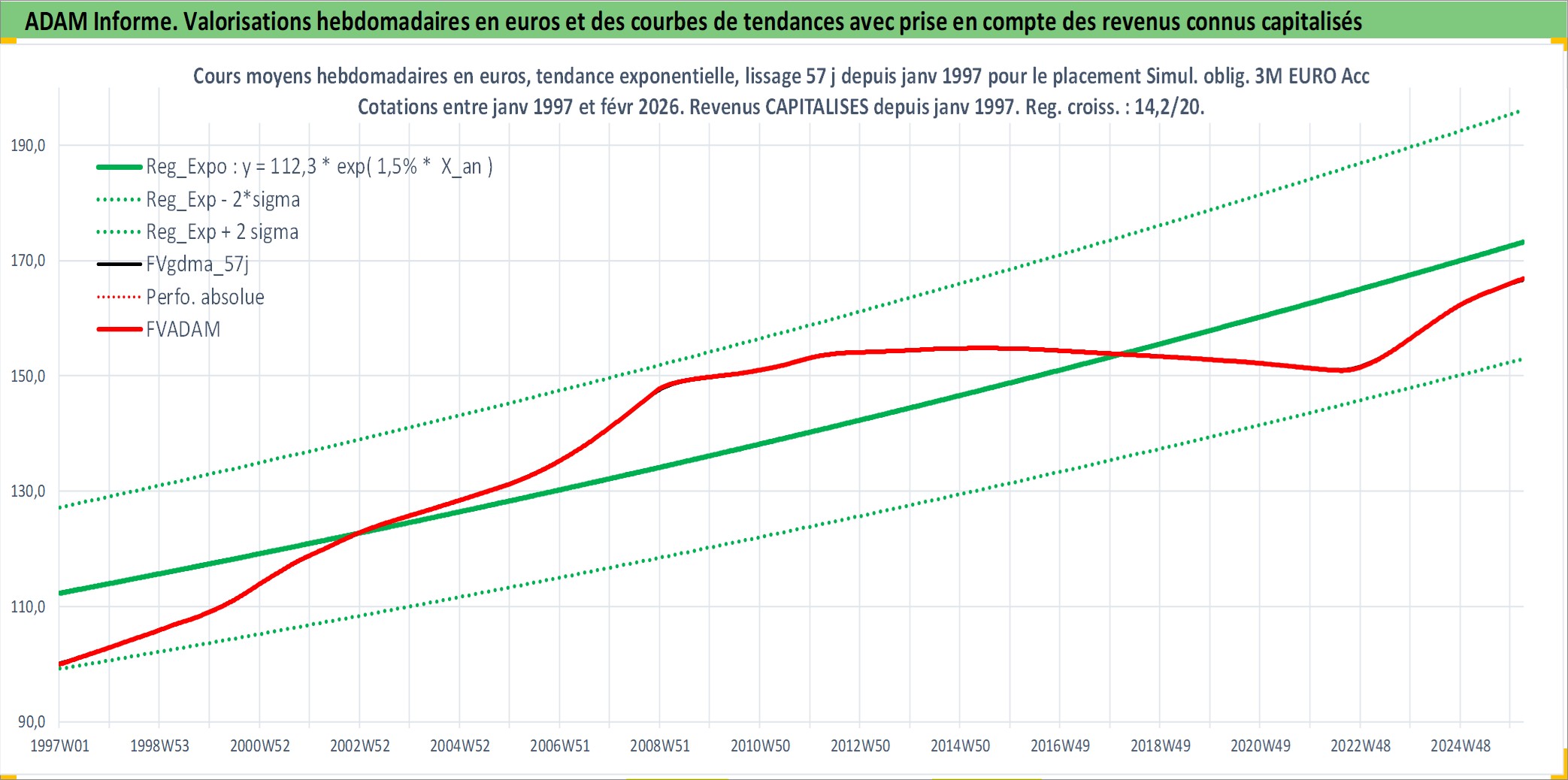 Site dédié aux investisseursPage dédiée sur site financeAnalyse des valorisations hebdomadaires de l'action Simul. oblig. 3M EURO Acc. Cet actif est cote en EUR. Les valorisations couvrent les semaines 1997W01 a 2026W09. Les revenus de cet actif financier sont pris en compte depuis la semaine 1997W01. La note ESG de cet actif n'est pas connue.