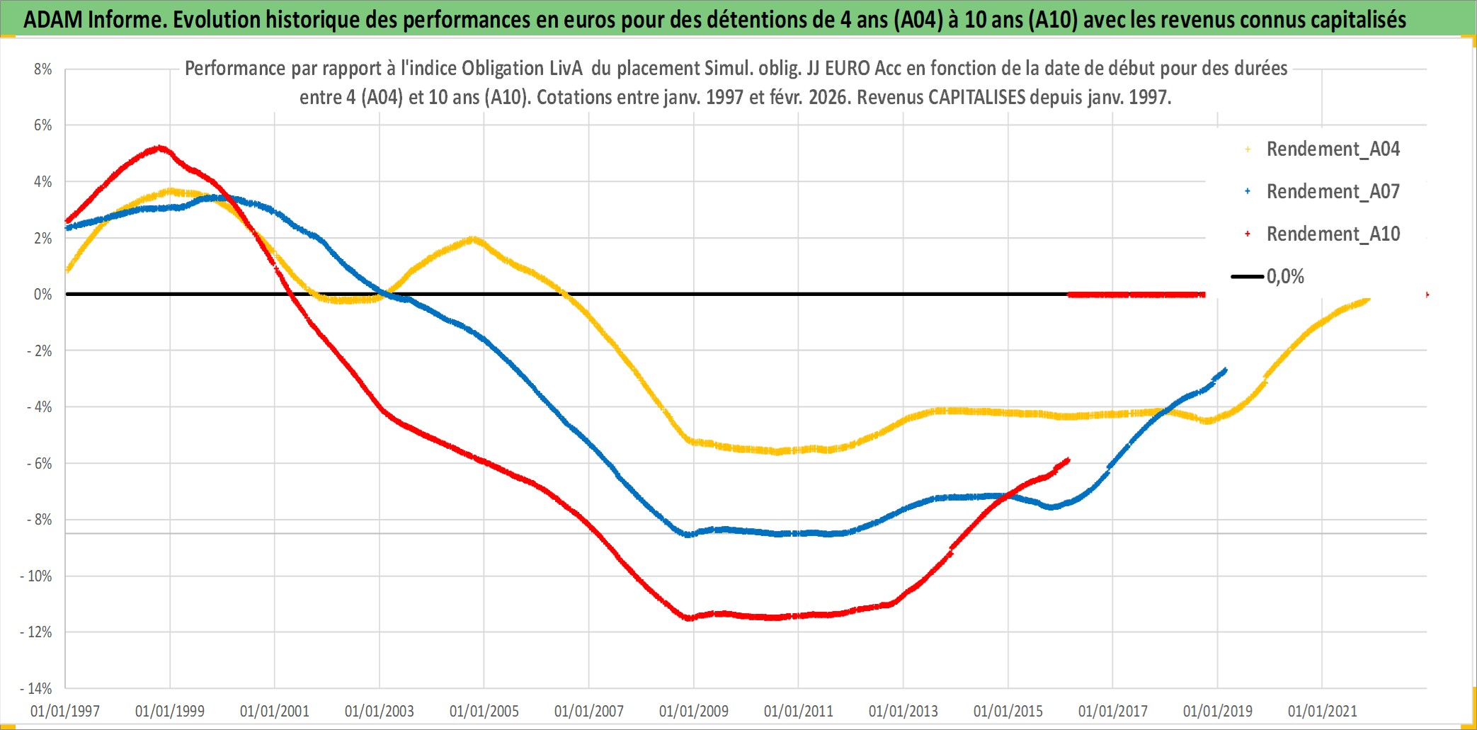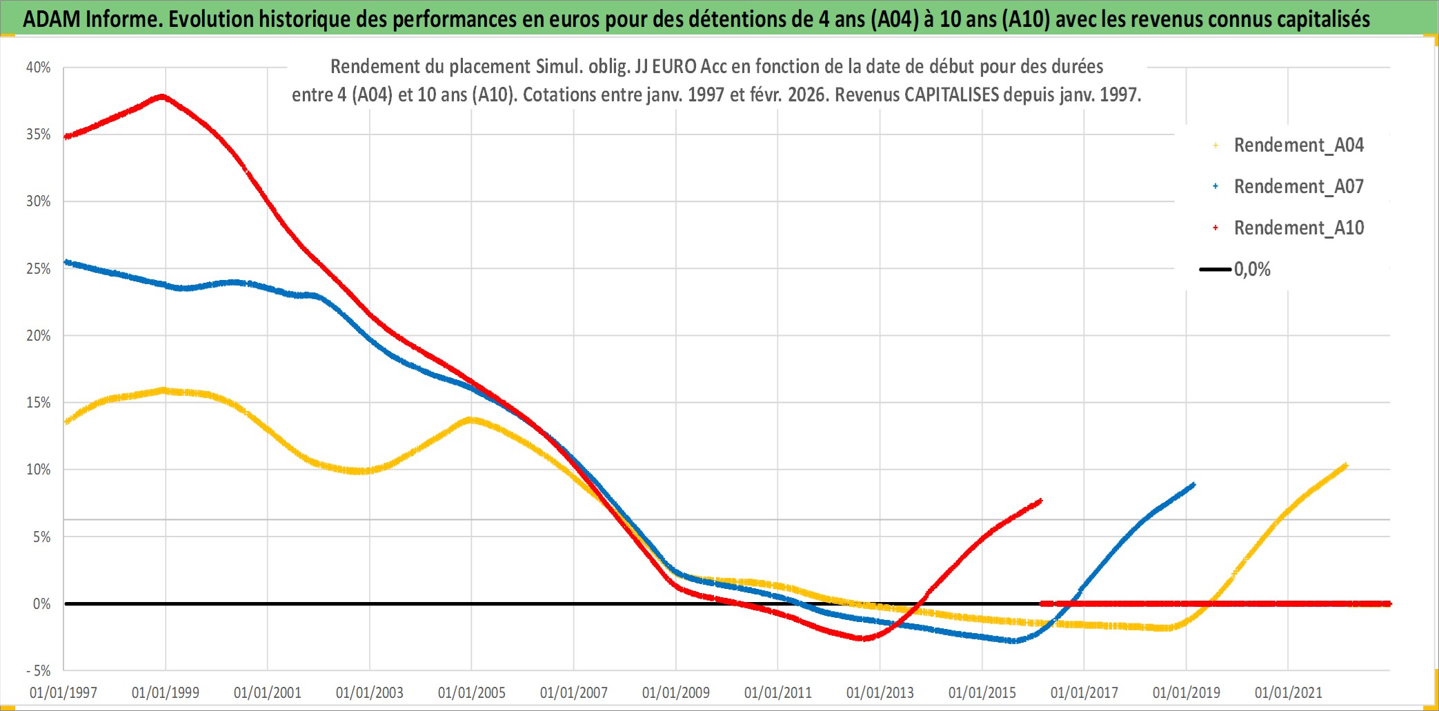 Site dédié aux investisseursPage dédiée sur site financeAnalyse des valorisations hebdomadaires de l'action Simul. oblig. JJ EURO Acc. Cet actif est cote en EUR. Les valorisations couvrent les semaines 1997W01 a 2026W09. Les revenus de cet actif financier sont pris en compte depuis la semaine 1997W01. La note ESG de cet actif n'est pas connue.