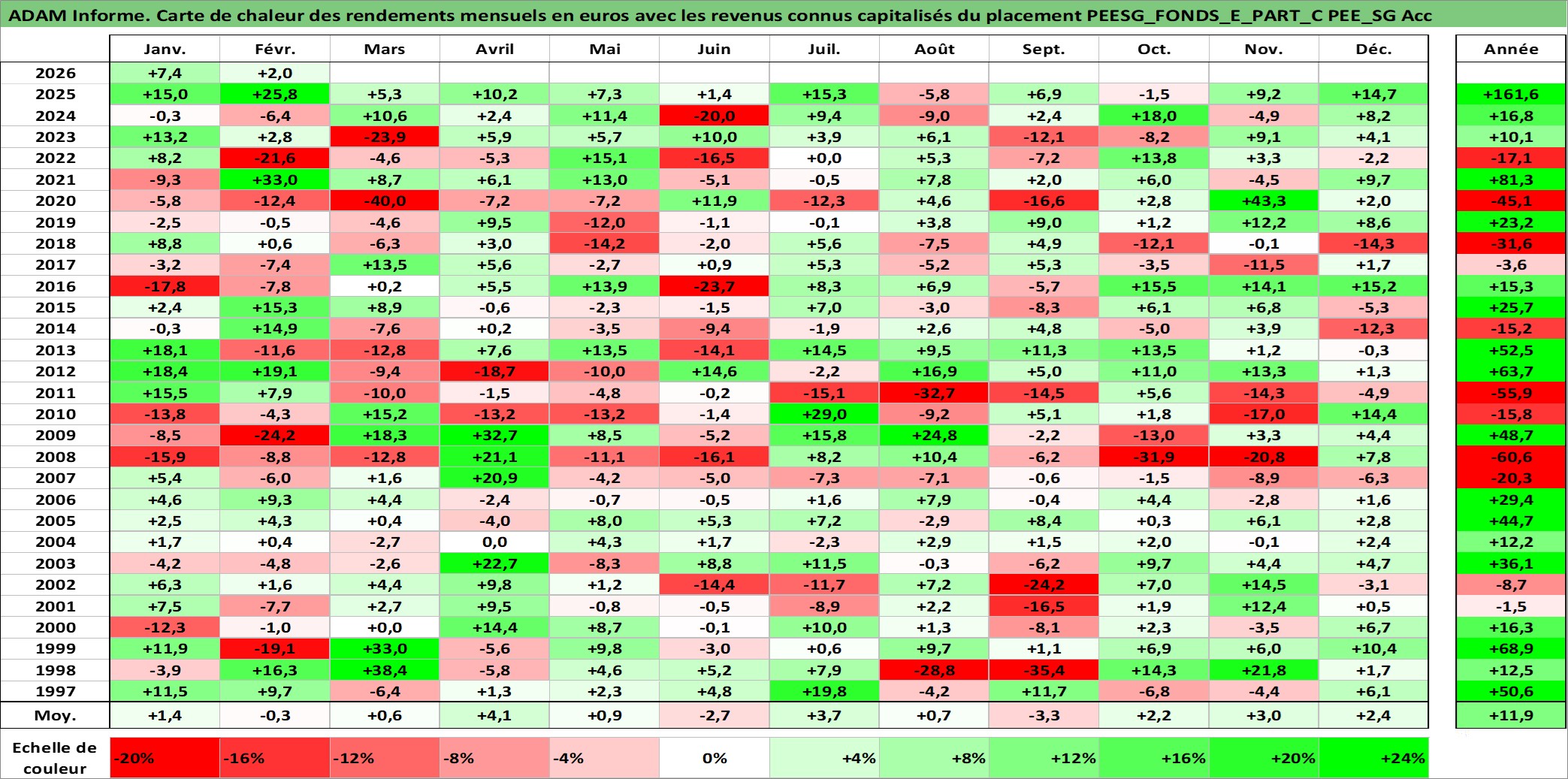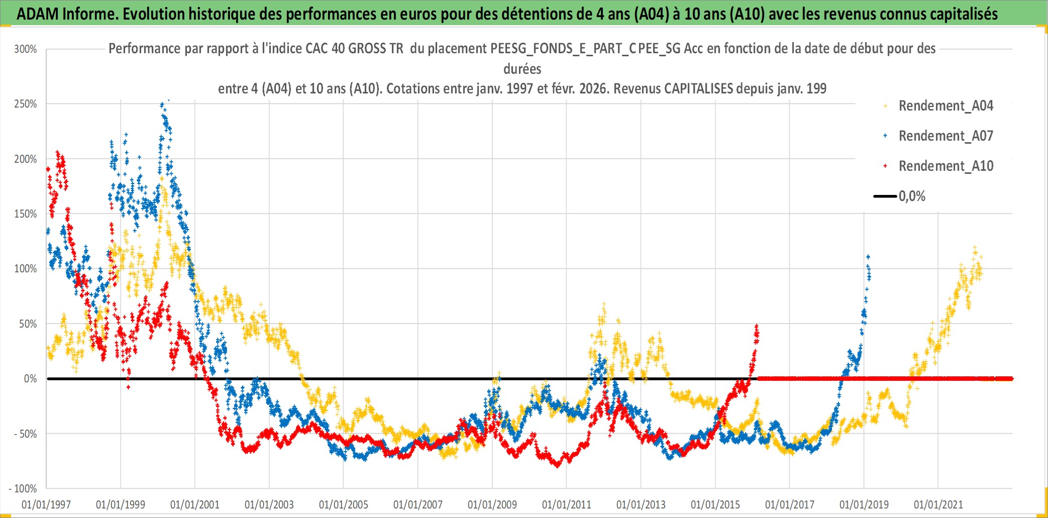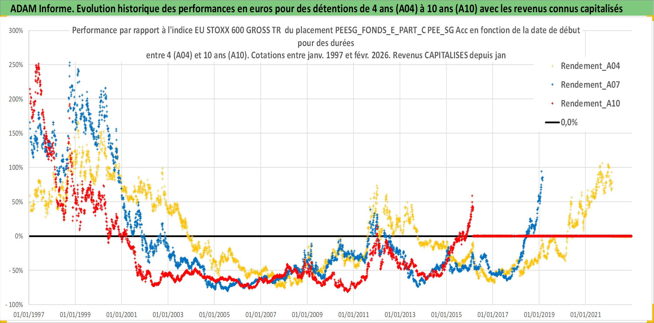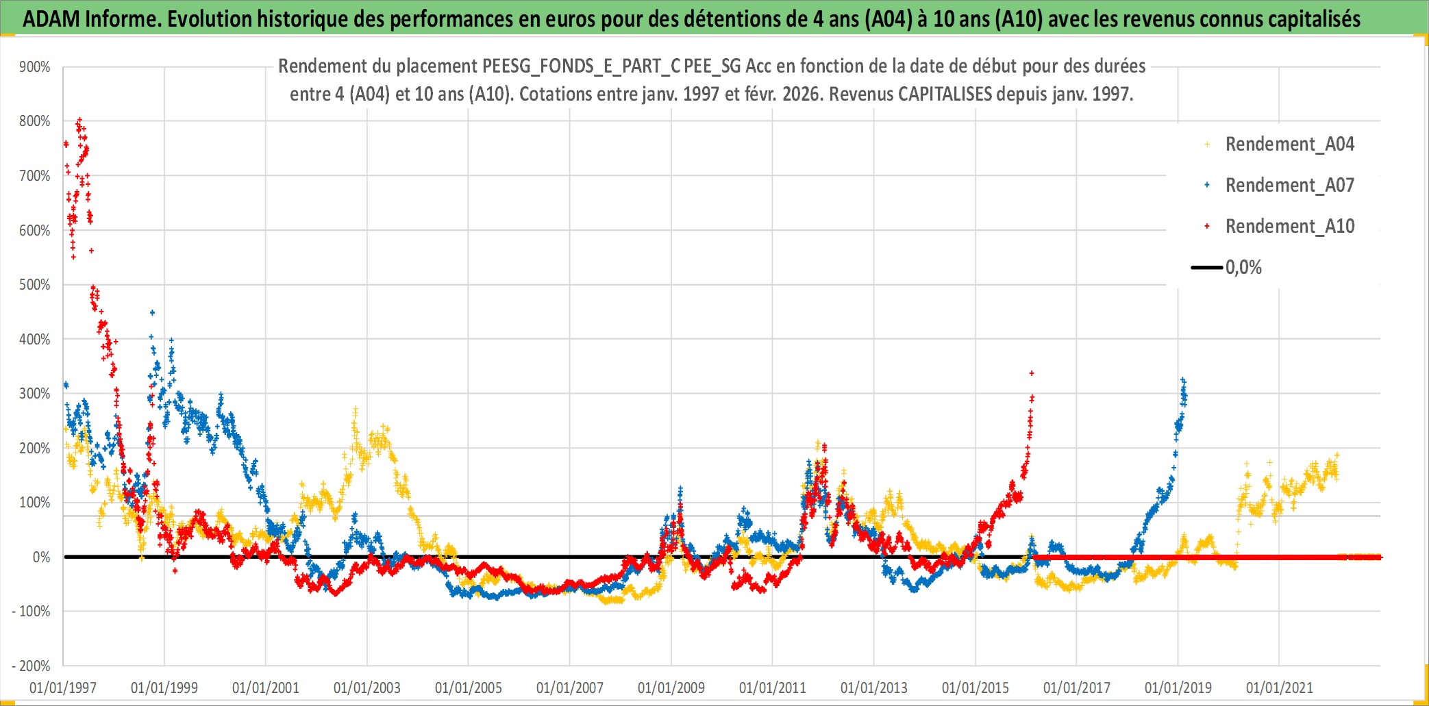 Site dédié aux investisseursPage dédiée sur site financeAnalyse des valorisations hebdomadaires du fonds PEESG_FONDS_E_PART_C PEE_SG Acc. Cet actif est cote en EUR. Les valorisations couvrent les semaines 1997W01 a 2026W09. Les revenus de cet actif financier sont pris en compte depuis la semaine 1997W01. La note ESG de cet actif n'est pas connue.
