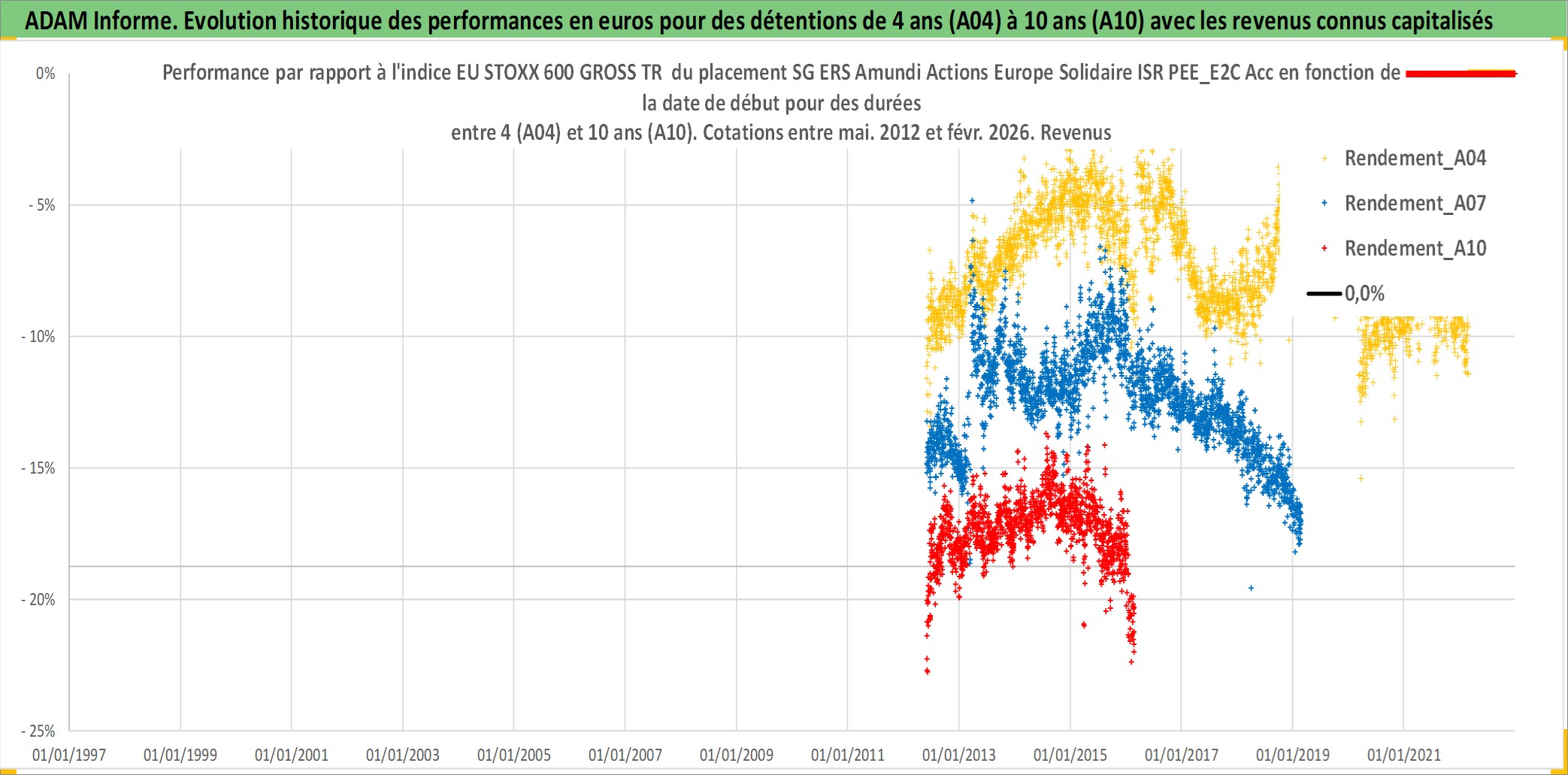 Site dédié aux investisseursPage dédiée sur site financeAnalyse des valorisations hebdomadaires du fonds SG ERS Amundi Actions Europe Solidaire ISR PEE_E2C Acc. Cet actif est cote en EUR. Les valorisations couvrent les semaines 2012W21 a 2026W09. Les revenus de cet actif financier sont pris en compte depuis la semaine 2012W21. La note globale ESG de cet actif est estimee a 10.0 (apres rebasage entre 0 et 20).