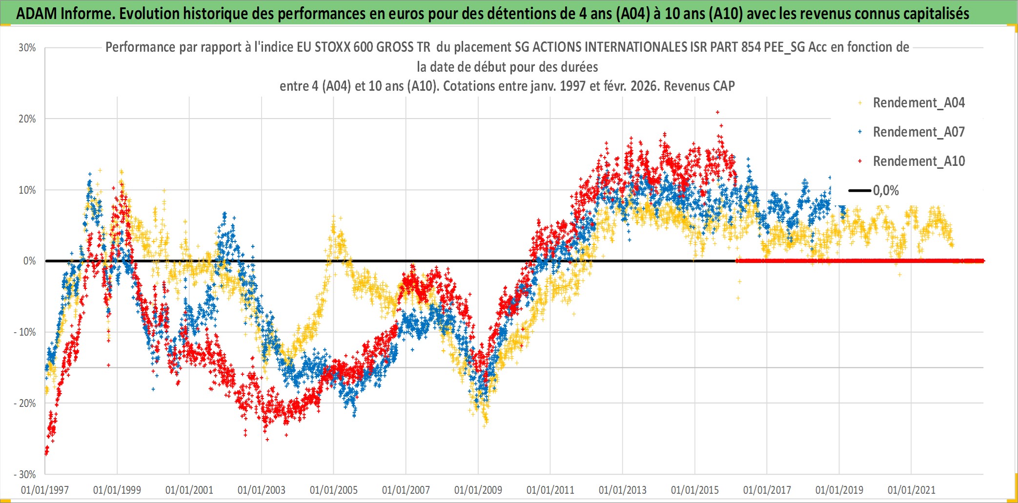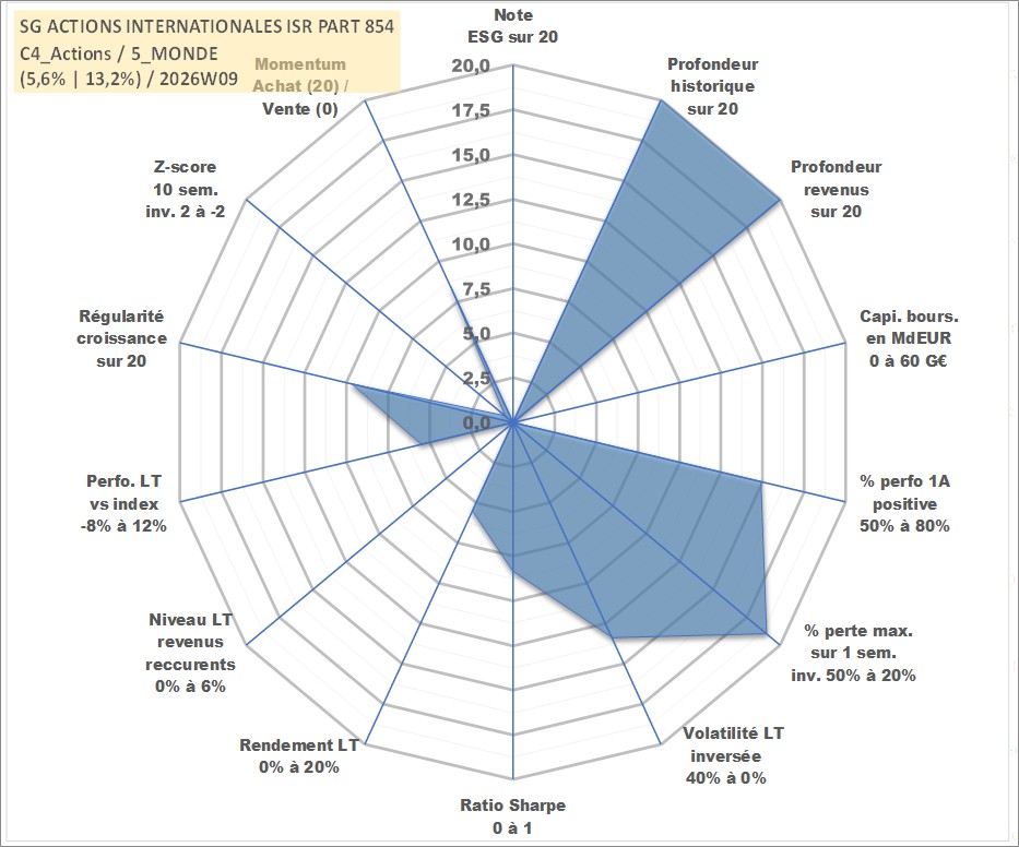 Site dédié aux investisseursPage dédiée sur site financeAnalyse des valorisations hebdomadaires du fonds SG ACTIONS INTERNATIONALES ISR PART 854 PEE_SG Acc. Cet actif est cote en EUR. Les valorisations couvrent les semaines 1997W01 a 2026W09. Les revenus de cet actif financier sont pris en compte depuis la semaine 1997W01. La note ESG de cet actif n'est pas connue.