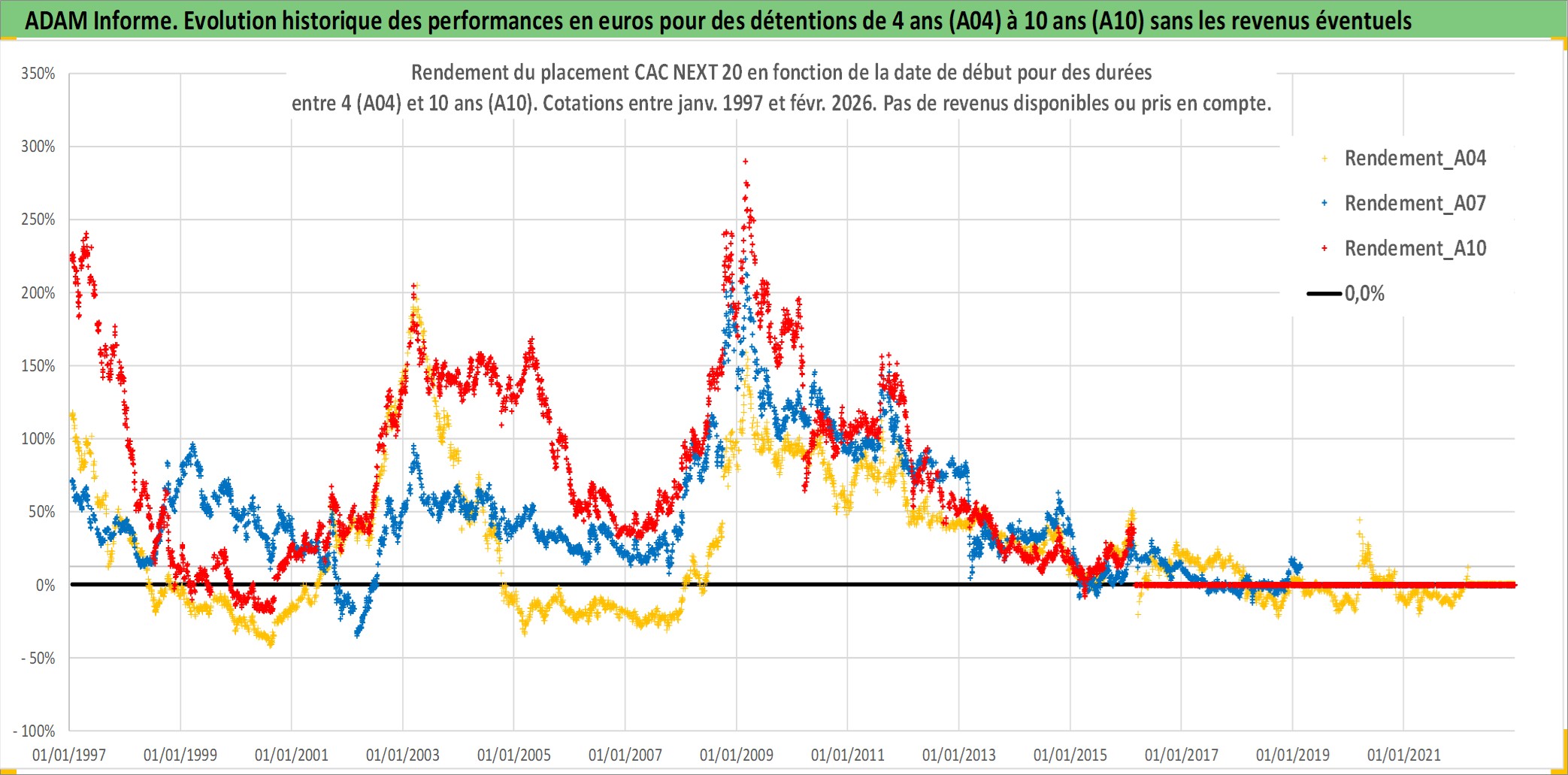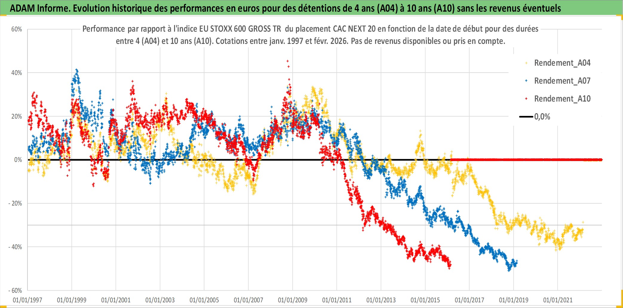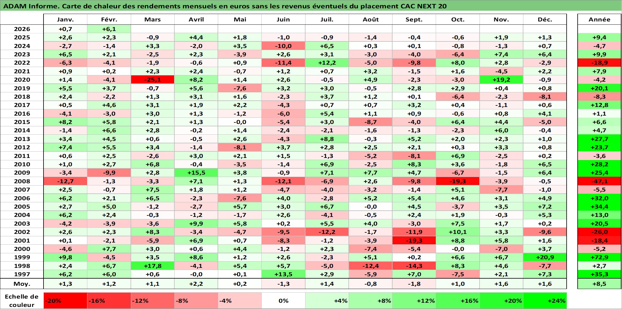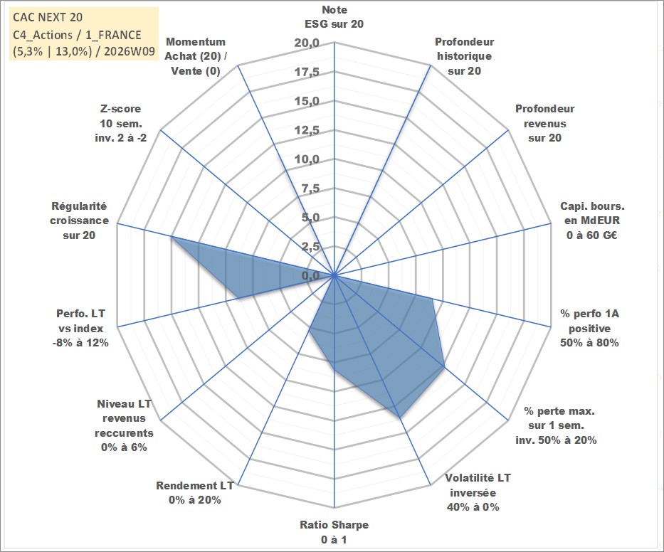 Site dédié aux investisseursPage dédiée sur site financeAnalyse des valorisations hebdomadaires de l'actif CAC NEXT 20. Cet actif est cote en EUR. Les valorisations couvrent les semaines 1997W01 a 2026W09. Les revenus de cet actif financier ne sont pas connus car non existants ou non disponibles sur le site Yahoo Finance. La note ESG de cet actif n'est pas connue.