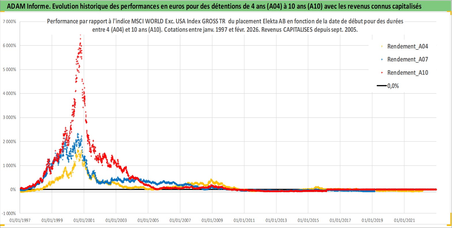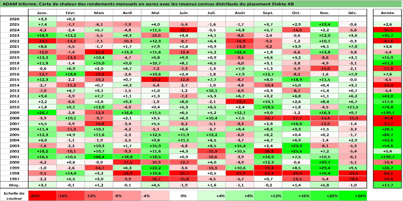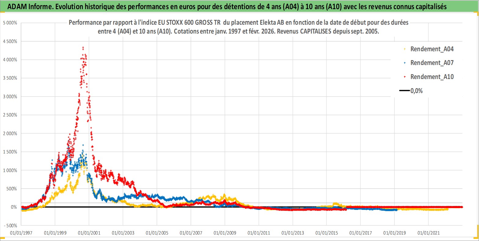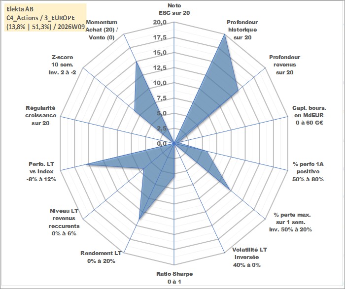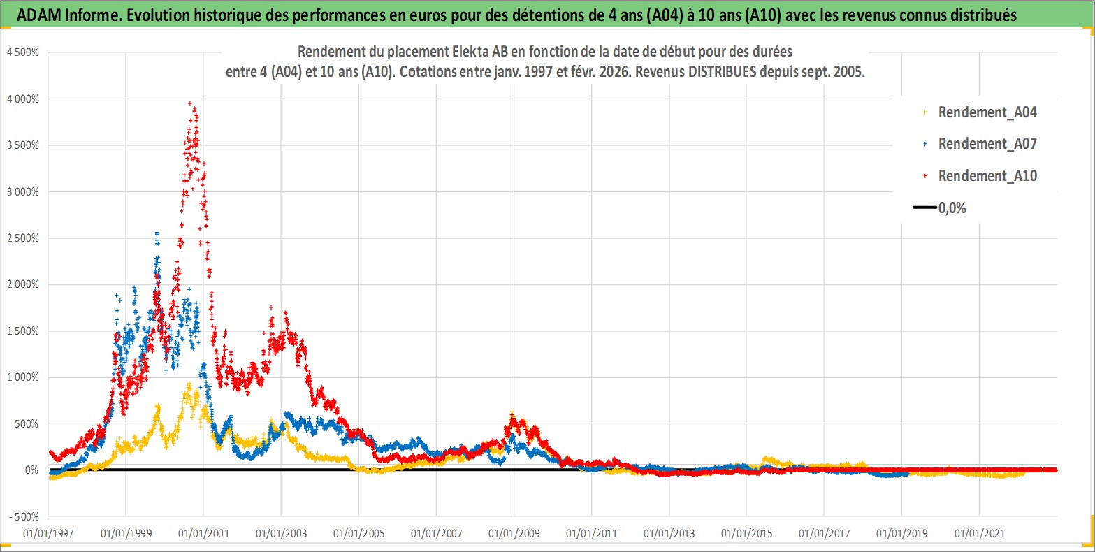 Site dédié aux investisseursPage dédiée sur site financeAnalyse des valorisations hebdomadaires de l'action Elekta AB. Cet actif est cote en SEK. Les valorisations sont en contrevaleur EURO et couvrent les semaines 1997W01 a 2026W09. Les revenus de cet actif financier sont pris en compte depuis la semaine 2005W38. La note ESG de cet actif n'est pas connue.