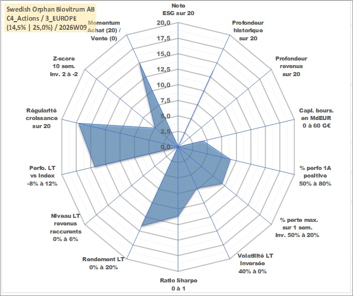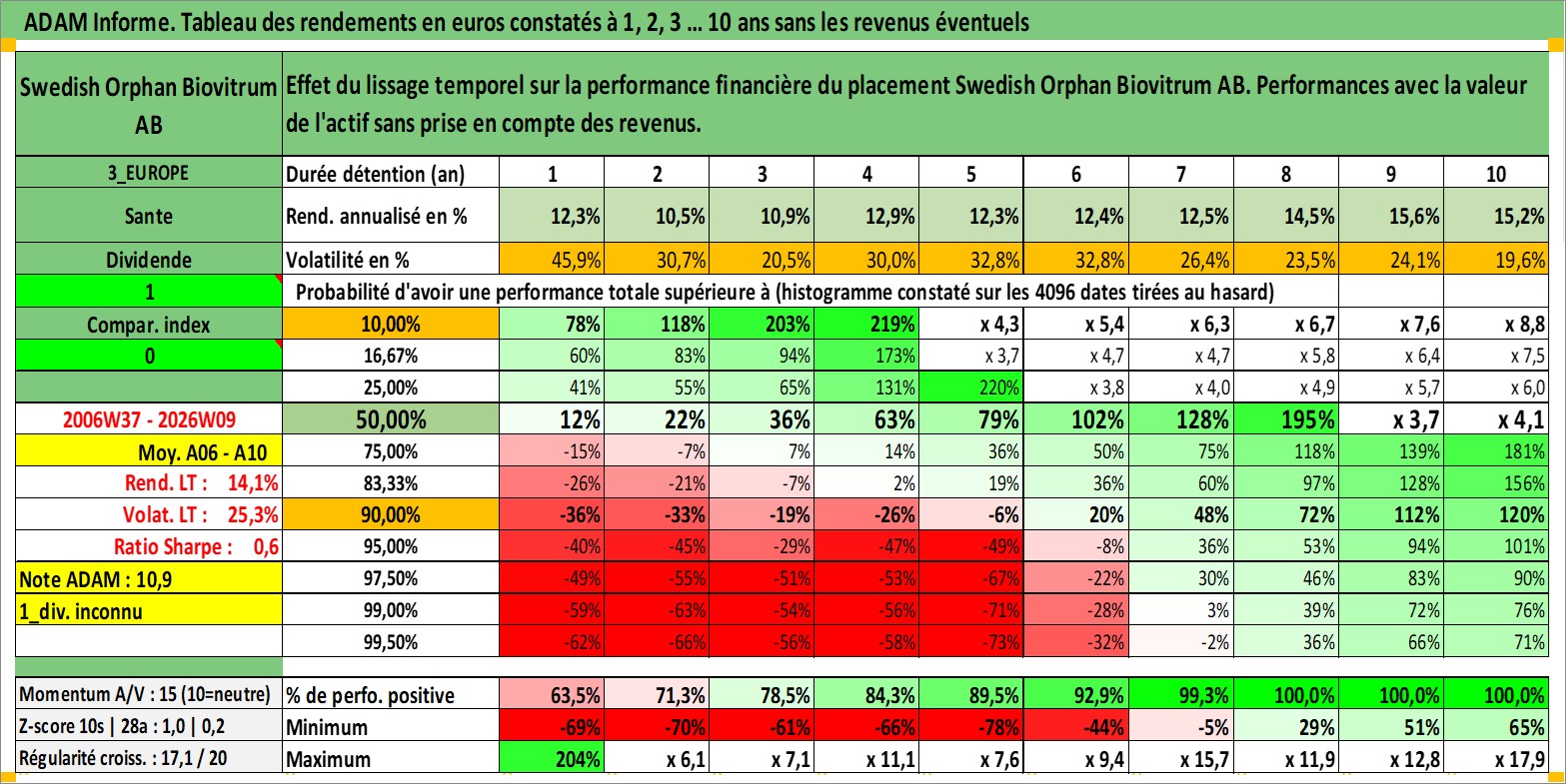 Site dédié aux investisseursPage dédiée sur site financeAnalyse des valorisations hebdomadaires de l'action Swedish Orphan Biovitrum AB. Cet actif est cote en SEK. Les valorisations sont en contrevaleur EURO et couvrent les semaines 2006W37 a 2026W09. Les revenus de cet actif financier ne sont pas connus car non existants ou non disponibles sur le site Yahoo Finance. La note ESG de cet actif n'est pas connue.