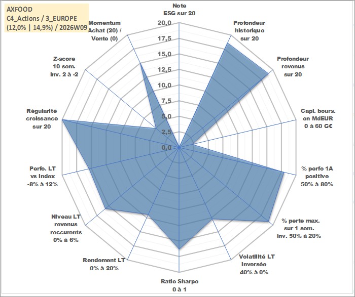 Site dédié aux investisseursPage dédiée sur site financeAnalyse des valorisations hebdomadaires de l'action AXFOOD. Cet actif est cote en SEK. Les valorisations sont en contrevaleur EURO et couvrent les semaines 2000W14 a 2026W09. Les revenus de cet actif financier sont pris en compte depuis la semaine 2000W19. La note ESG de cet actif n'est pas connue.