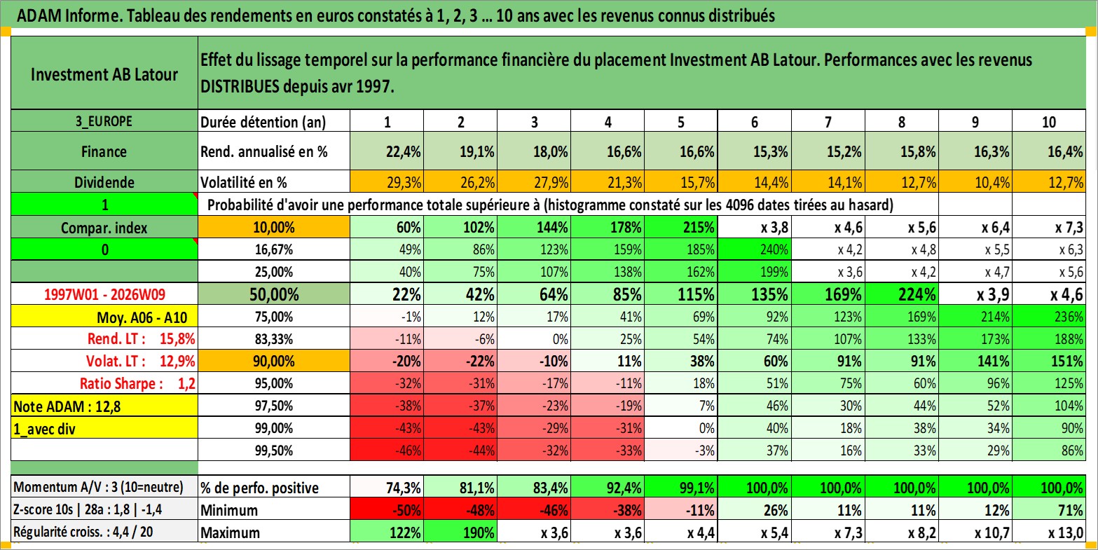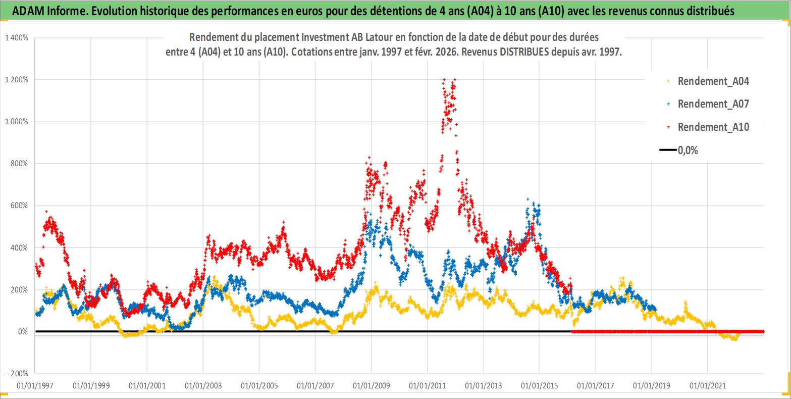 Site dédié aux investisseursPage dédiée sur site financeAnalyse des valorisations hebdomadaires de l'action Investment AB Latour. Cet actif est cote en SEK. Les valorisations sont en contrevaleur EURO et couvrent les semaines 1997W01 a 2026W09. Les revenus de cet actif financier sont pris en compte depuis la semaine 1997W17. La note ESG de cet actif n'est pas connue.