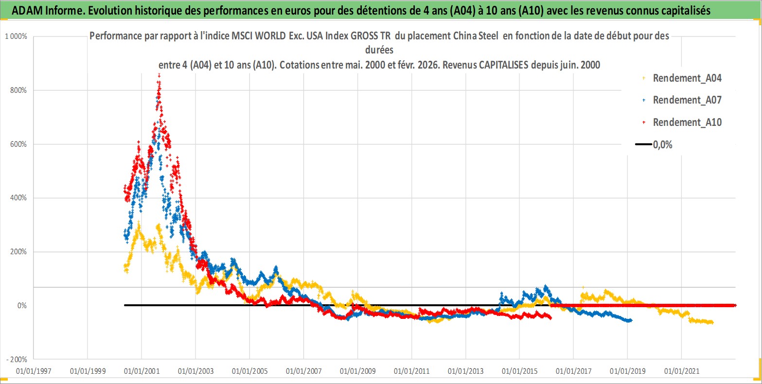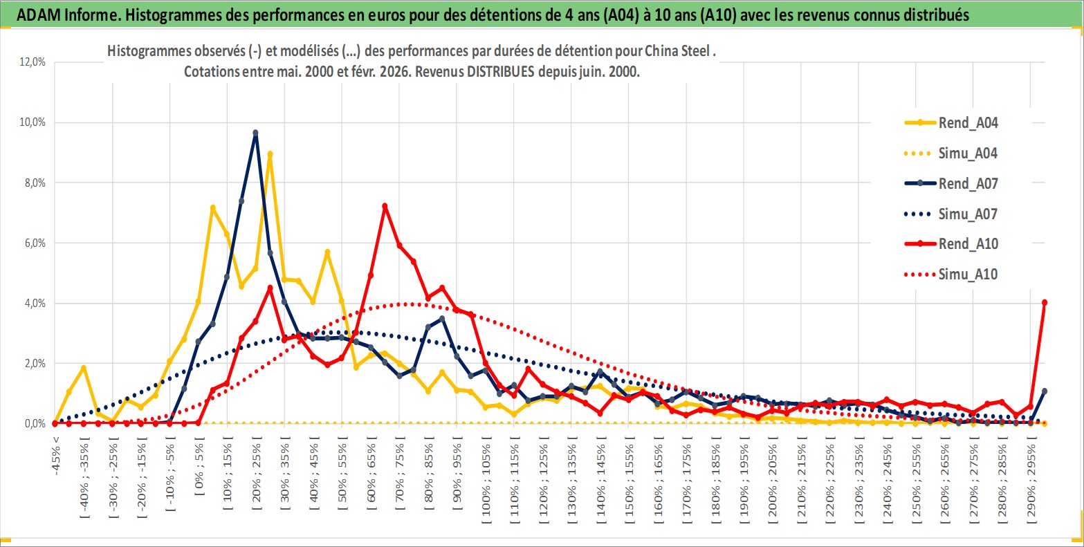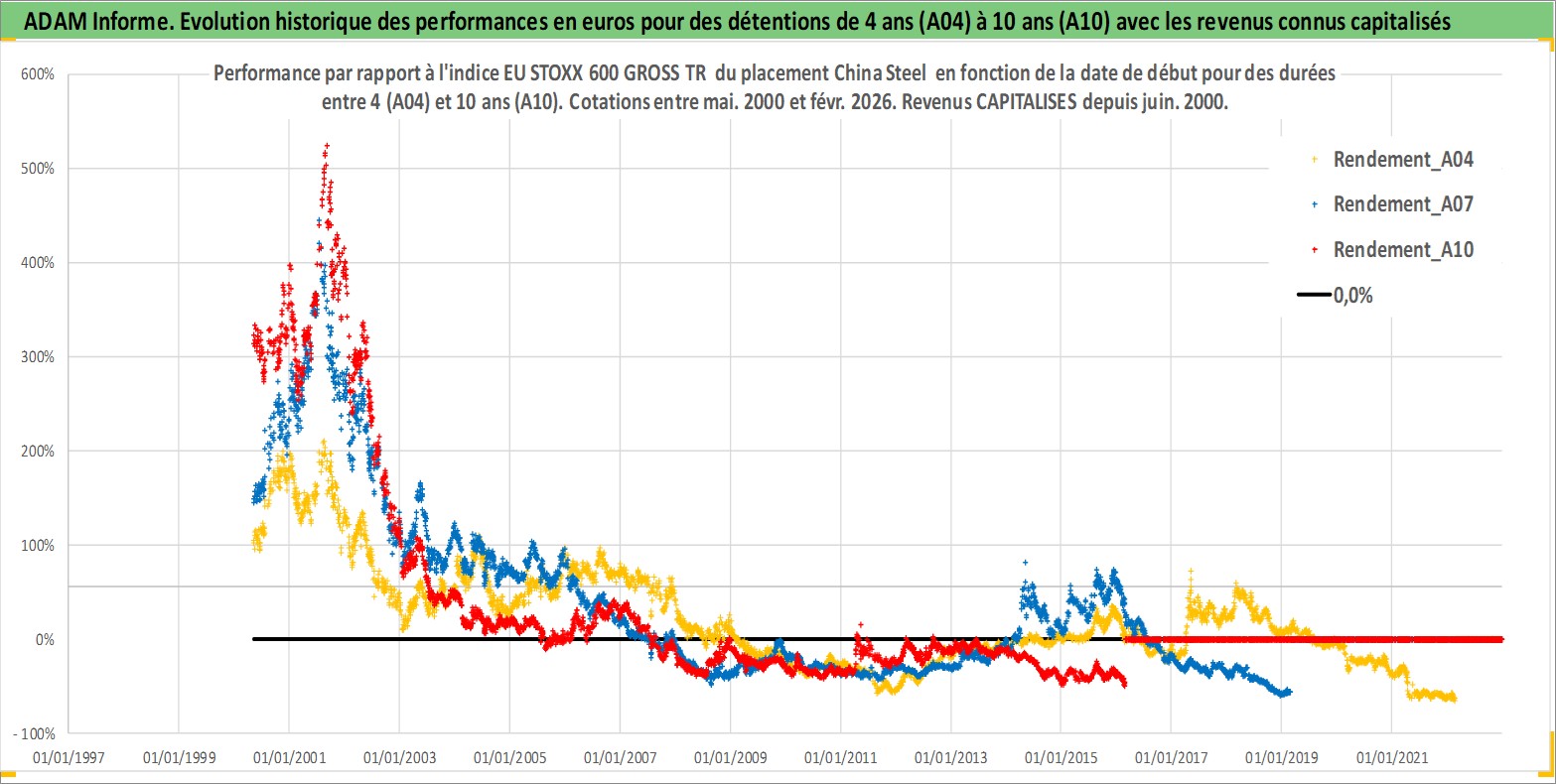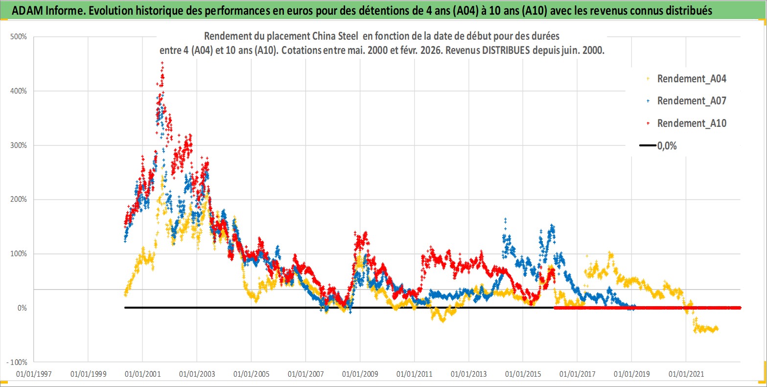 Site dédié aux investisseursPage dédiée sur site financeAnalyse des valorisations hebdomadaires de l'action China Steel . Cet actif est cote en TWD. Les valorisations sont en contrevaleur EURO et couvrent les semaines 2000W18 a 2026W09. Les revenus de cet actif financier sont pris en compte depuis la semaine 2000W25. La note globale ESG de cet actif est estimee a 5.0 (apres rebasage entre 0 et 20).