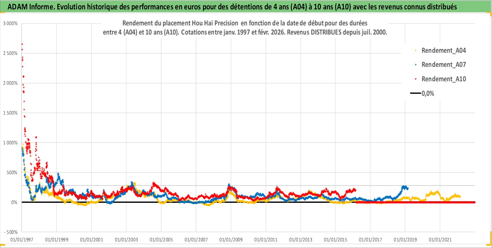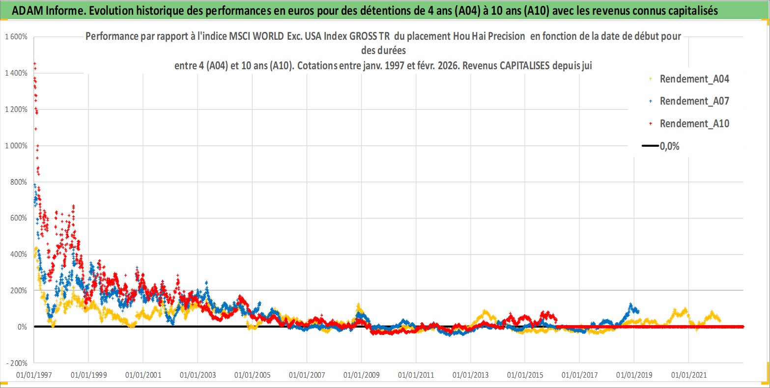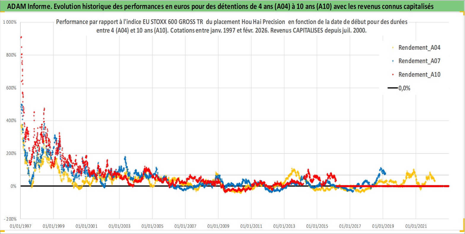 Site dédié aux investisseursPage dédiée sur site financeAnalyse des valorisations hebdomadaires de l'action Hou Hai Precision . Cet actif est cote en TWD. Les valorisations sont en contrevaleur EURO et couvrent les semaines 1997W01 a 2026W09. Les revenus de cet actif financier sont pris en compte depuis la semaine 2000W28. La note globale ESG de cet actif est estimee a 17.0 (apres rebasage entre 0 et 20).