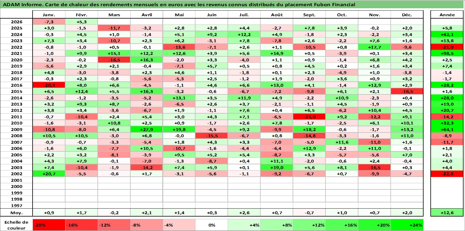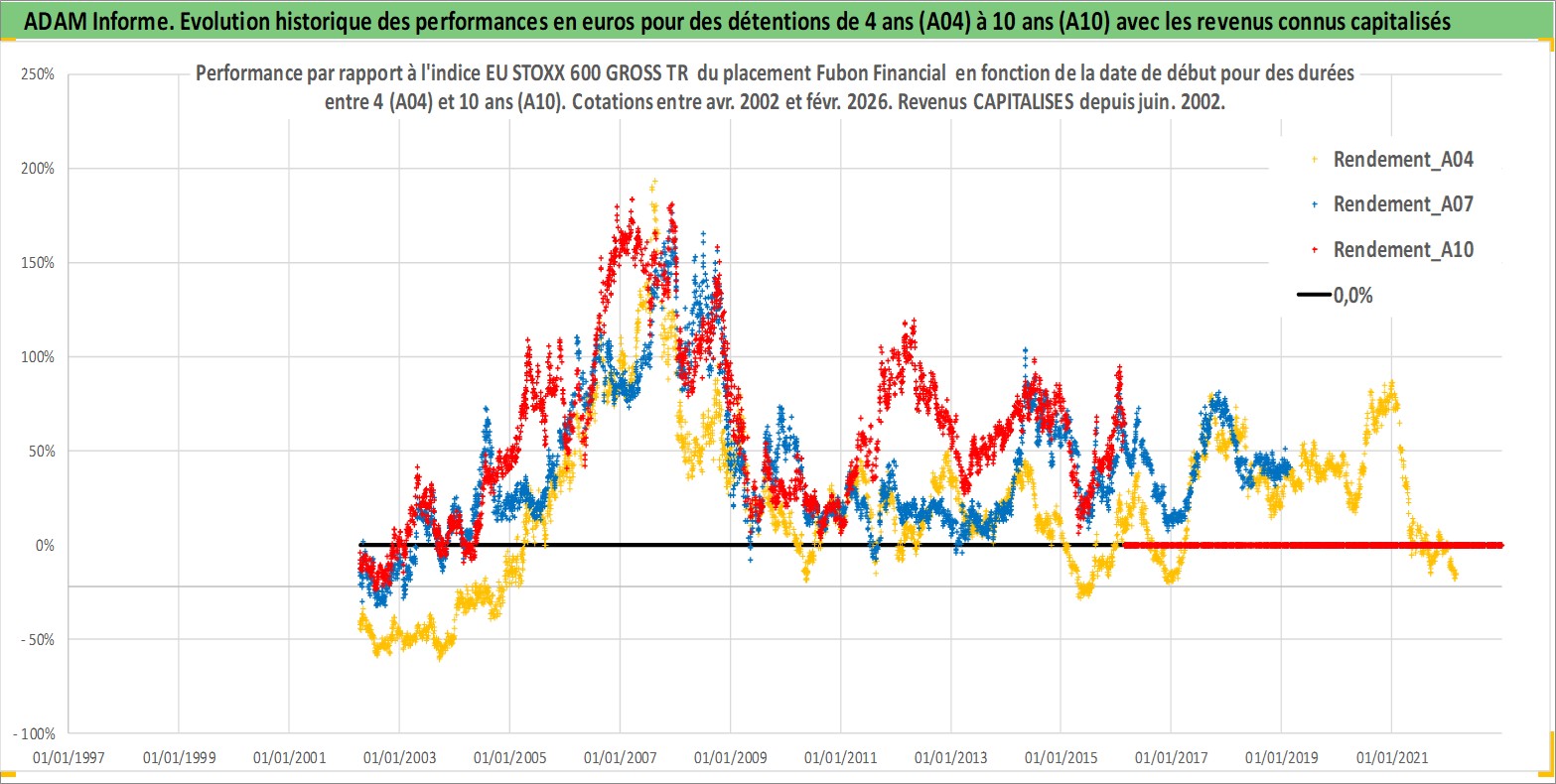 Site dédié aux investisseursPage dédiée sur site financeAnalyse des valorisations hebdomadaires de l'action Fubon Financial . Cet actif est cote en TWD. Les valorisations sont en contrevaleur EURO et couvrent les semaines 2002W14 a 2026W09. Les revenus de cet actif financier sont pris en compte depuis la semaine 2002W25. La note globale ESG de cet actif est estimee a 16.0 (apres rebasage entre 0 et 20).