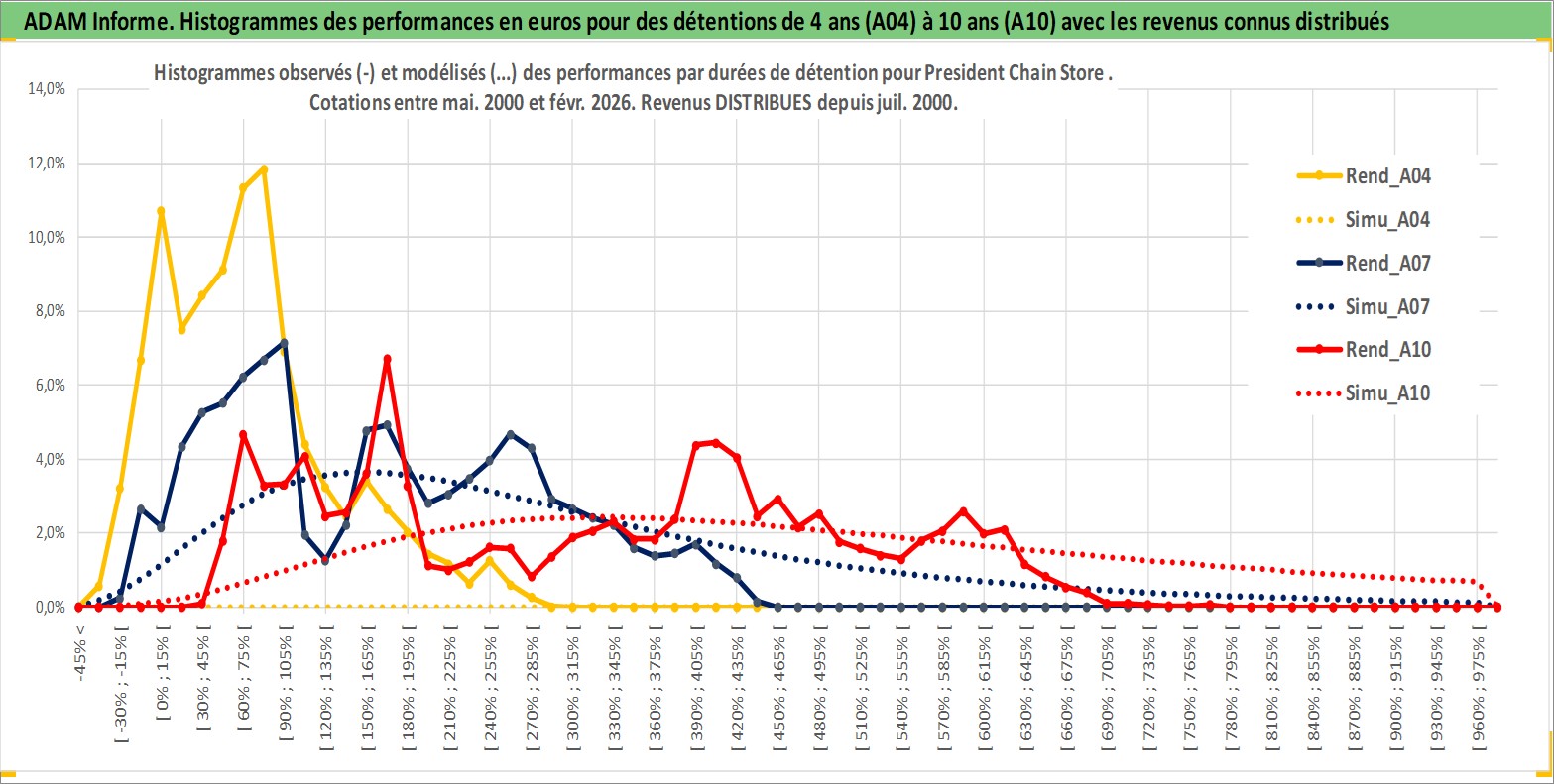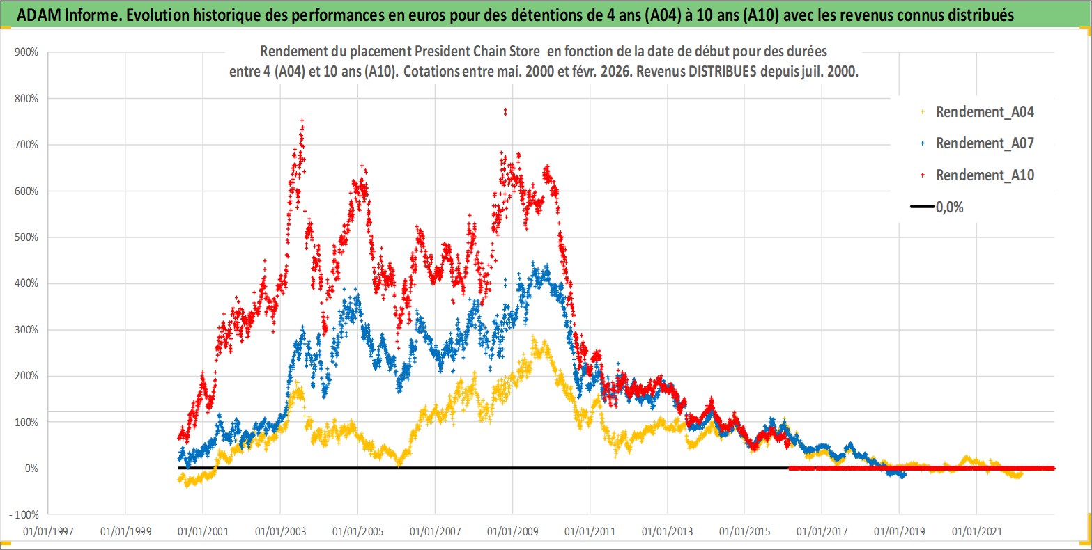 Site dédié aux investisseursPage dédiée sur site financeAnalyse des valorisations hebdomadaires de l'action President Chain Store . Cet actif est cote en TWD. Les valorisations sont en contrevaleur EURO et couvrent les semaines 2000W19 a 2026W09. Les revenus de cet actif financier sont pris en compte depuis la semaine 2000W30. La note globale ESG de cet actif est estimee a 8.0 (apres rebasage entre 0 et 20).
