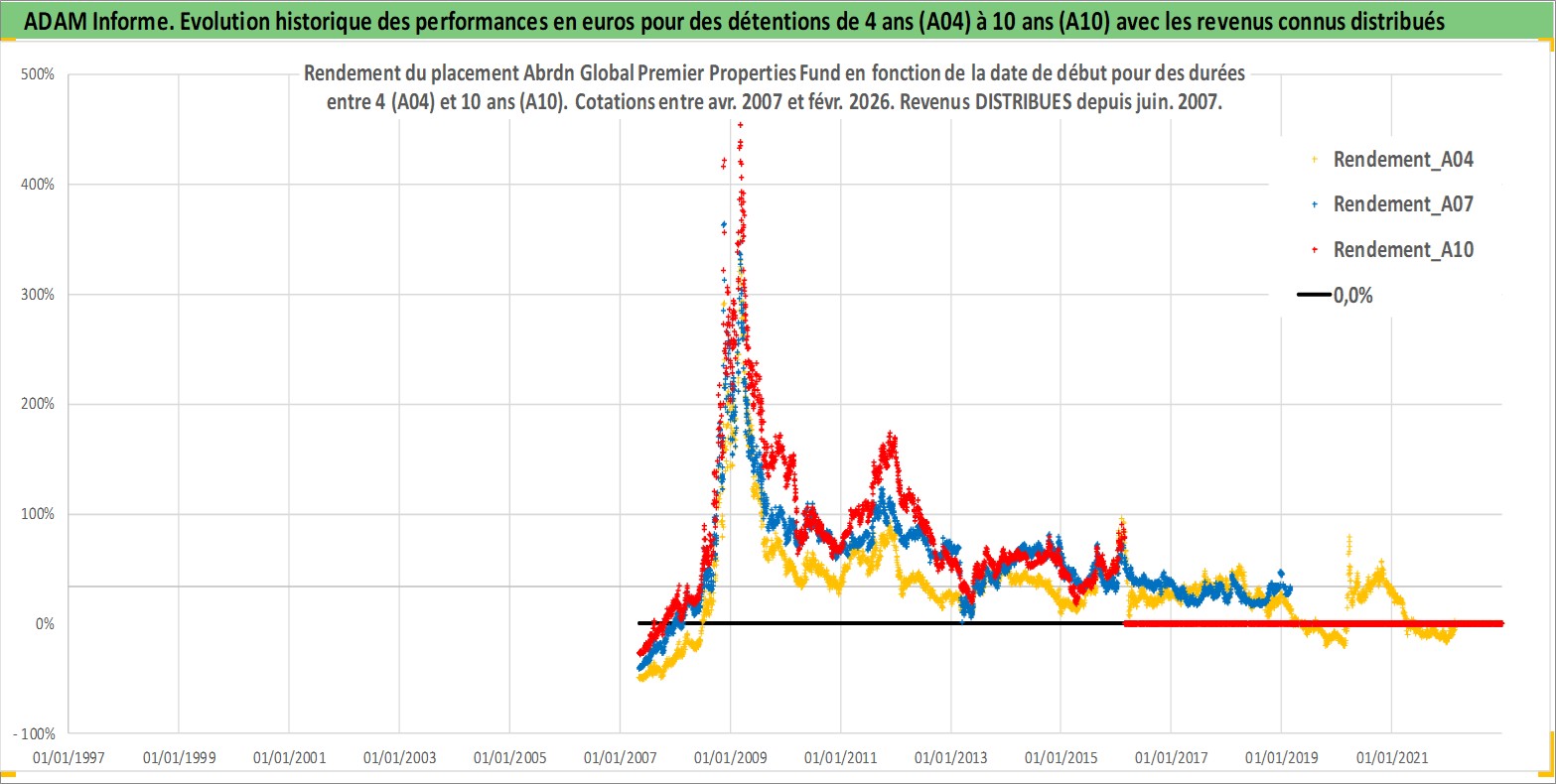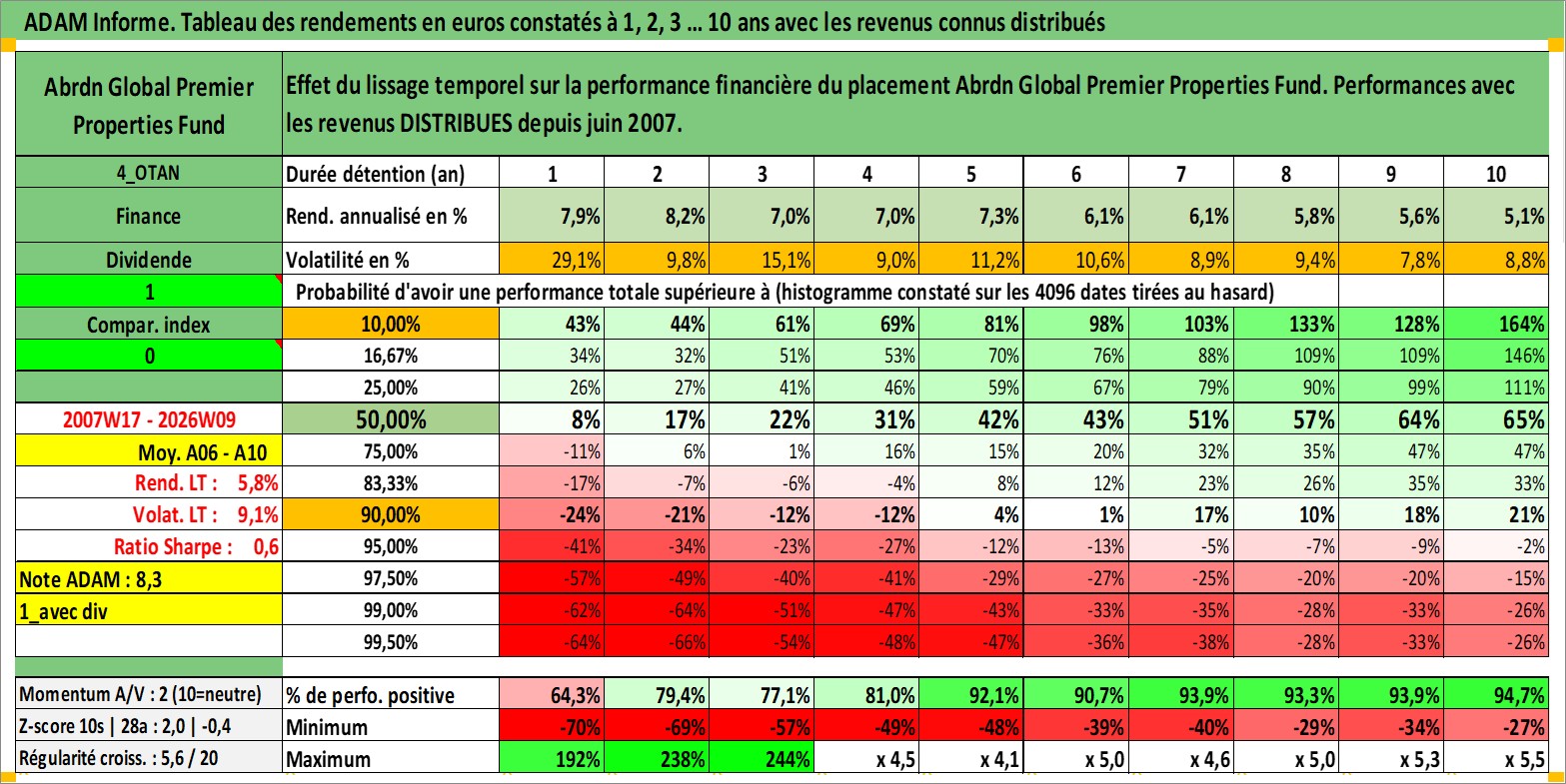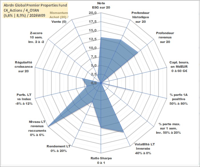 Site dédié aux investisseursPage dédiée sur site financeAnalyse des valorisations hebdomadaires de l'action Abrdn Global Premier Properties Fund. Cet actif est cote en USD. Les valorisations sont en contrevaleur EURO et couvrent les semaines 2007W17 a 2026W09. Les revenus de cet actif financier sont pris en compte depuis la semaine 2007W24. La note globale ESG de cet actif est estimee a 13.0 (apres rebasage entre 0 et 20).