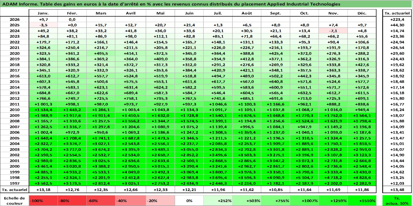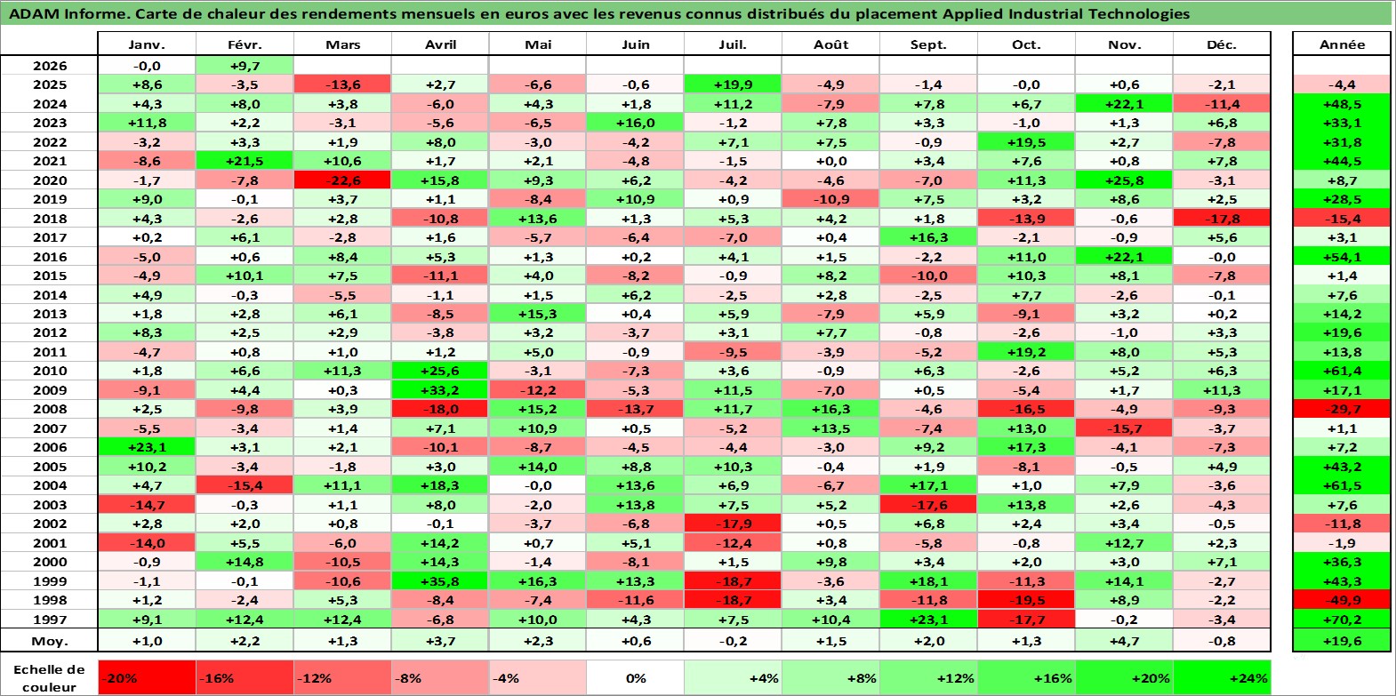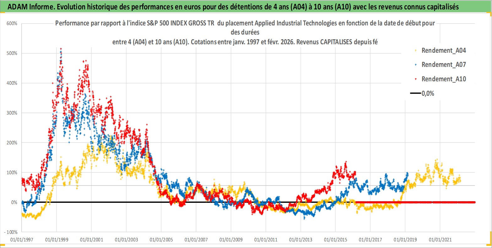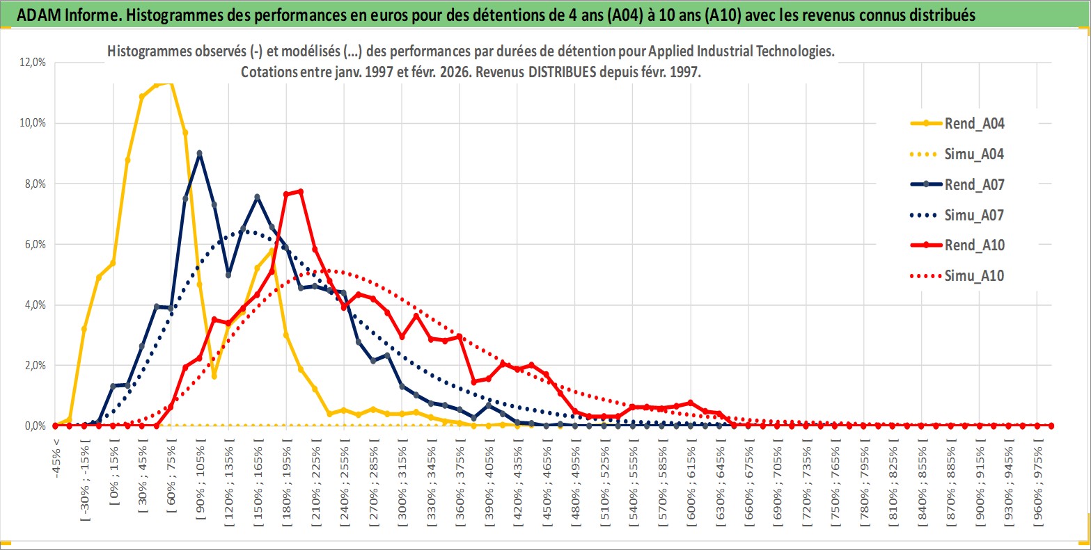Site dédié aux investisseursPage dédiée sur site financeAnalyse des valorisations hebdomadaires de l'action Applied Industrial Technologies. Cet actif est cote en USD. Les valorisations sont en contrevaleur EURO et couvrent les semaines 1997W01 a 2026W09. Les revenus de cet actif financier sont pris en compte depuis la semaine 1997W07. La note ESG de cet actif n'est pas connue.
