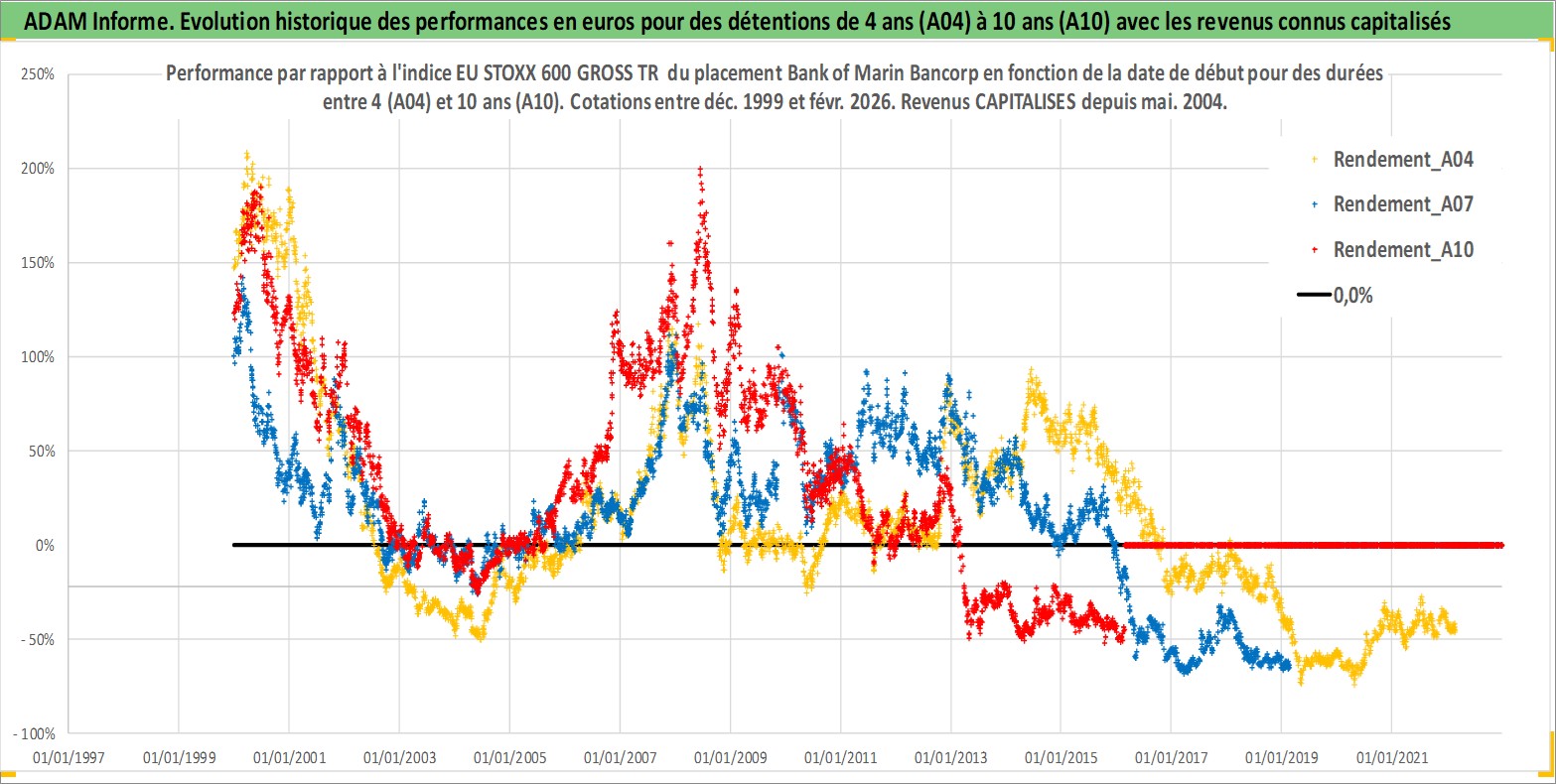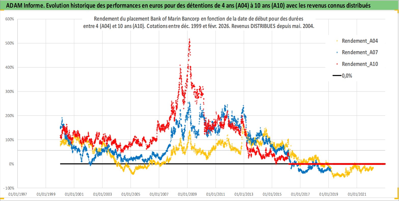 Site dédié aux investisseursPage dédiée sur site financeAnalyse des valorisations hebdomadaires de l'action Bank of Marin Bancorp. Cet actif est cote en USD. Les valorisations sont en contrevaleur EURO et couvrent les semaines 1999W51 a 2026W09. Les revenus de cet actif financier sont pris en compte depuis la semaine 2004W22. La note ESG de cet actif n'est pas connue.