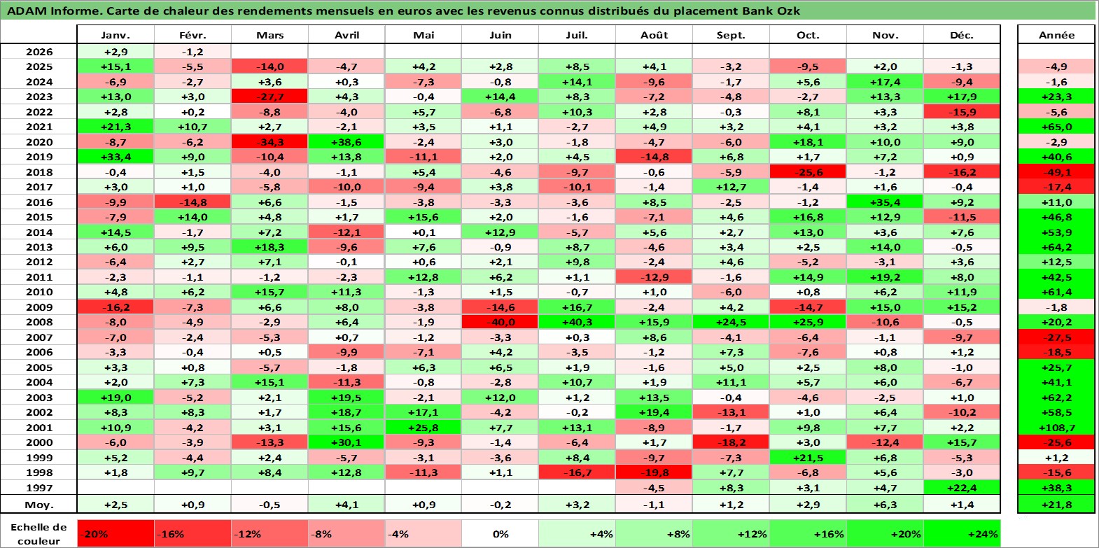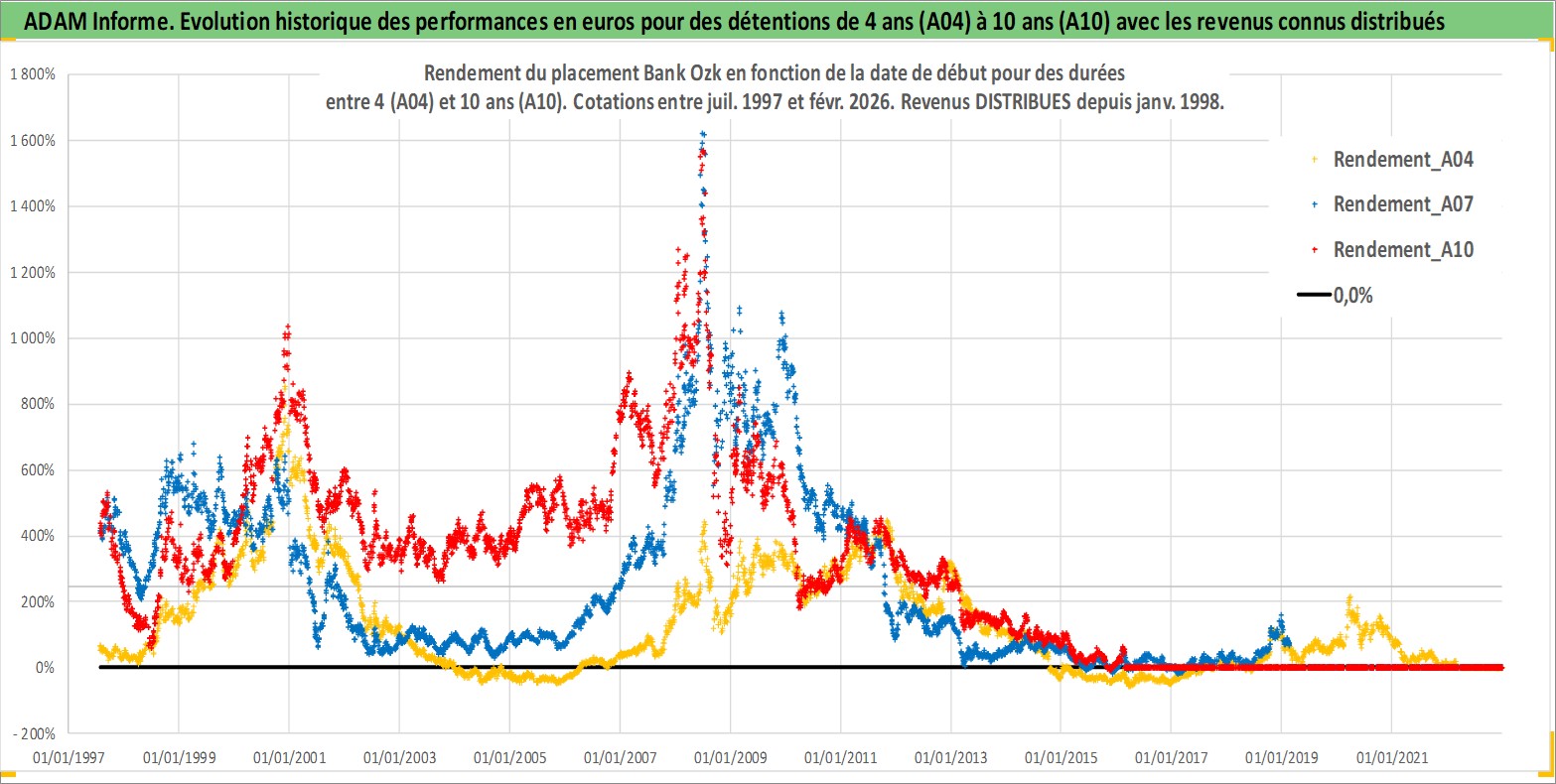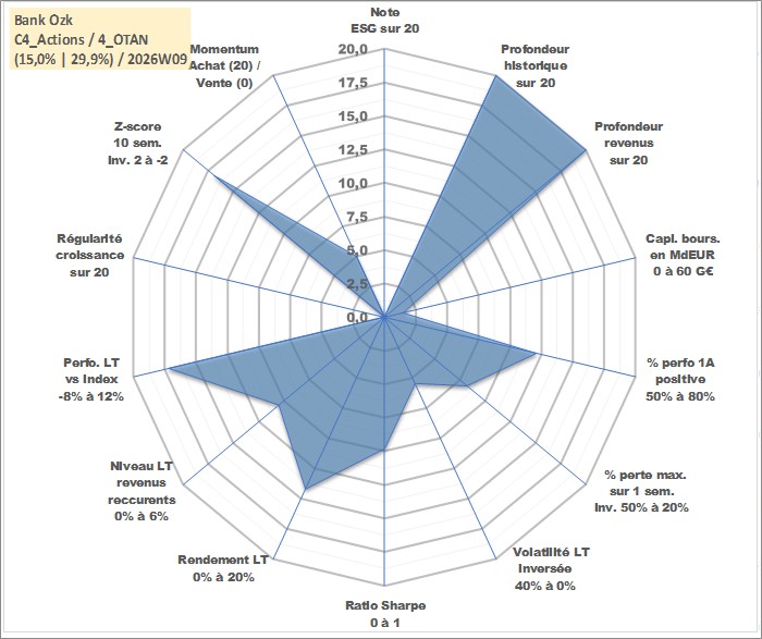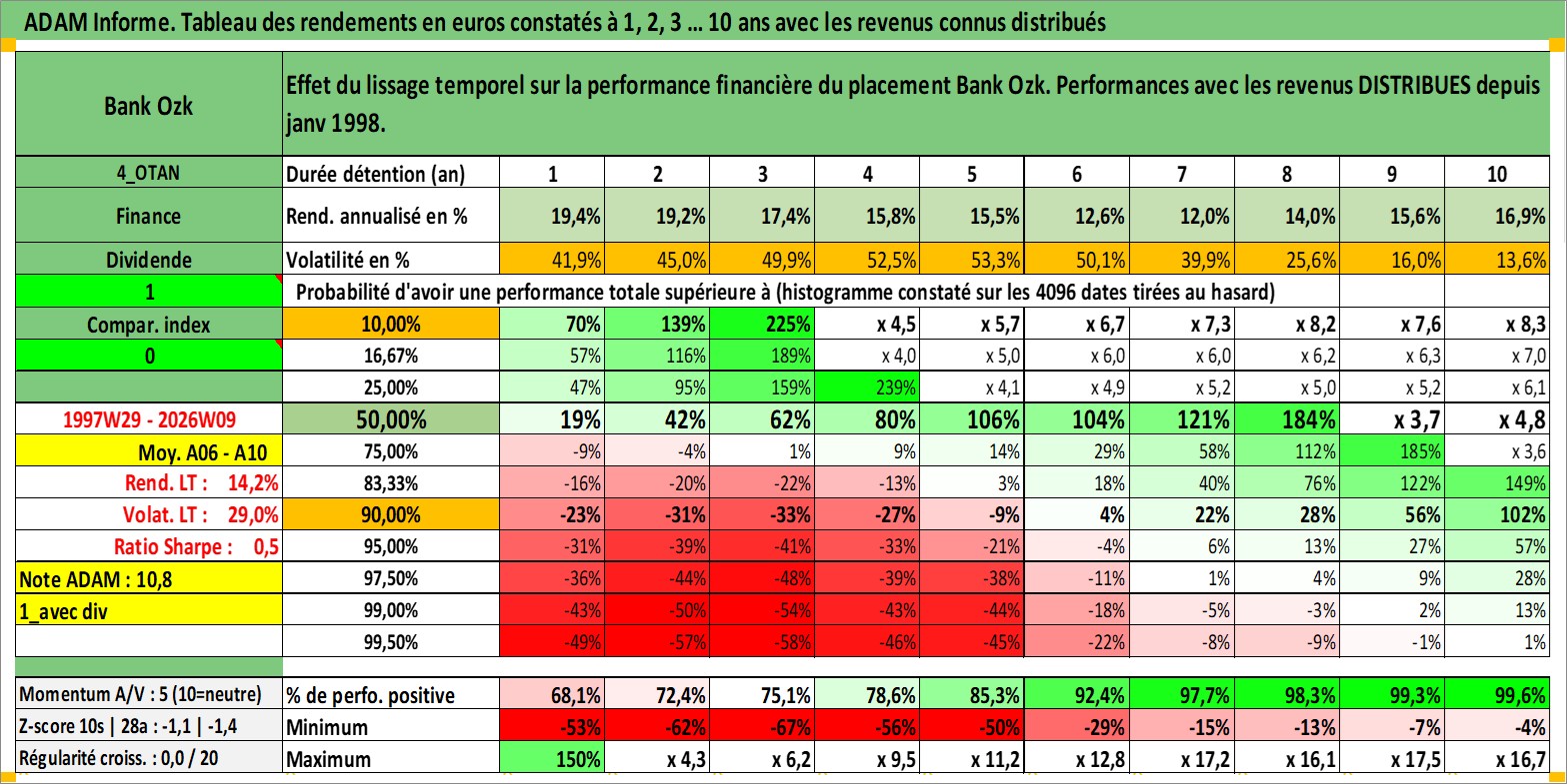 Site dédié aux investisseursPage dédiée sur site financeAnalyse des valorisations hebdomadaires de l'action Bank Ozk. Cet actif est cote en USD. Les valorisations sont en contrevaleur EURO et couvrent les semaines 1997W29 a 2026W09. Les revenus de cet actif financier sont pris en compte depuis la semaine 1998W02. La note ESG de cet actif n'est pas connue.