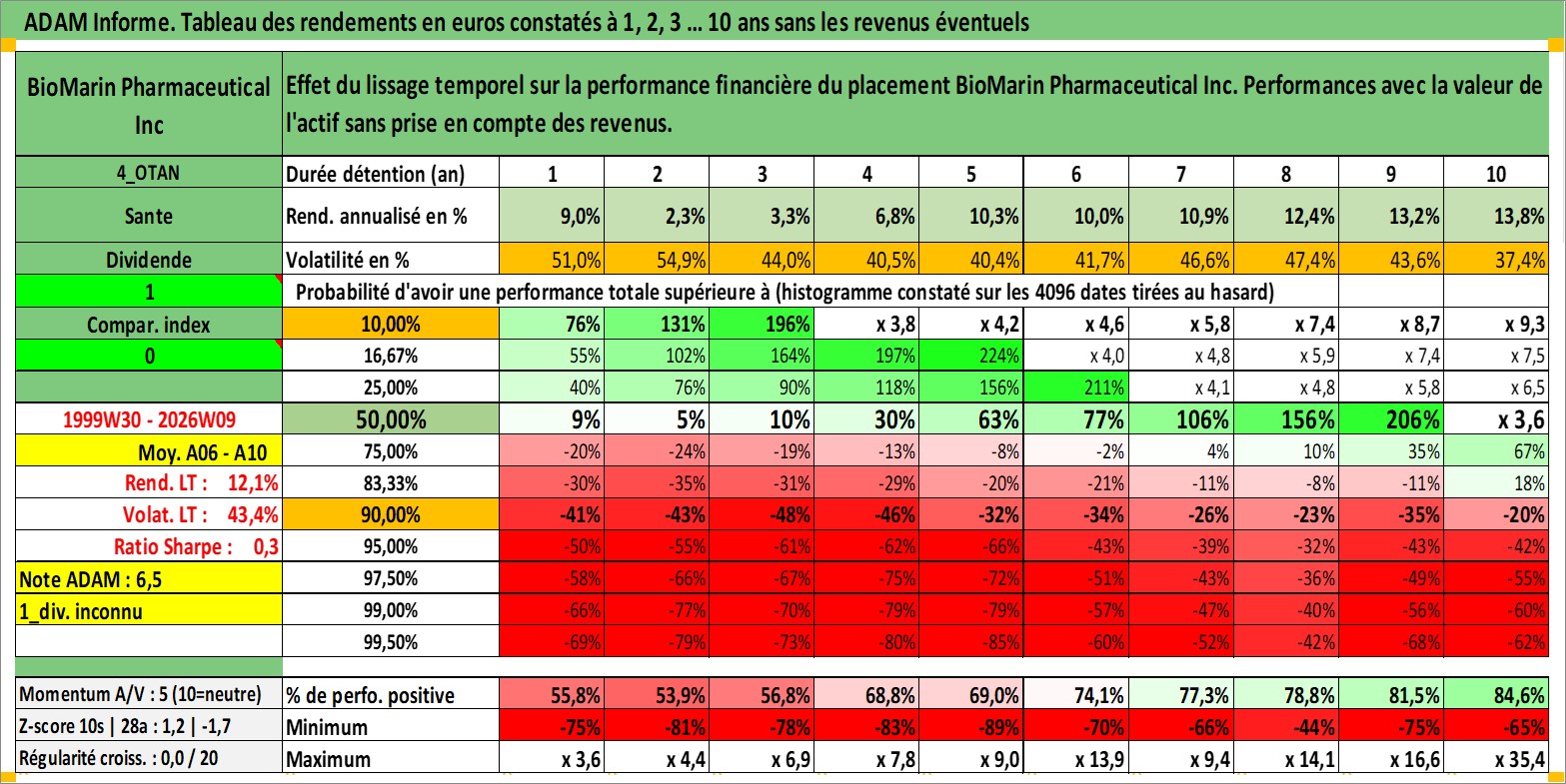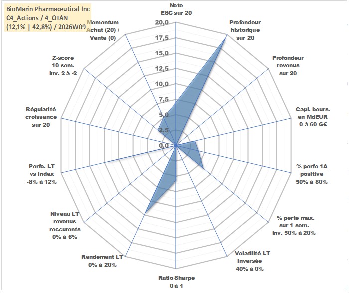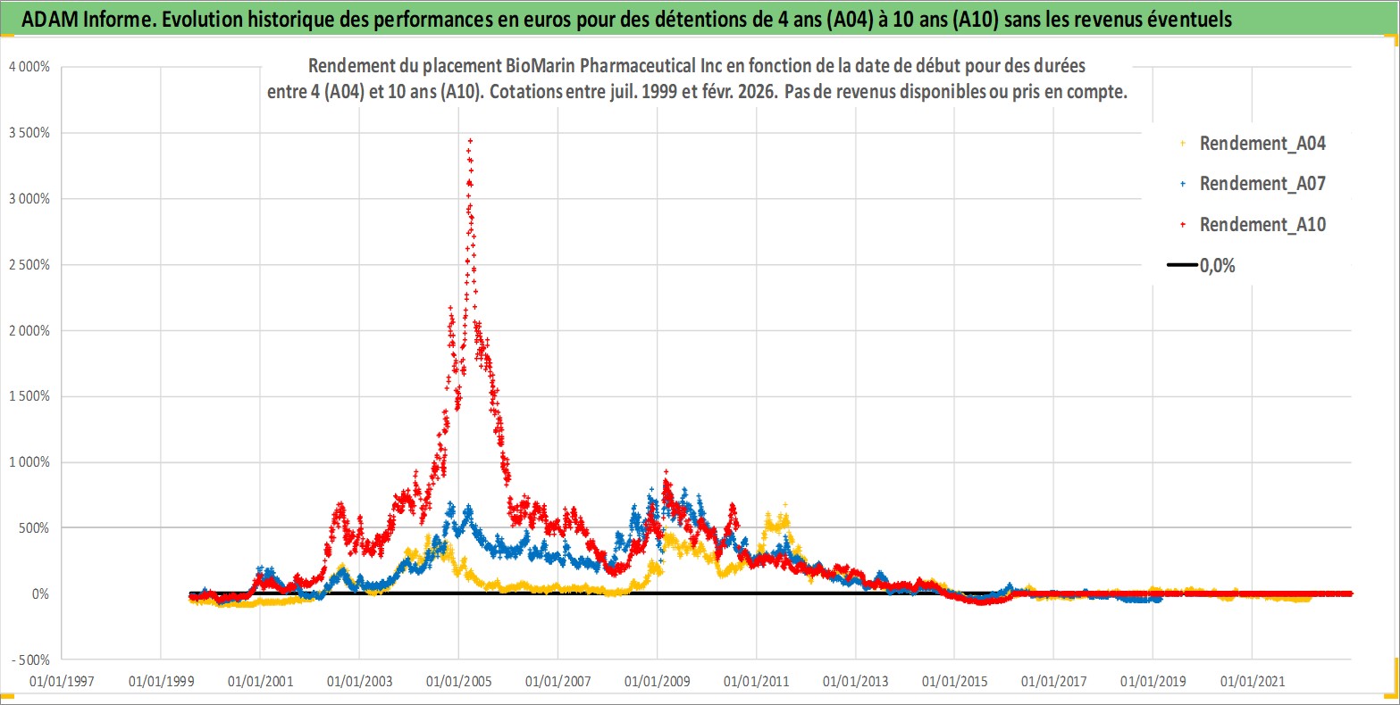 Site dédié aux investisseursPage dédiée sur site financeAnalyse des valorisations hebdomadaires de l'action BioMarin Pharmaceutical Inc. Cet actif est cote en USD. Les valorisations sont en contrevaleur EURO et couvrent les semaines 1999W30 a 2026W09. Les revenus de cet actif financier ne sont pas connus car non existants ou non disponibles sur le site Yahoo Finance. La note globale ESG de cet actif est estimee a 7.0 (apres rebasage entre 0 et 20).