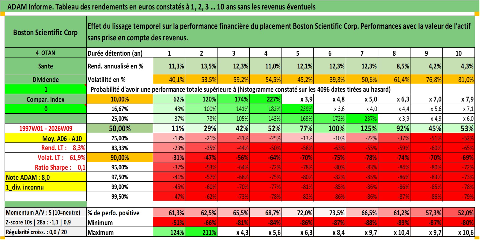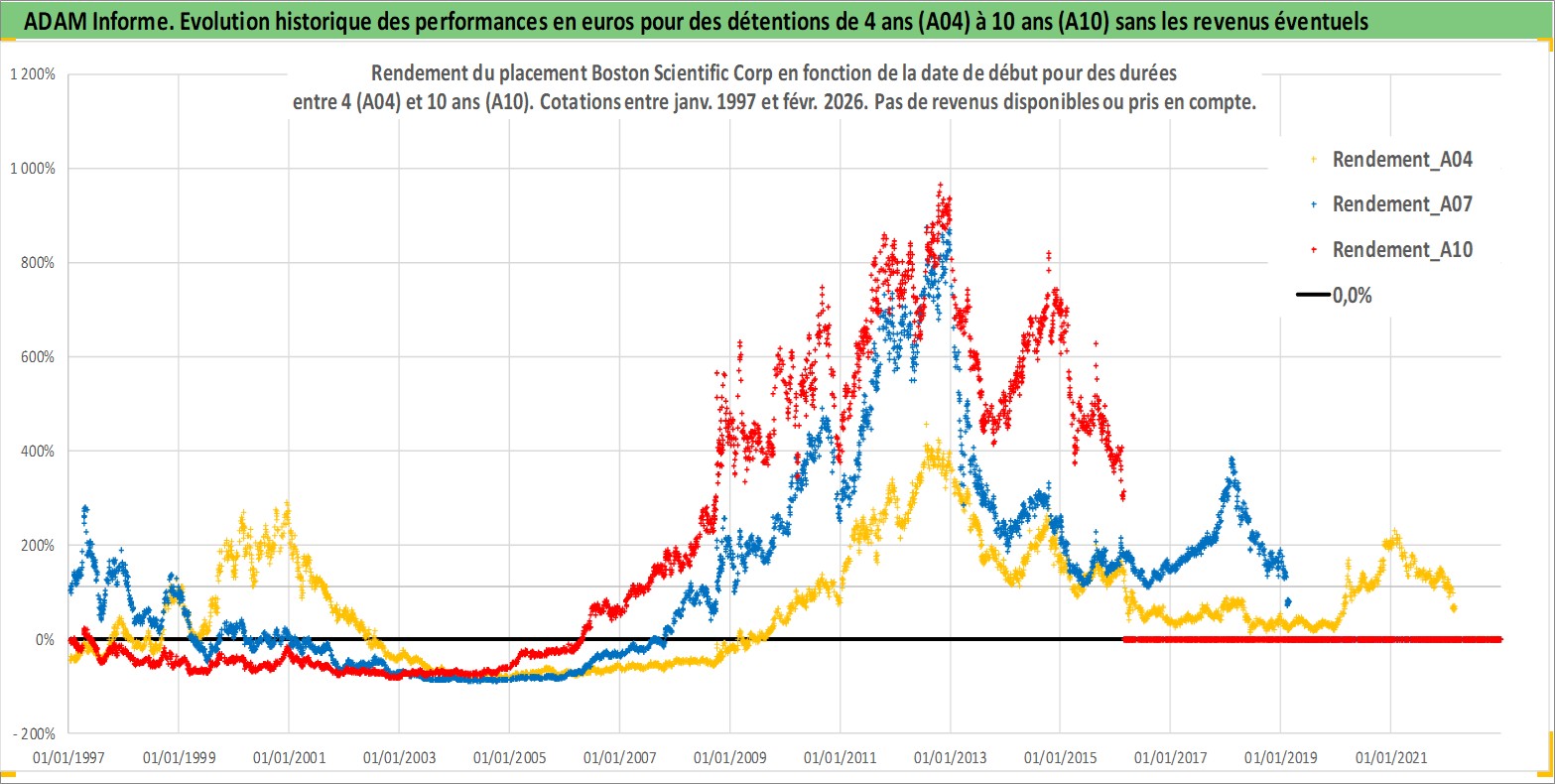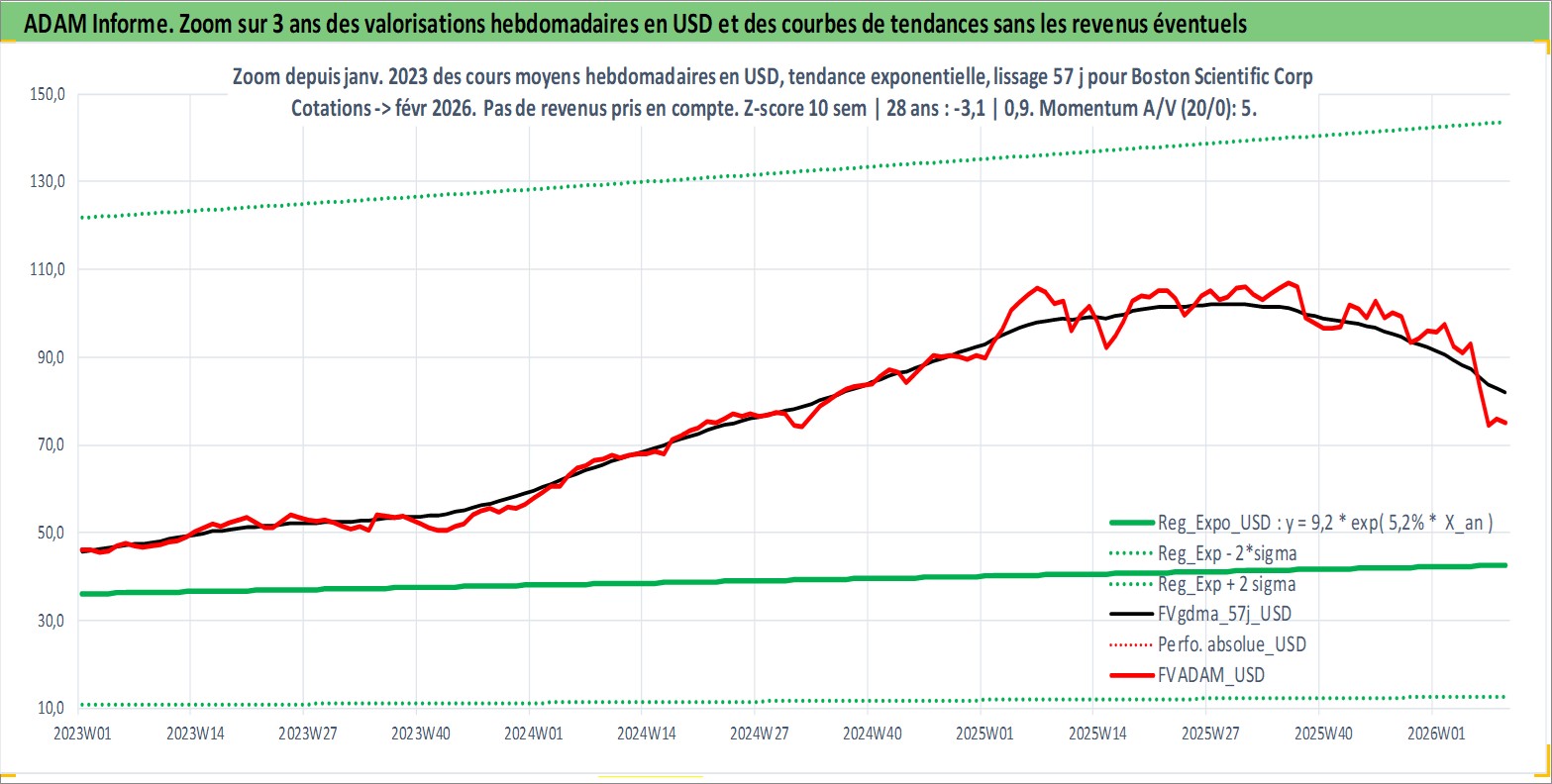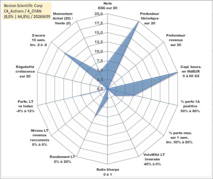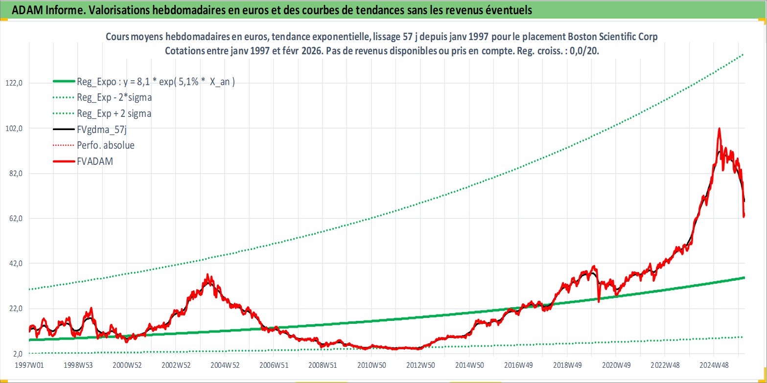 Site dédié aux investisseursPage dédiée sur site financeAnalyse des valorisations hebdomadaires de l'action Boston Scientific Corp. Cet actif est cote en USD. Les valorisations sont en contrevaleur EURO et couvrent les semaines 1997W01 a 2026W09. Les revenus de cet actif financier ne sont pas connus car non existants ou non disponibles sur le site Yahoo Finance. La note globale ESG de cet actif est estimee a 7.0 (apres rebasage entre 0 et 20).