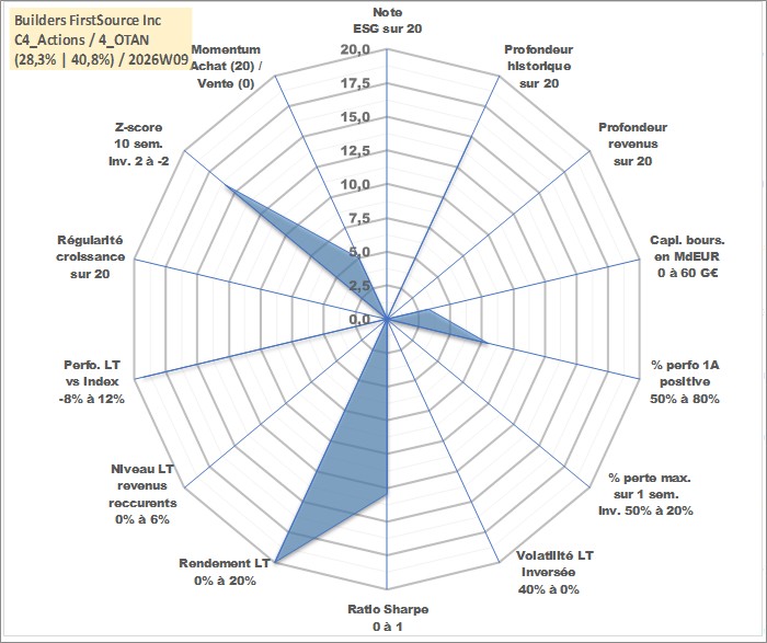 Site dédié aux investisseursPage dédiée sur site financeAnalyse des valorisations hebdomadaires de l'action Builders FirstSource Inc. Cet actif est cote en USD. Les valorisations sont en contrevaleur EURO et couvrent les semaines 2005W26 a 2026W09. Les revenus de cet actif financier ne sont pas connus car non existants ou non disponibles sur le site Yahoo Finance. La note ESG de cet actif n'est pas connue.
