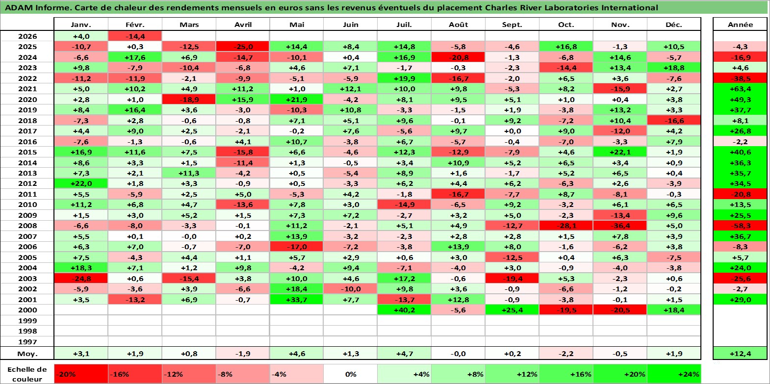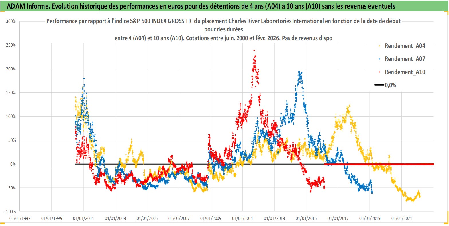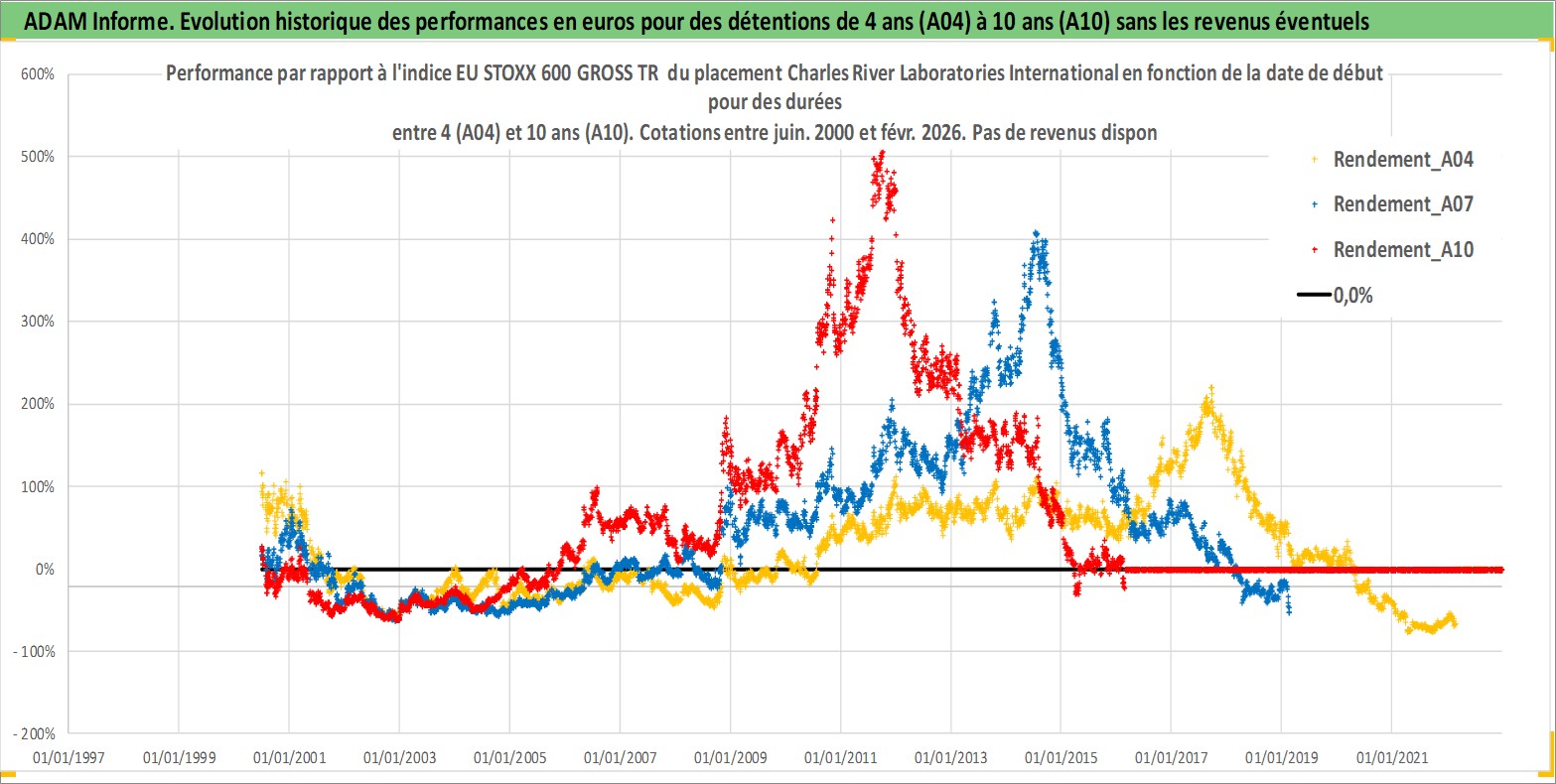 Site dédié aux investisseursPage dédiée sur site financeAnalyse des valorisations hebdomadaires de l'action Charles River Laboratories International. Cet actif est cote en USD. Les valorisations sont en contrevaleur EURO et couvrent les semaines 2000W25 a 2026W09. Les revenus de cet actif financier ne sont pas connus car non existants ou non disponibles sur le site Yahoo Finance. La note ESG de cet actif n'est pas connue.
