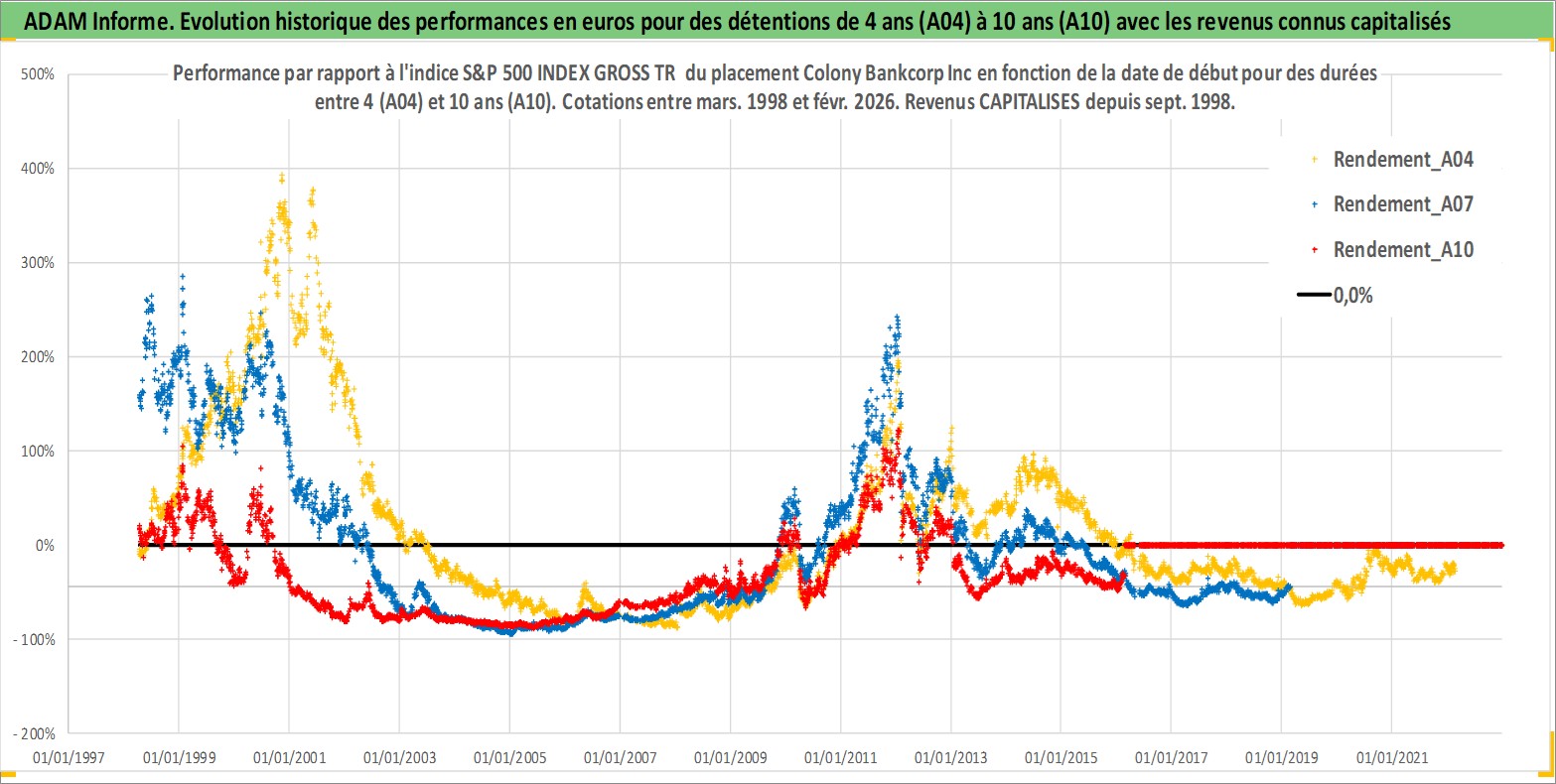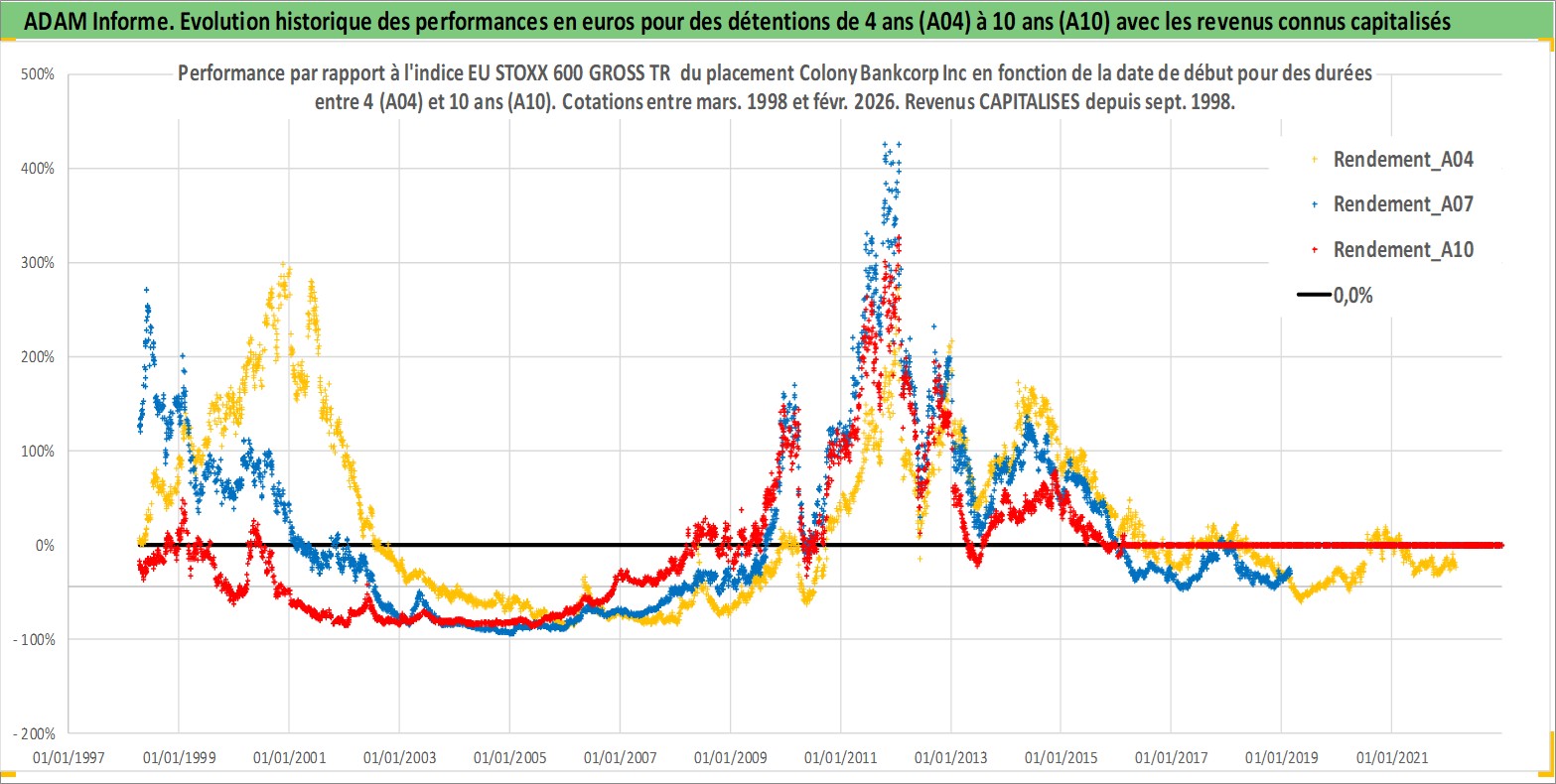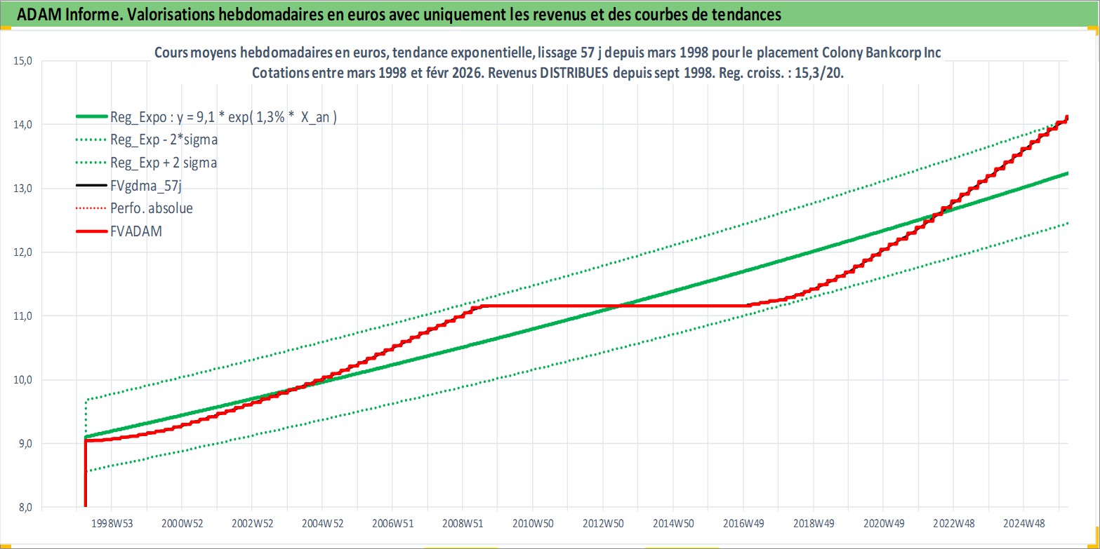Site dédié aux investisseursPage dédiée sur site financeAnalyse des valorisations hebdomadaires de l'action Colony Bankcorp Inc. Cet actif est cote en USD. Les valorisations sont en contrevaleur EURO et couvrent les semaines 1998W14 a 2026W09. Les revenus de cet actif financier sont pris en compte depuis la semaine 1998W40. La note ESG de cet actif n'est pas connue.