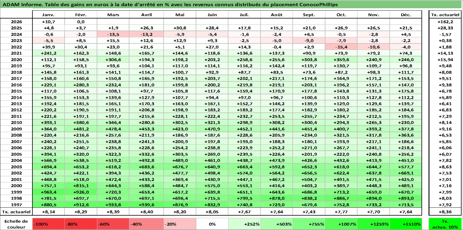 Dernière perfo 10 ans en %