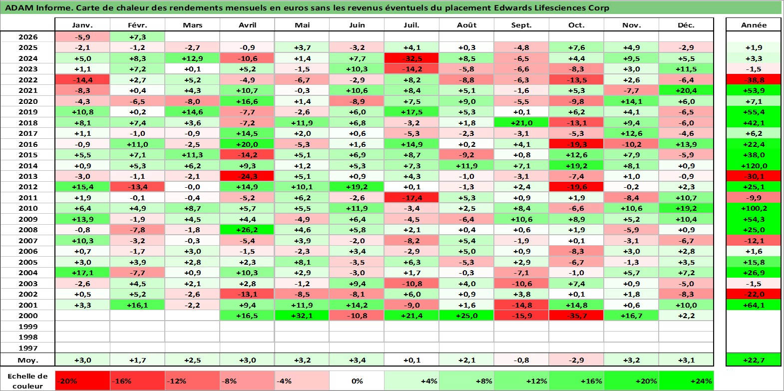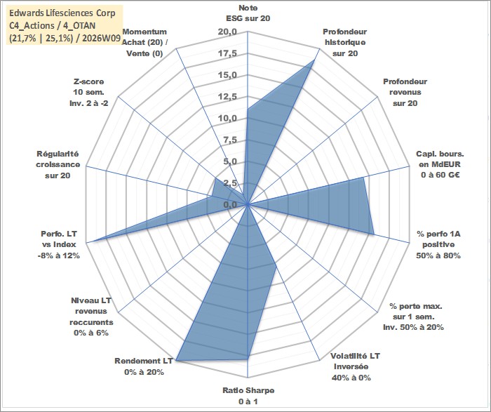 Site dédié aux investisseursPage dédiée sur site financeAnalyse des valorisations hebdomadaires de l'action Edwards Lifesciences Corp. Cet actif est cote en USD. Les valorisations sont en contrevaleur EURO et couvrent les semaines 2000W13 a 2026W09. Les revenus de cet actif financier ne sont pas connus car non existants ou non disponibles sur le site Yahoo Finance. La note globale ESG de cet actif est estimee a 11.0 (apres rebasage entre 0 et 20).