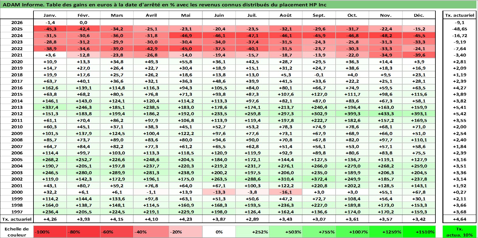 Dernière perfo 10 ans en %