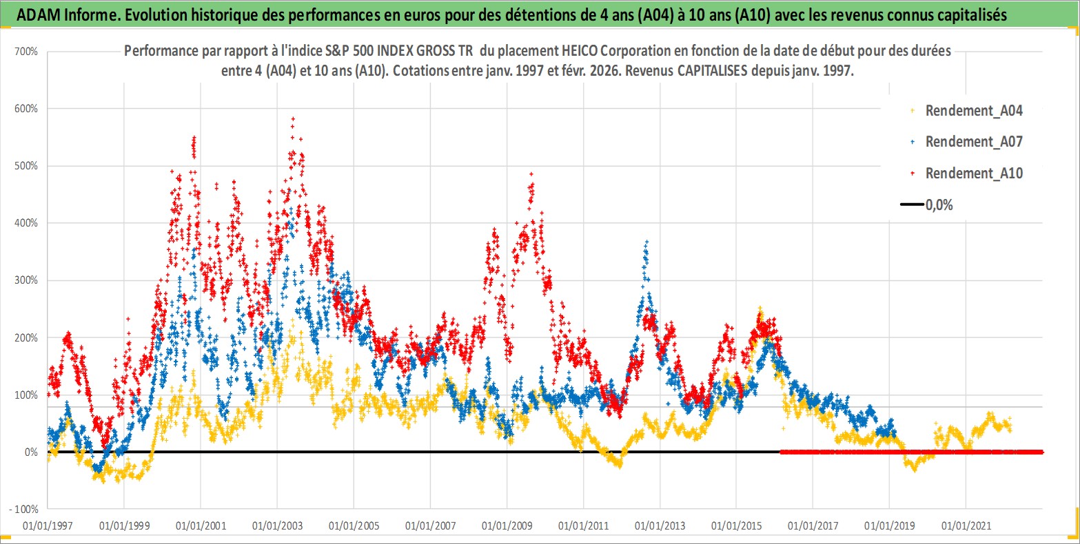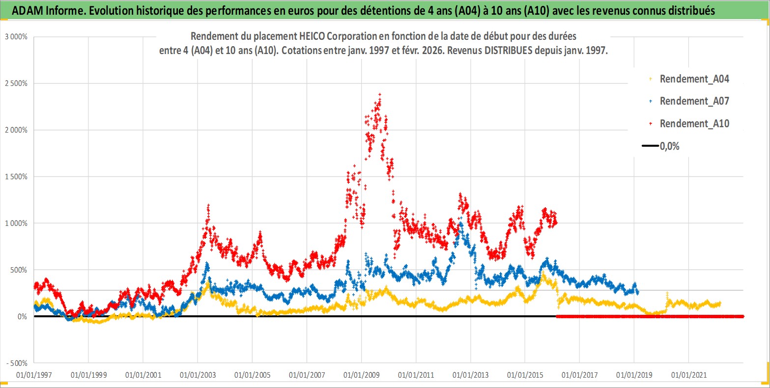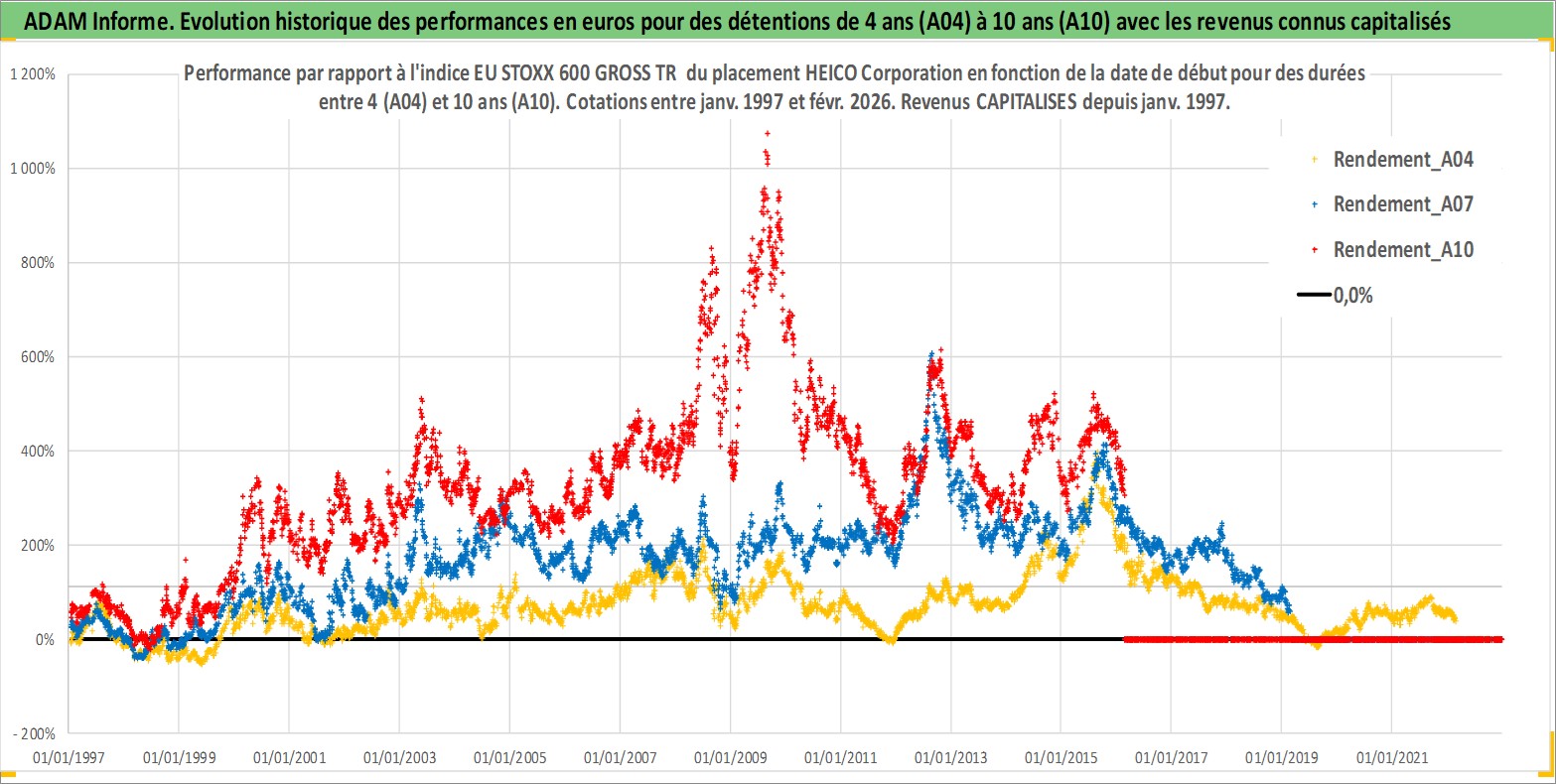 Site dédié aux investisseursPage dédiée sur site financeAnalyse des valorisations hebdomadaires de l'action HEICO Corporation. Cet actif est cote en USD. Les valorisations sont en contrevaleur EURO et couvrent les semaines 1997W01 a 2026W09. Les revenus de cet actif financier sont pris en compte depuis la semaine 1997W02. La note ESG de cet actif n'est pas connue.