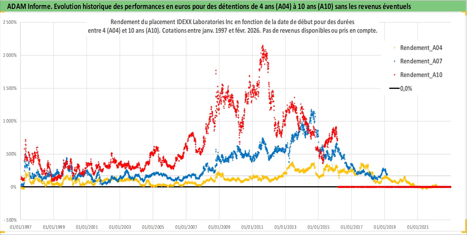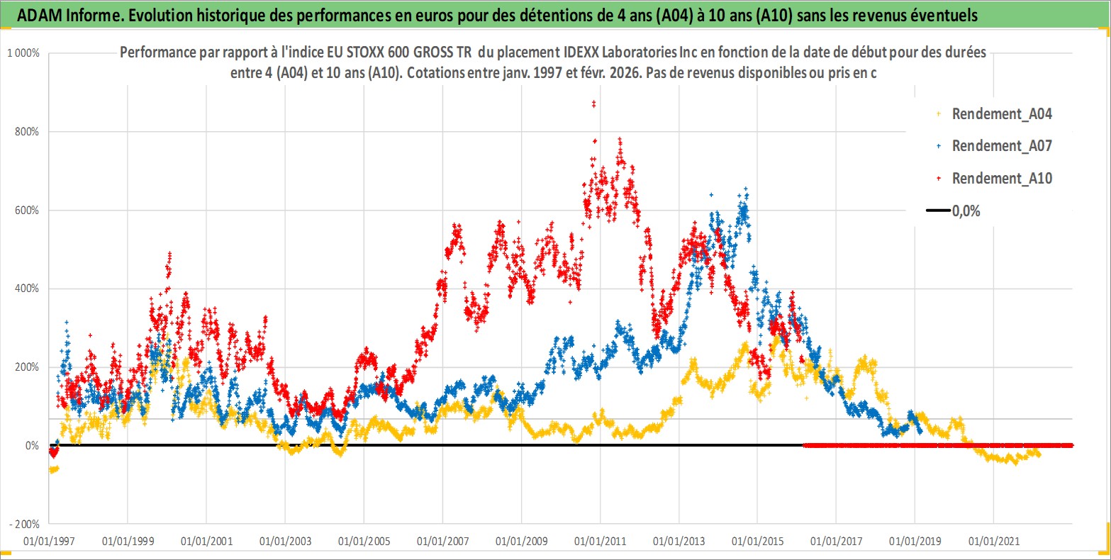 Site dédié aux investisseursPage dédiée sur site financeAnalyse des valorisations hebdomadaires de l'action IDEXX Laboratories Inc. Cet actif est cote en USD. Les valorisations sont en contrevaleur EURO et couvrent les semaines 1997W01 a 2026W09. Les revenus de cet actif financier ne sont pas connus car non existants ou non disponibles sur le site Yahoo Finance. La note globale ESG de cet actif est estimee a 11.0 (apres rebasage entre 0 et 20).