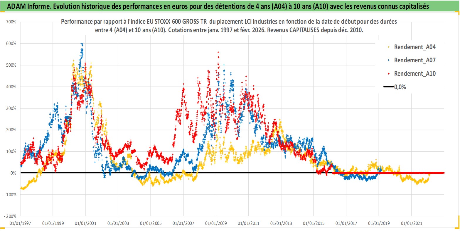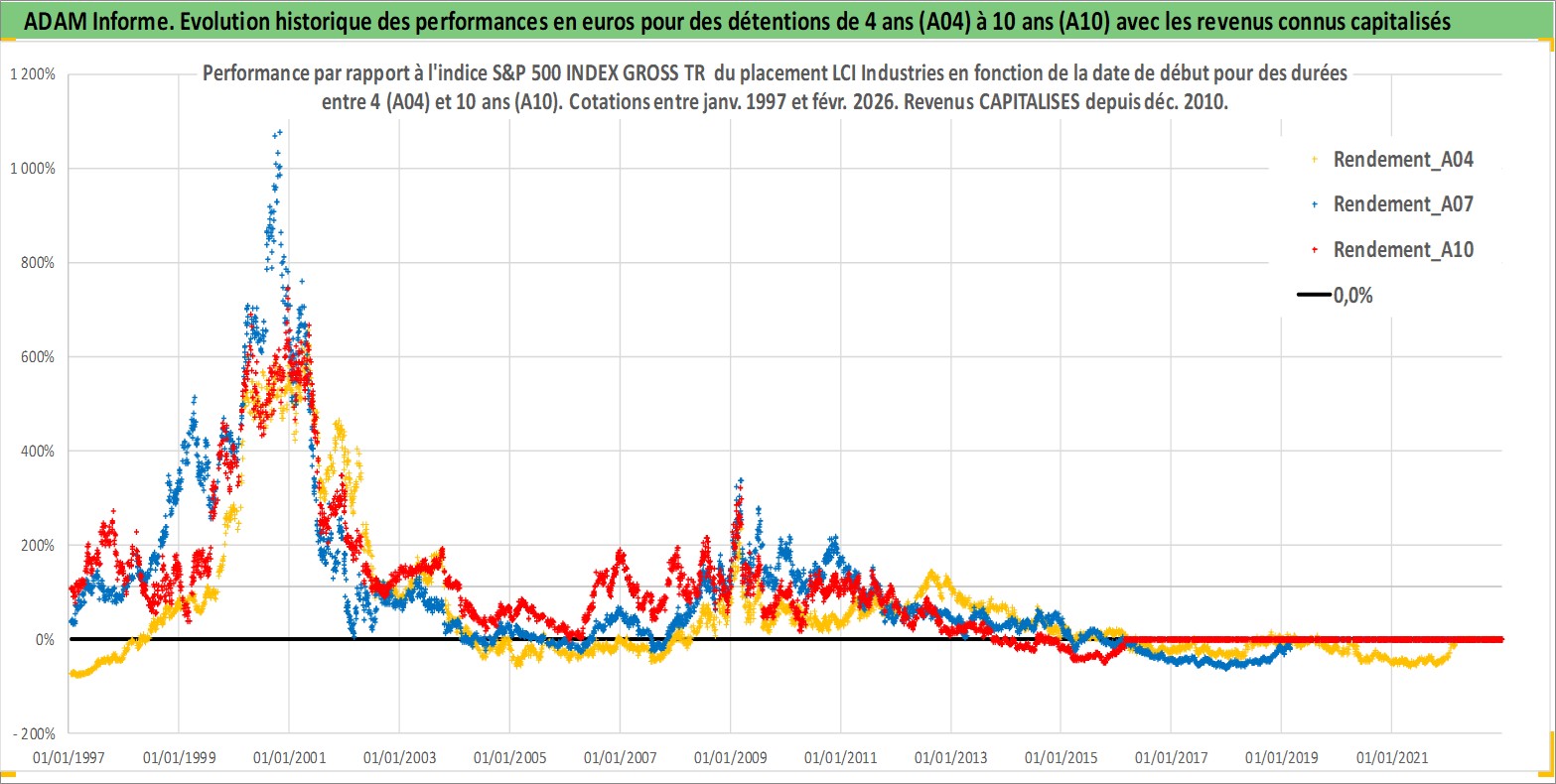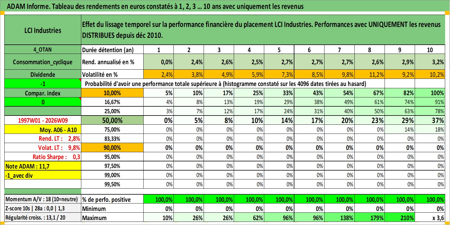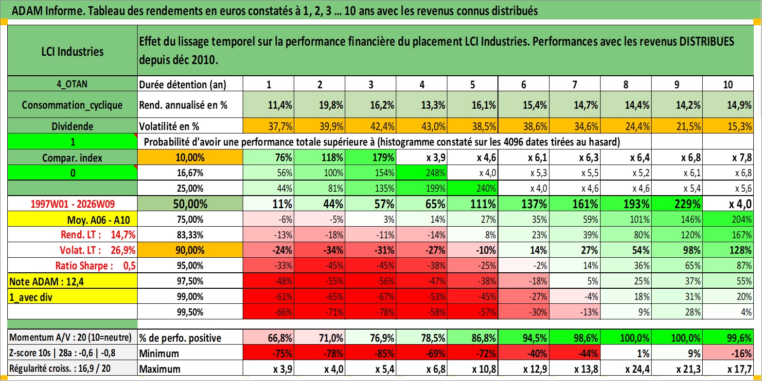 Site dédié aux investisseursPage dédiée sur site financeAnalyse des valorisations hebdomadaires de l'action LCI Industries. Cet actif est cote en USD. Les valorisations sont en contrevaleur EURO et couvrent les semaines 1997W01 a 2026W09. Les revenus de cet actif financier sont pris en compte depuis la semaine 2010W50. La note ESG de cet actif n'est pas connue.