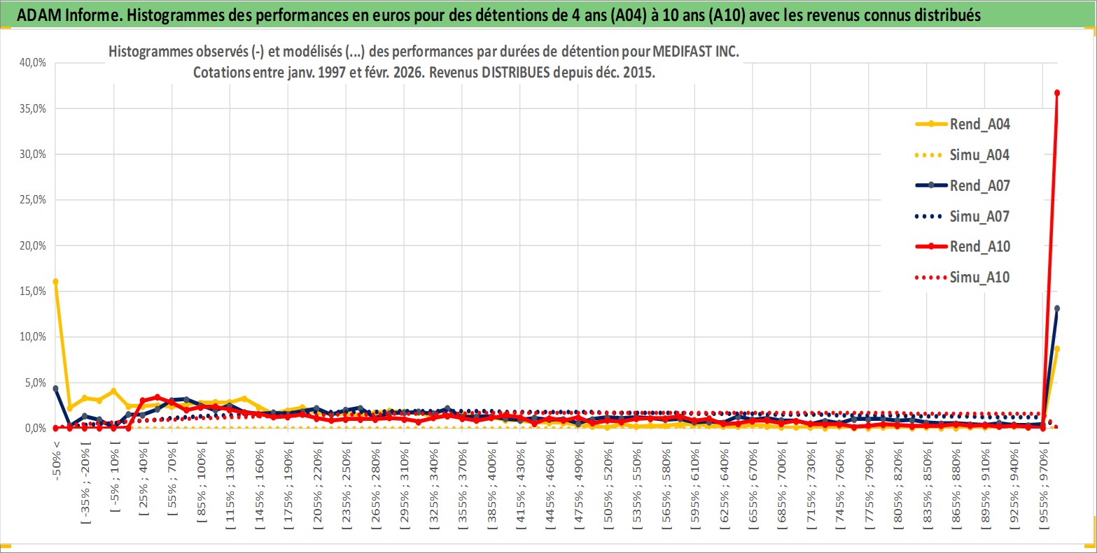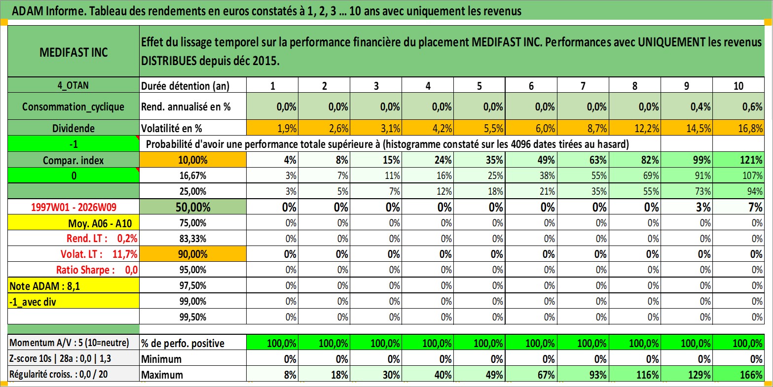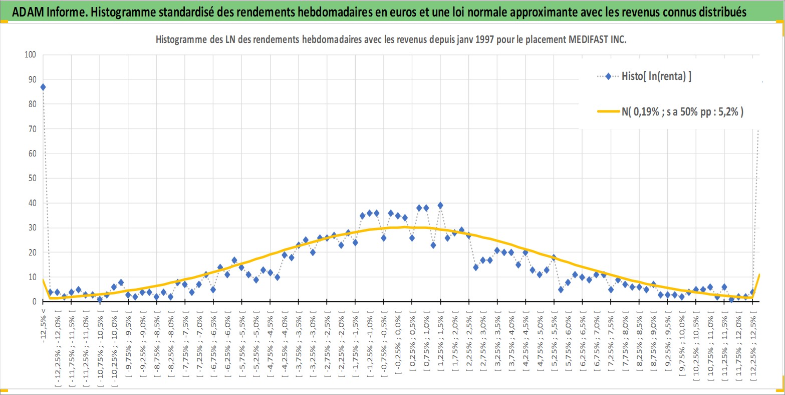 Site dédié aux investisseursPage dédiée sur site financeAnalyse des valorisations hebdomadaires de l'action MEDIFAST INC. Cet actif est cote en USD. Les valorisations sont en contrevaleur EURO et couvrent les semaines 1997W01 a 2026W09. Les revenus de cet actif financier sont pris en compte depuis la semaine 2015W52. La note ESG de cet actif n'est pas connue.