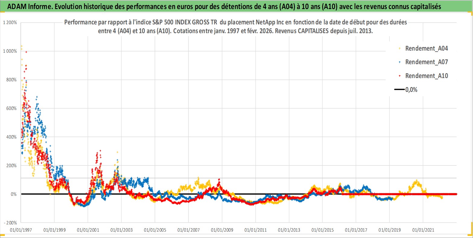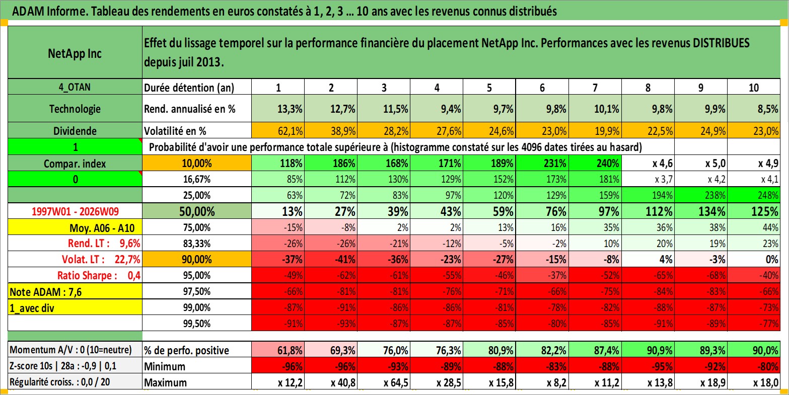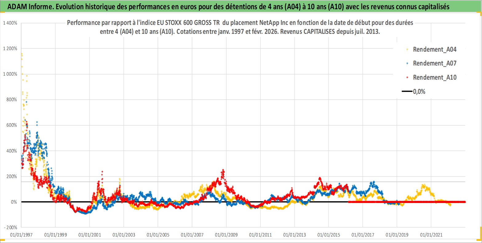 Site dédié aux investisseursPage dédiée sur site financeAnalyse des valorisations hebdomadaires de l'action NetApp Inc. Cet actif est cote en USD. Les valorisations sont en contrevaleur EURO et couvrent les semaines 1997W01 a 2026W09. Les revenus de cet actif financier sont pris en compte depuis la semaine 2013W28. La note globale ESG de cet actif est estimee a 13.0 (apres rebasage entre 0 et 20).