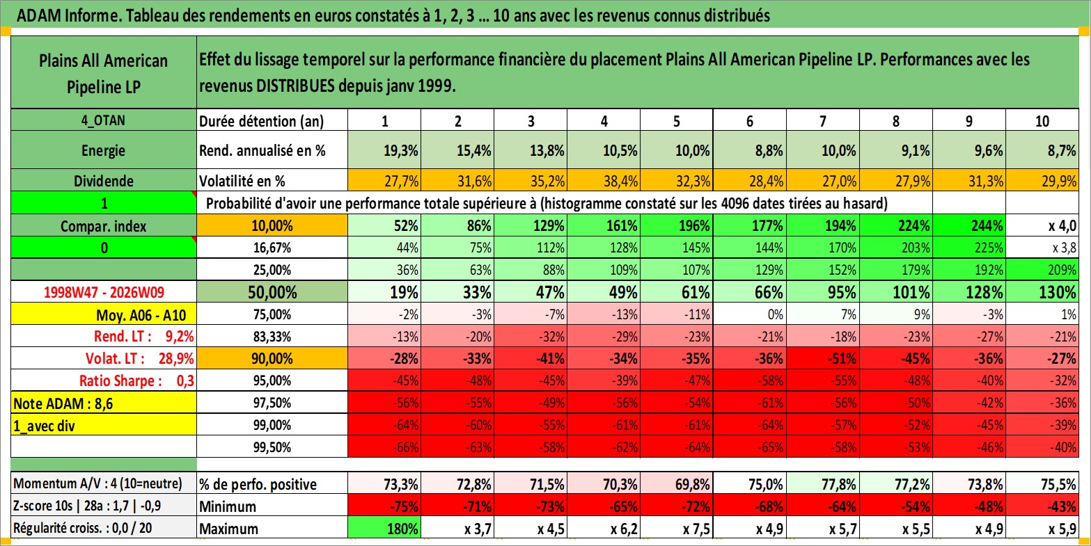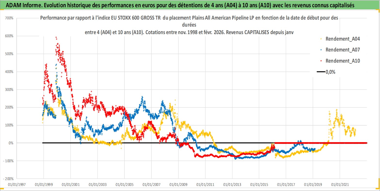 Site dédié aux investisseursPage dédiée sur site financeAnalyse des valorisations hebdomadaires de l'action Plains All American Pipeline LP. Cet actif est cote en USD. Les valorisations sont en contrevaleur EURO et couvrent les semaines 1998W47 a 2026W09. Les revenus de cet actif financier sont pris en compte depuis la semaine 1999W04. La note ESG de cet actif n'est pas connue.