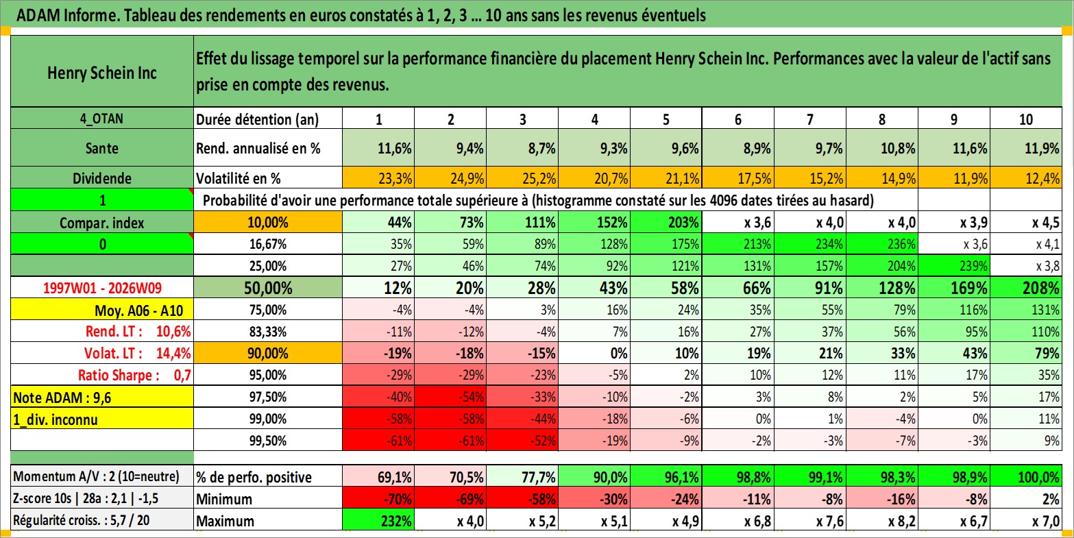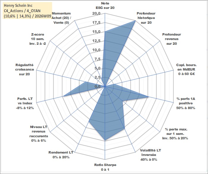 Site dédié aux investisseursPage dédiée sur site financeAnalyse des valorisations hebdomadaires de l'action Henry Schein Inc. Cet actif est cote en USD. Les valorisations sont en contrevaleur EURO et couvrent les semaines 1997W01 a 2026W09. Les revenus de cet actif financier ne sont pas connus car non existants ou non disponibles sur le site Yahoo Finance. La note globale ESG de cet actif est estimee a 15.0 (apres rebasage entre 0 et 20).