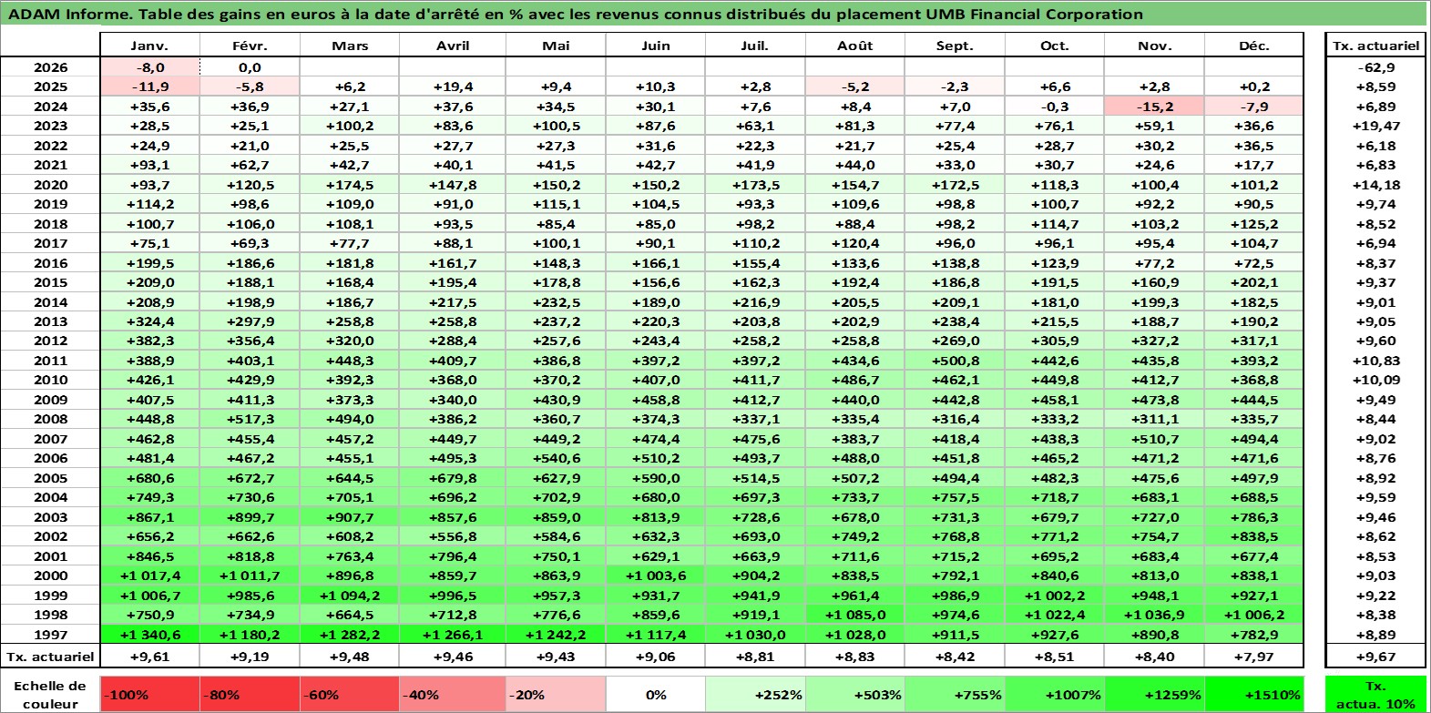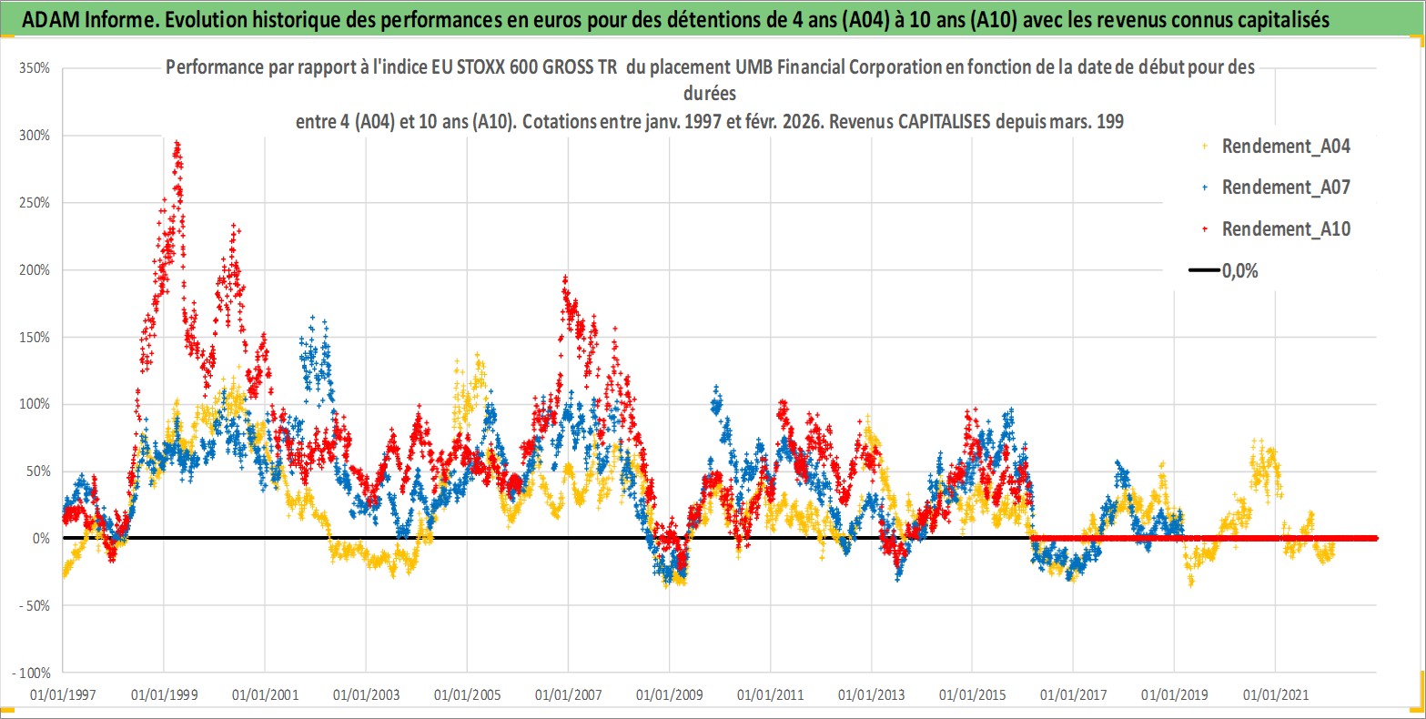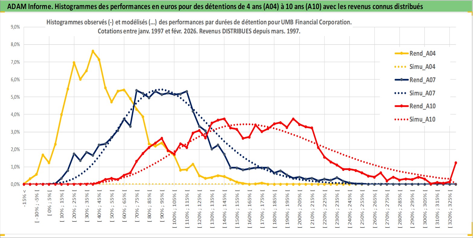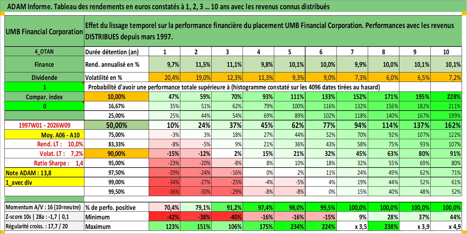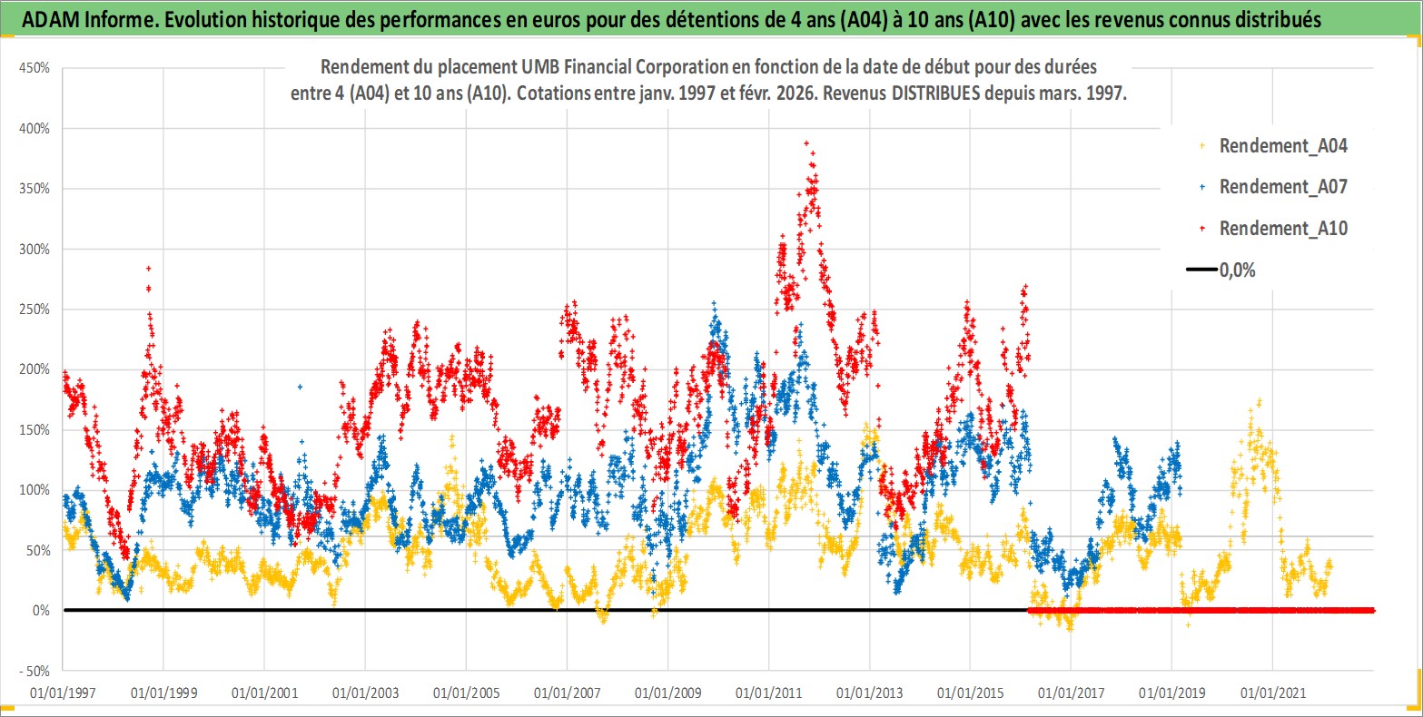 Site dédié aux investisseursPage dédiée sur site financeAnalyse des valorisations hebdomadaires de l'action UMB Financial Corporation. Cet actif est cote en USD. Les valorisations sont en contrevaleur EURO et couvrent les semaines 1997W01 a 2026W09. Les revenus de cet actif financier sont pris en compte depuis la semaine 1997W11. La note ESG de cet actif n'est pas connue.
