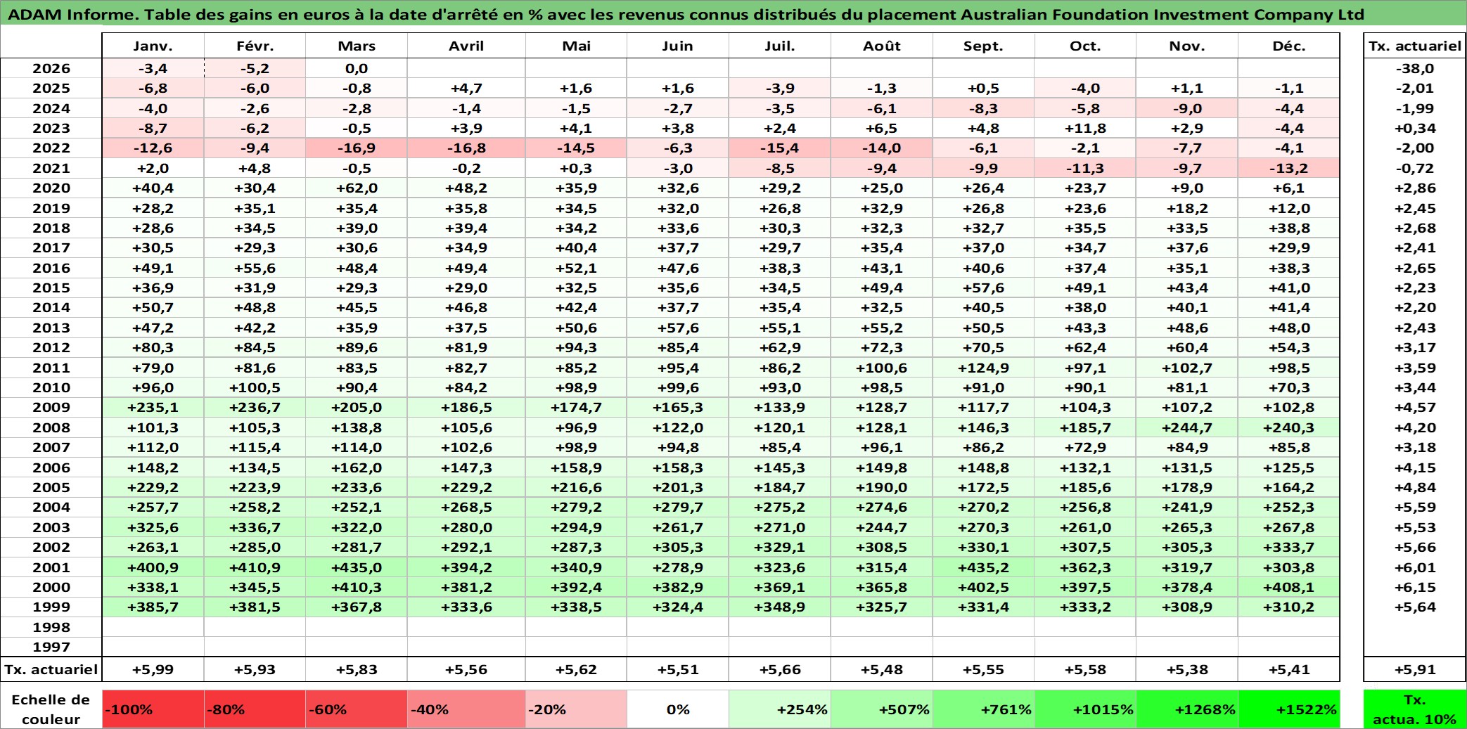 Dernière perfo 10 ans en %