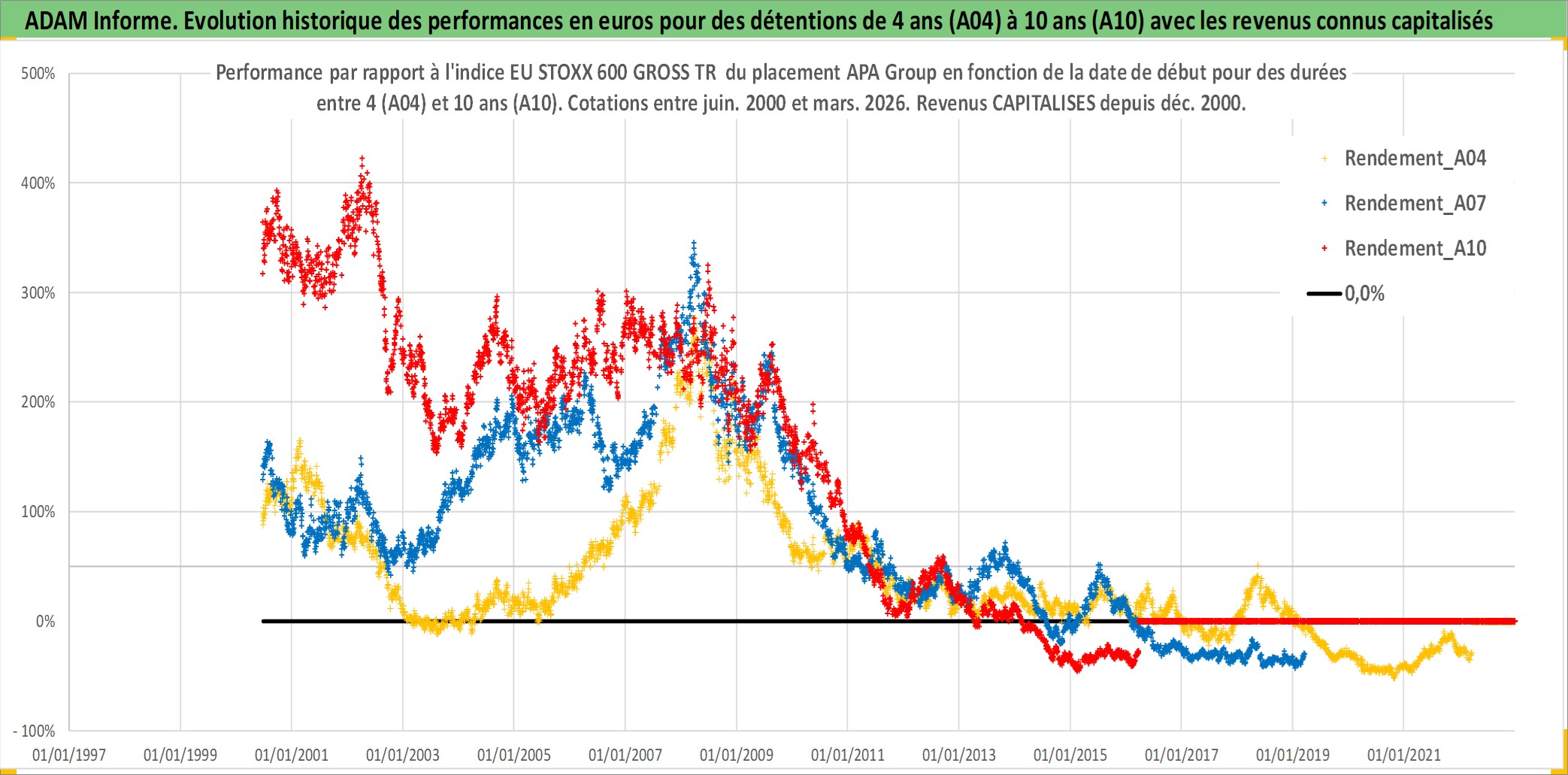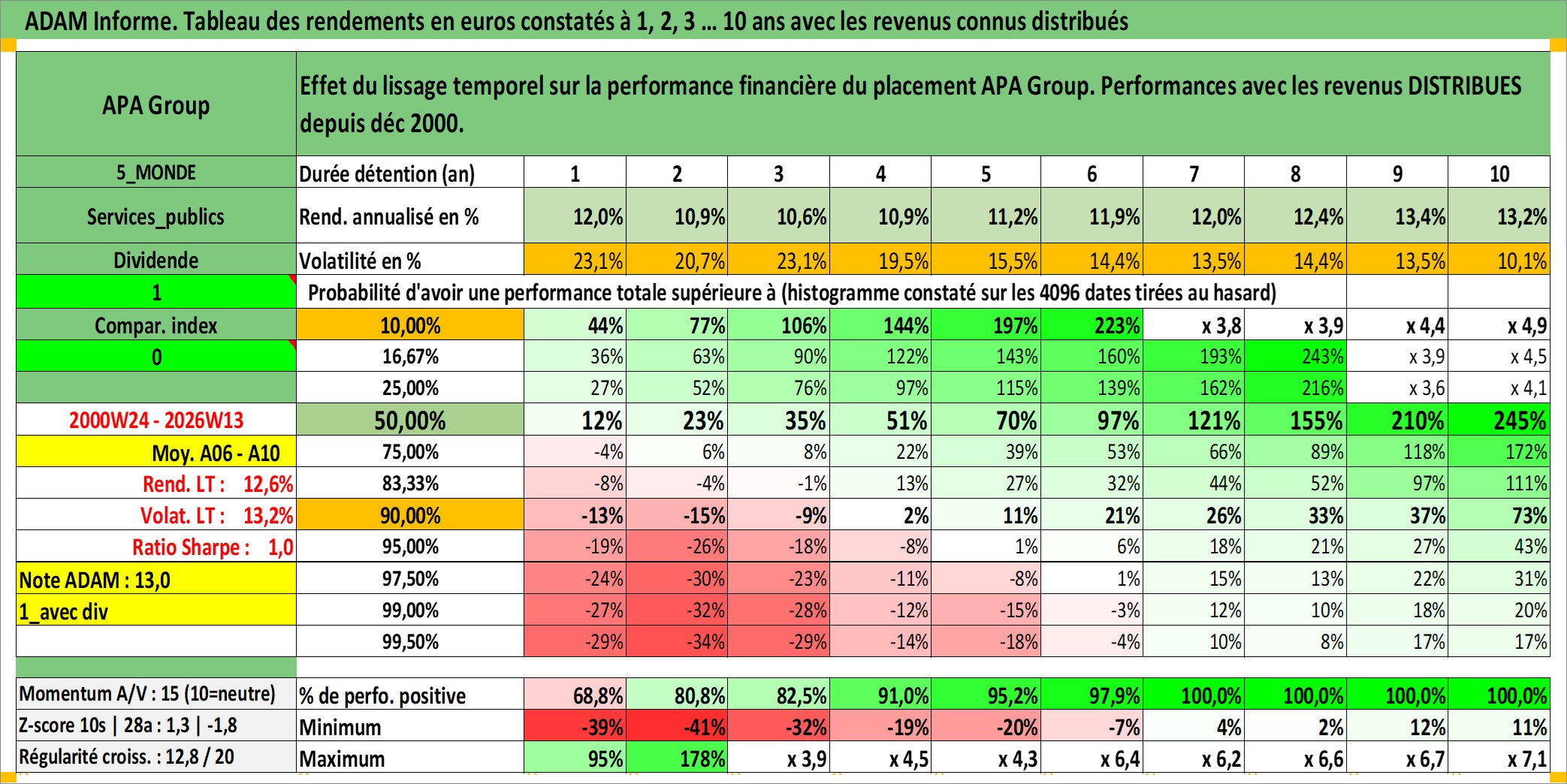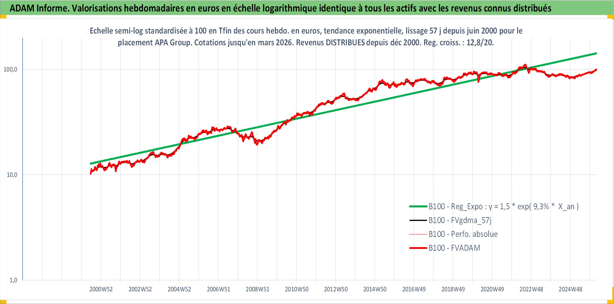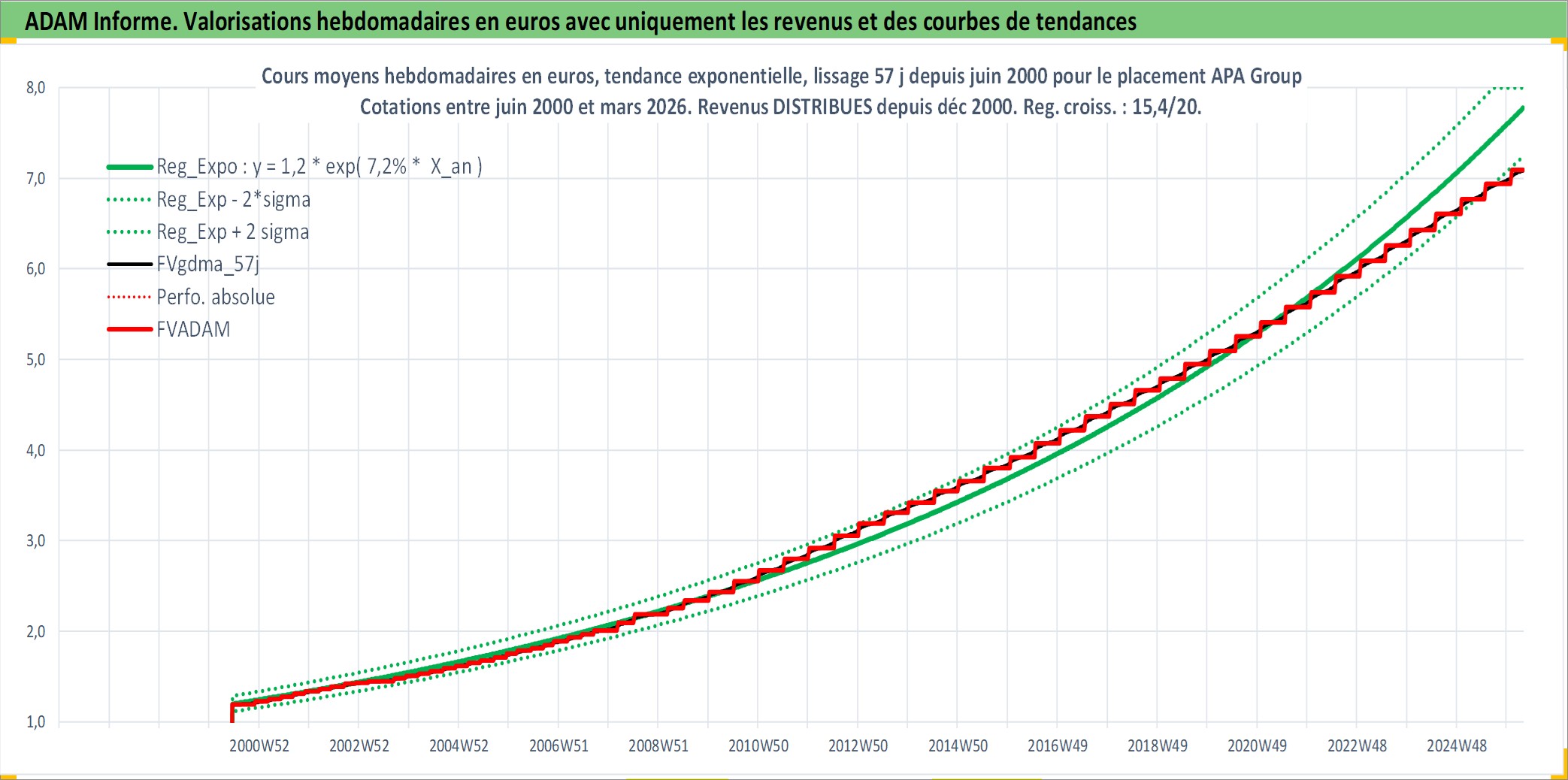 Site dédié aux investisseursPage dédiée sur site financeAnalyse des valorisations hebdomadaires de l'action APA Group. Cet actif est cote en AUD. Les valorisations sont en contrevaleur EURO et couvrent les semaines 2000W24 a 2026W13. Les revenus de cet actif financier sont pris en compte depuis la semaine 2000W48. La note globale ESG de cet actif est estimee a 4.0 (apres rebasage entre 0 et 20).