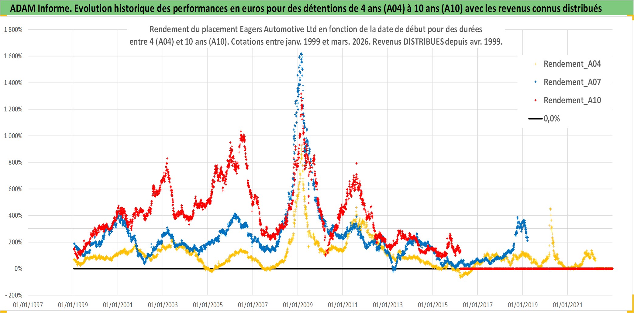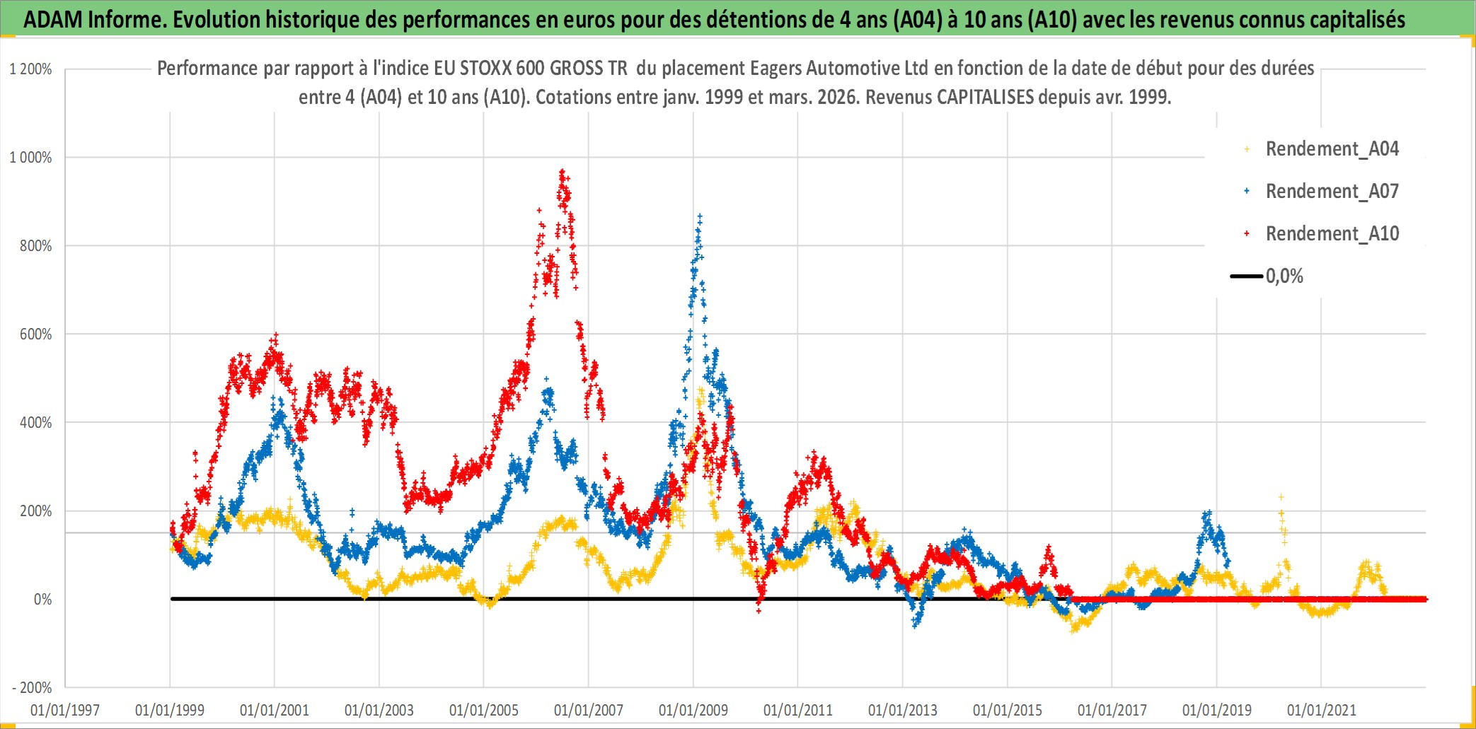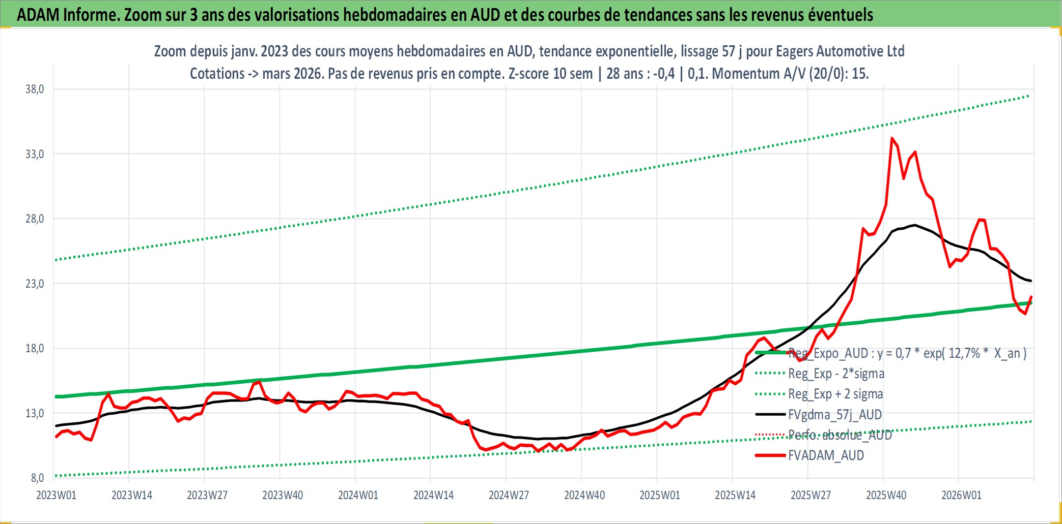 Site dédié aux investisseursPage dédiée sur site financeAnalyse des valorisations hebdomadaires de l'action Eagers Automotive Ltd. Cet actif est cote en AUD. Les valorisations sont en contrevaleur EURO et couvrent les semaines 1999W01 a 2026W13. Les revenus de cet actif financier sont pris en compte depuis la semaine 1999W17. La note ESG de cet actif n'est pas connue.