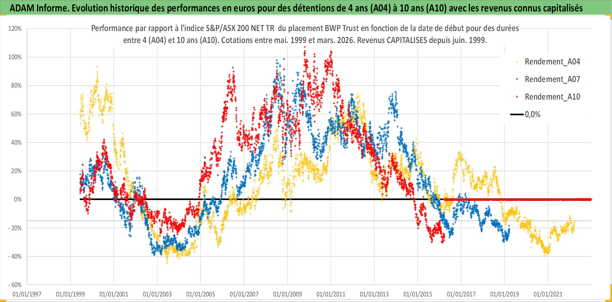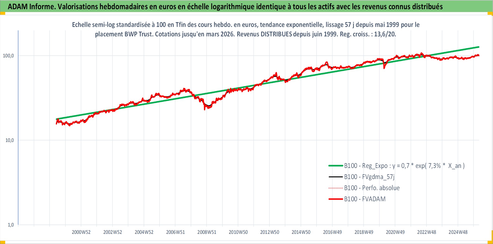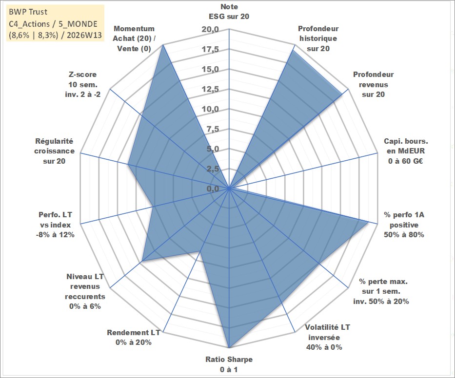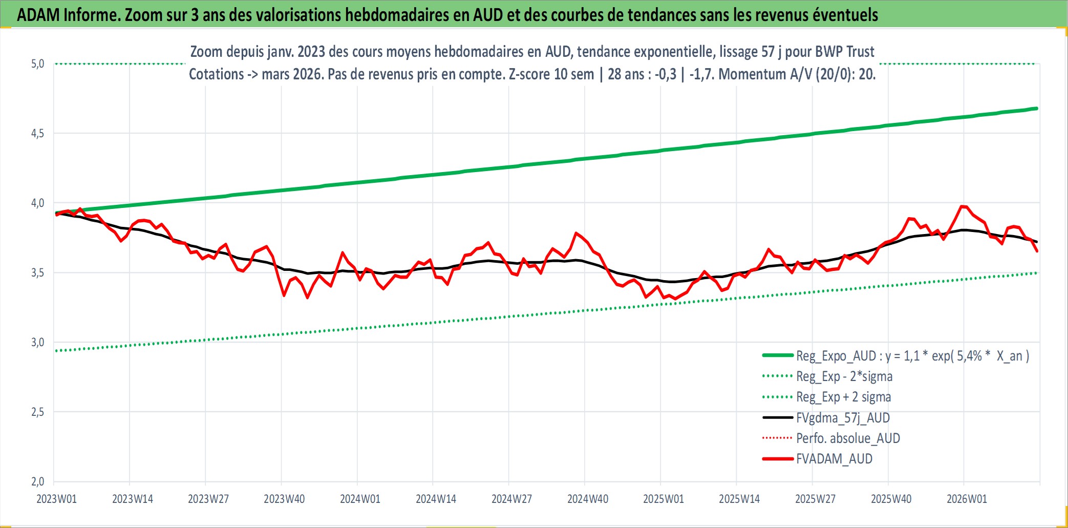 Site dédié aux investisseursPage dédiée sur site financeAnalyse des valorisations hebdomadaires de l'action BWP Trust. Cet actif est cote en AUD. Les valorisations sont en contrevaleur EURO et couvrent les semaines 1999W22 a 2026W13. Les revenus de cet actif financier sont pris en compte depuis la semaine 1999W25. La note ESG de cet actif n'est pas connue.