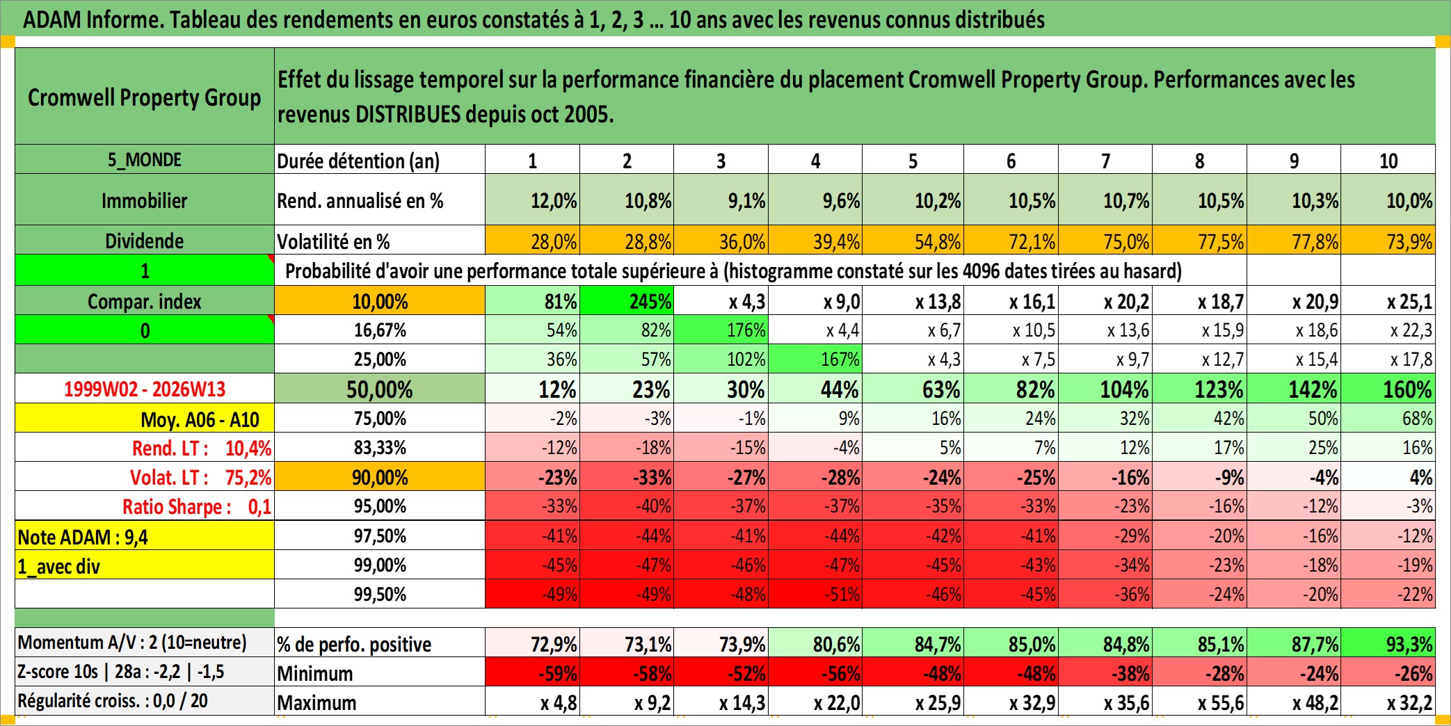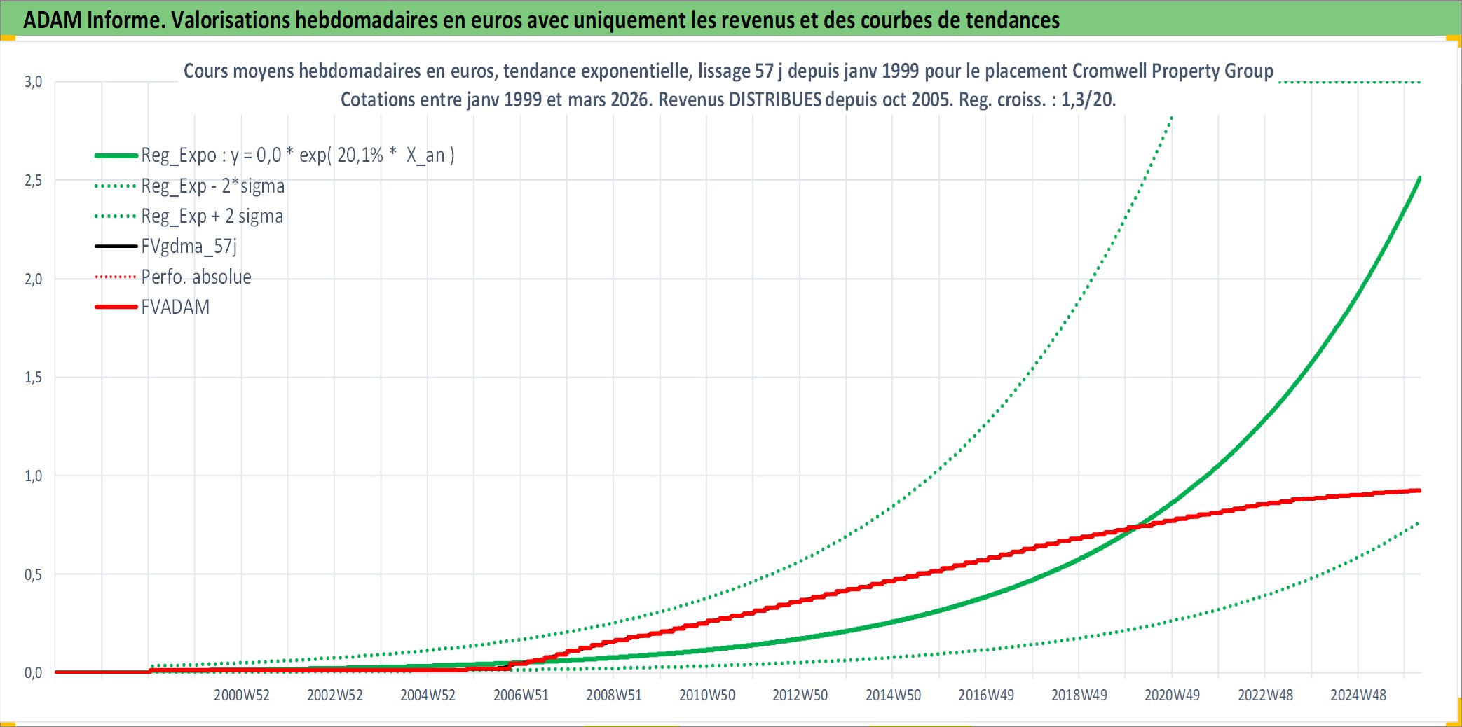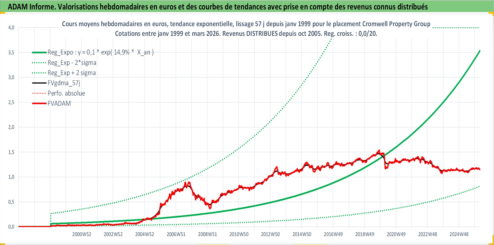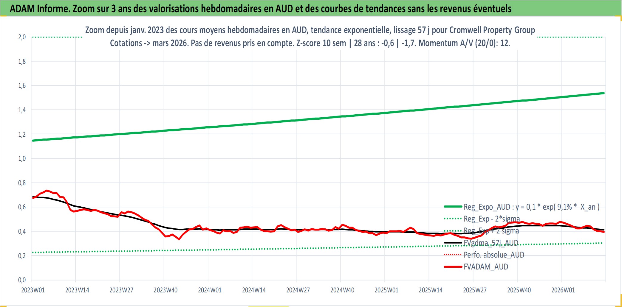 Site dédié aux investisseursPage dédiée sur site financeAnalyse des valorisations hebdomadaires de l'action Cromwell Property Group. Cet actif est cote en AUD. Les valorisations sont en contrevaleur EURO et couvrent les semaines 1999W02 a 2026W13. Les revenus de cet actif financier sont pris en compte depuis la semaine 2005W43. La note ESG de cet actif n'est pas connue.