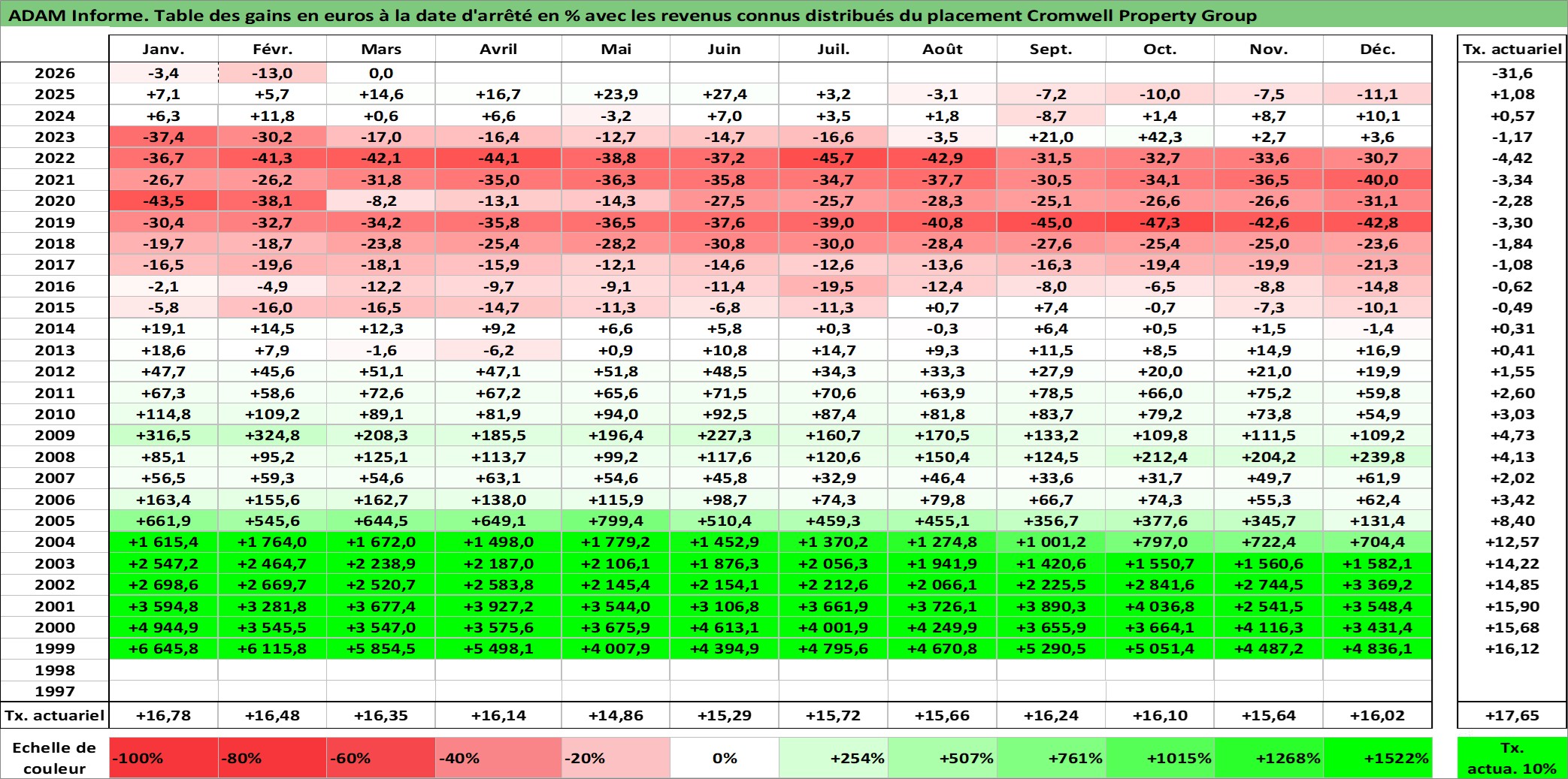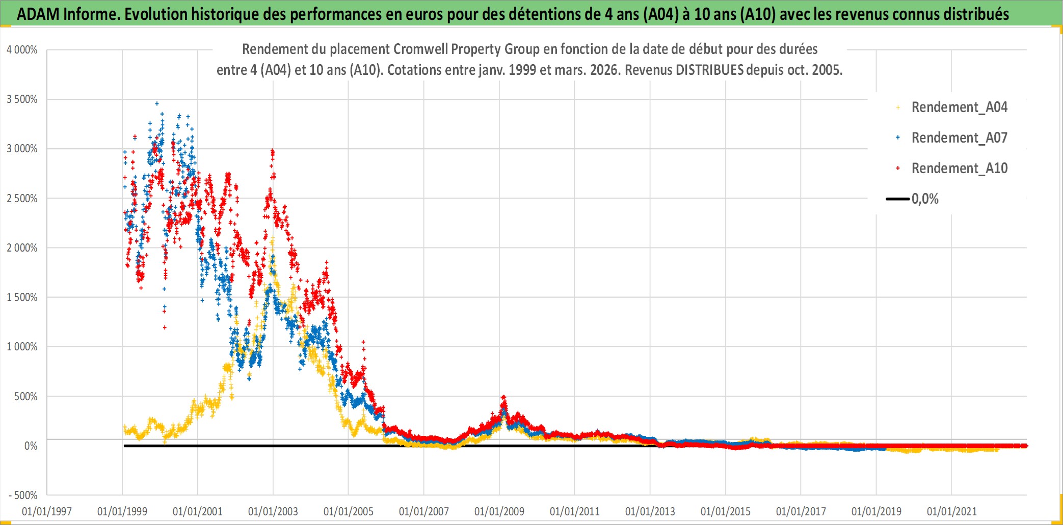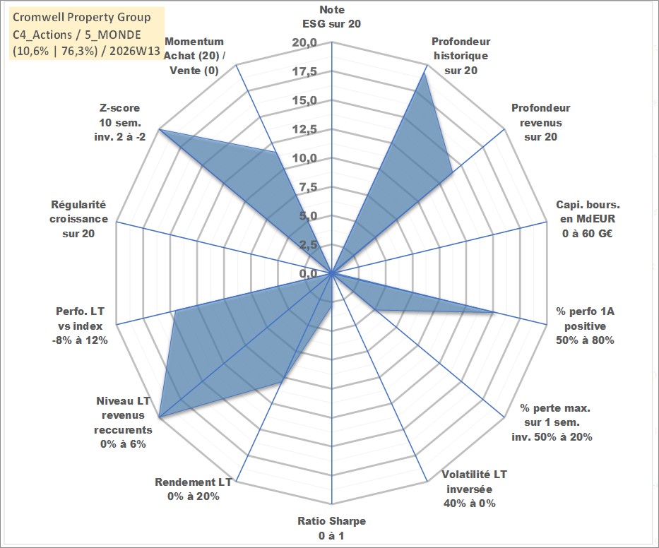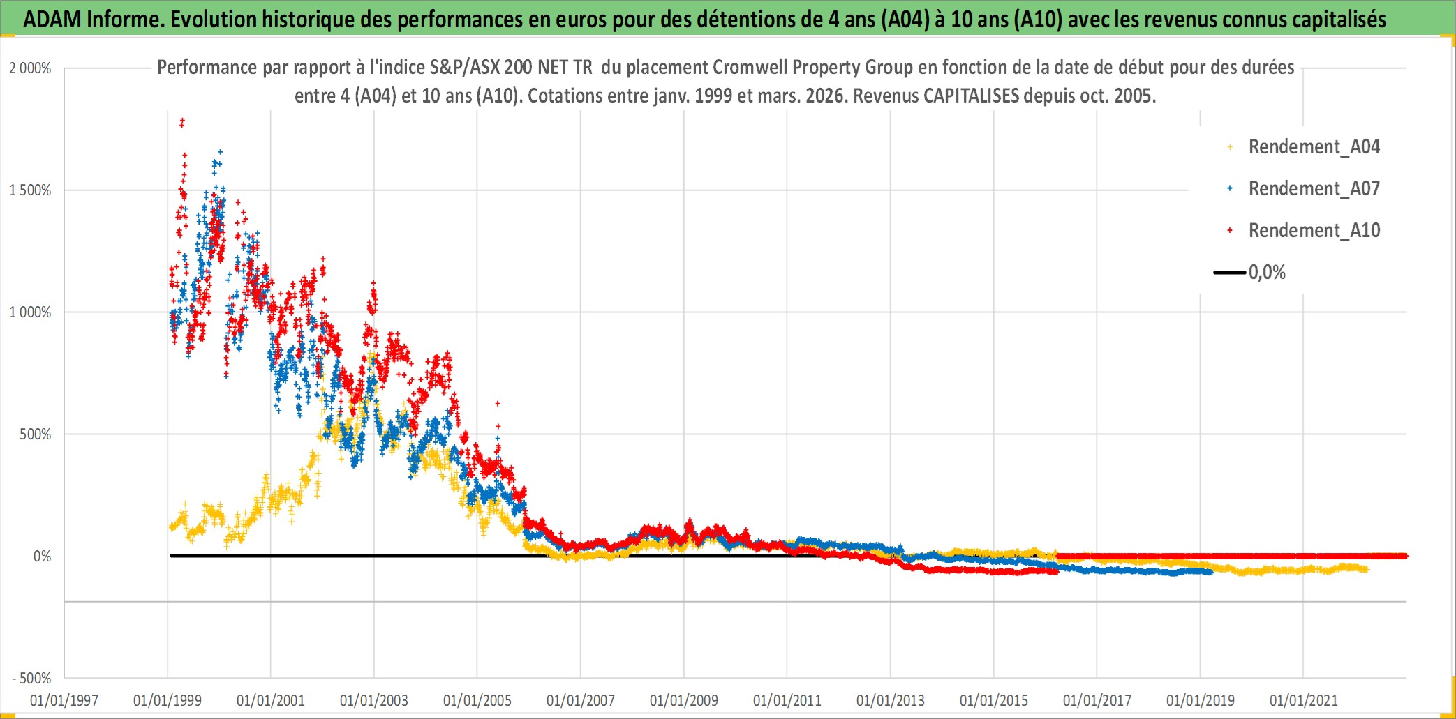 Site dédié aux investisseursPage dédiée sur site financeAnalyse des valorisations hebdomadaires de l'action Cromwell Property Group. Cet actif est cote en AUD. Les valorisations sont en contrevaleur EURO et couvrent les semaines 1999W02 a 2026W13. Les revenus de cet actif financier sont pris en compte depuis la semaine 2005W43. La note ESG de cet actif n'est pas connue.