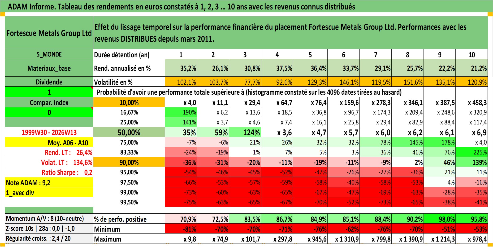Dernière perfo 10 ans en %