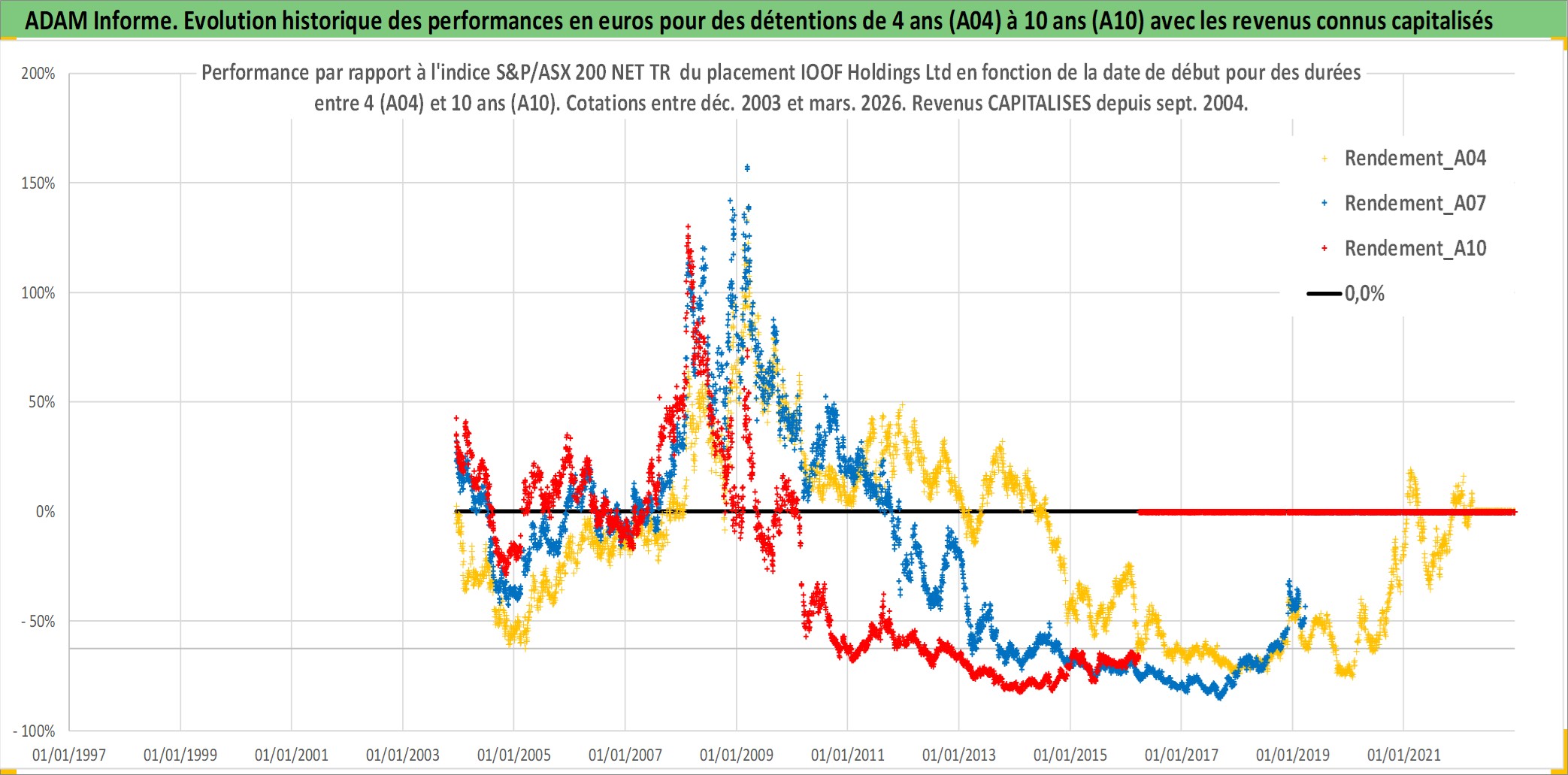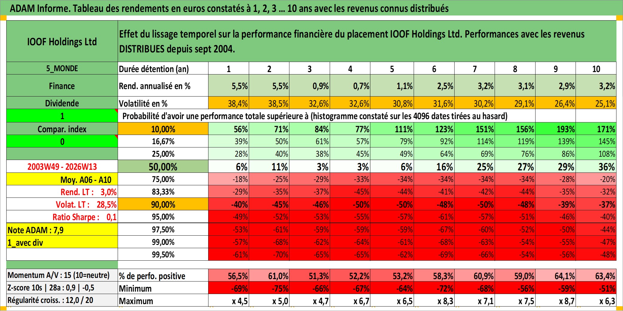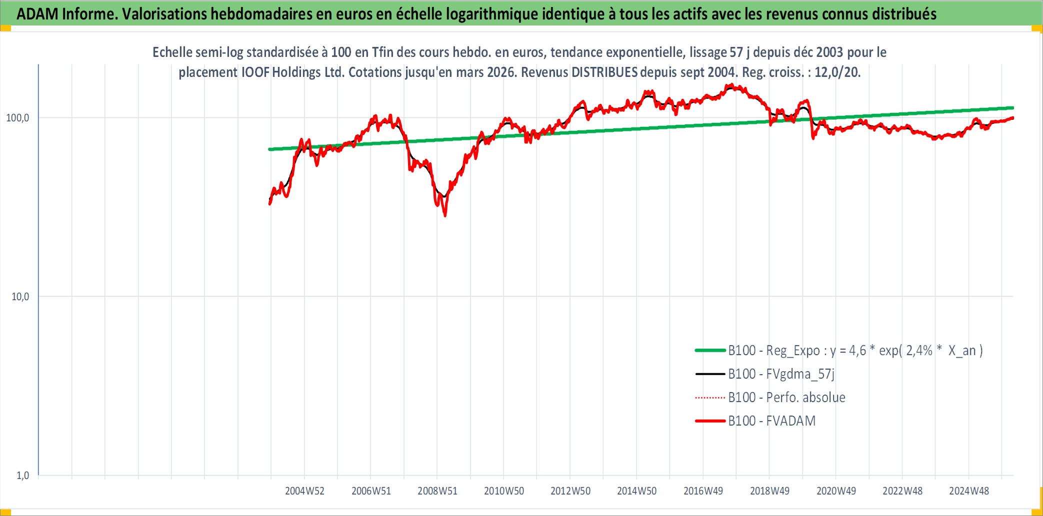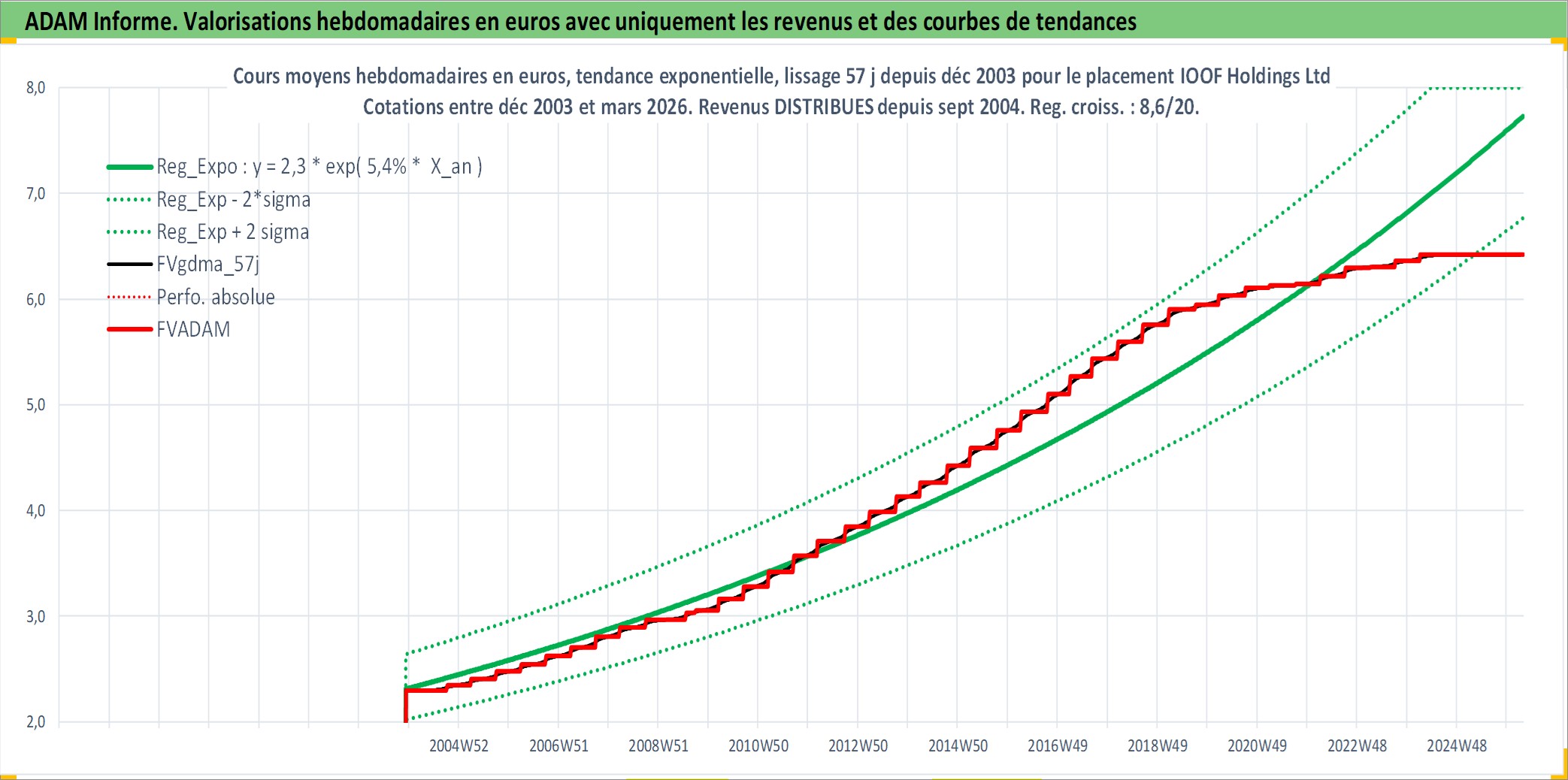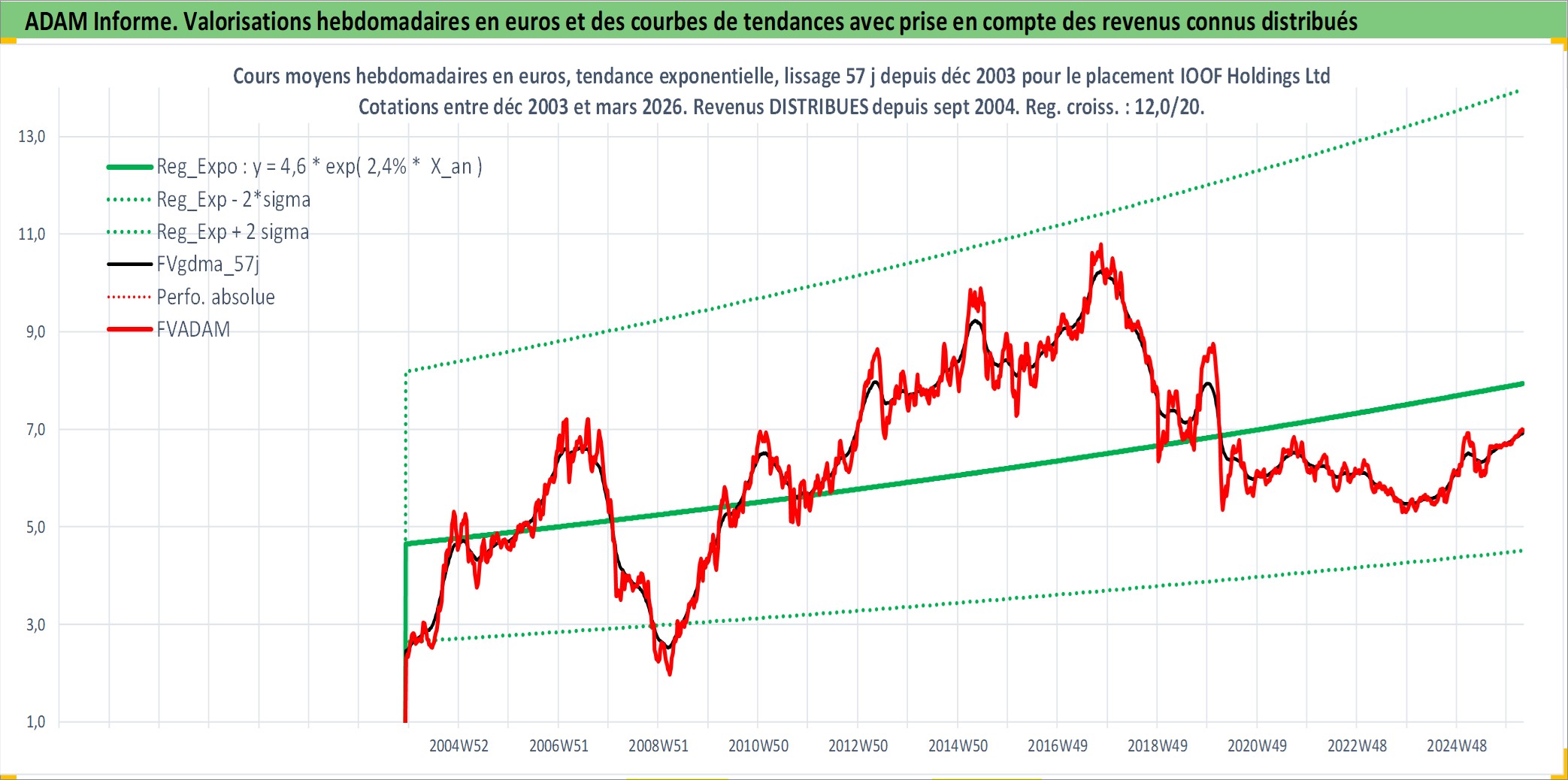 Site dédié aux investisseursPage dédiée sur site financeAnalyse des valorisations hebdomadaires de l'action IOOF Holdings Ltd. Cet actif est cote en AUD. Les valorisations sont en contrevaleur EURO et couvrent les semaines 2003W49 a 2026W13. Les revenus de cet actif financier sont pris en compte depuis la semaine 2004W40. La note ESG de cet actif n'est pas connue.