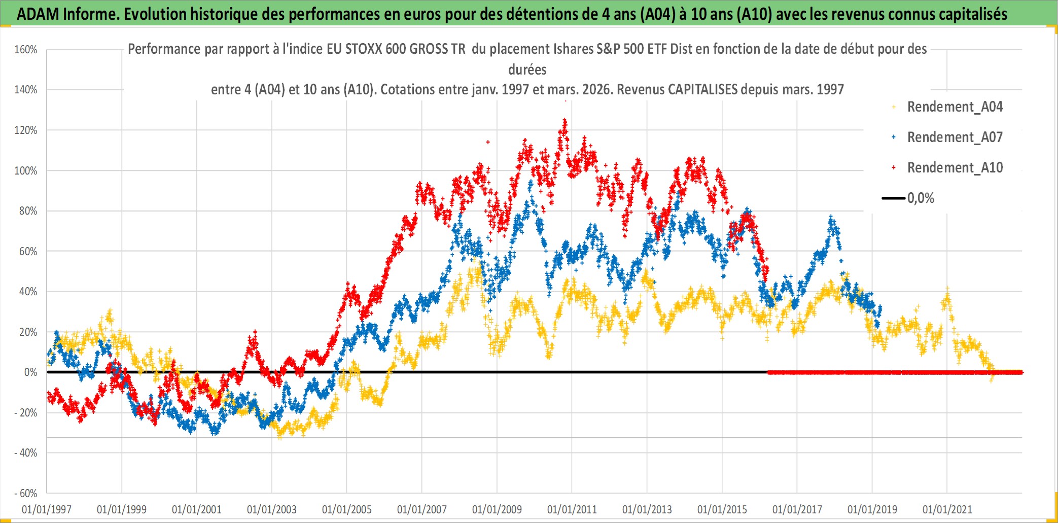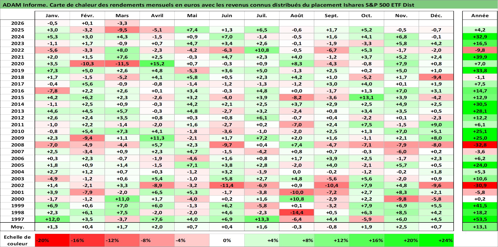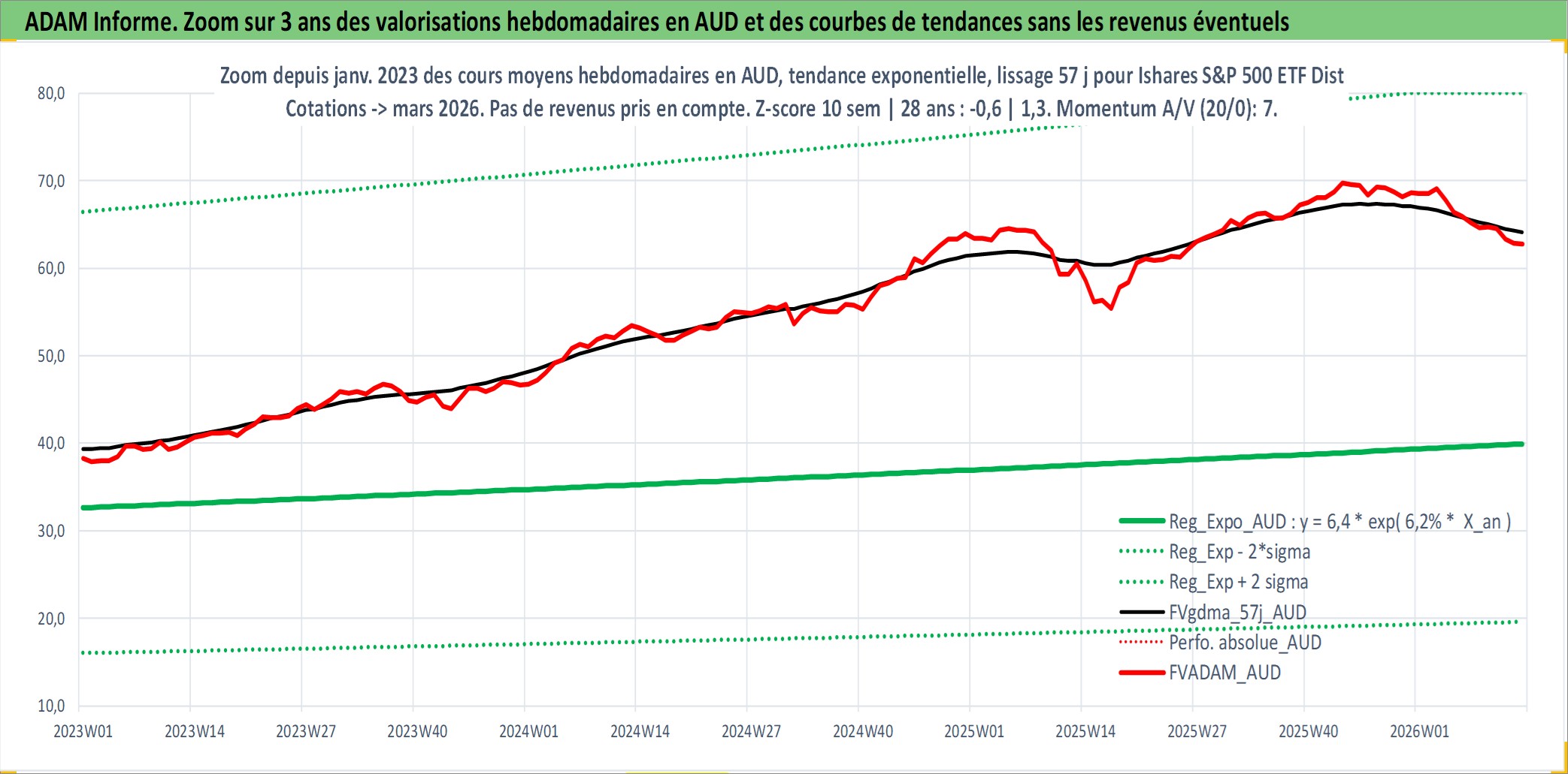Site dédié aux investisseursPage dédiée sur site financeAnalyse des valorisations hebdomadaires du fonds Ishares S&P 500 ETF Dist. Cet actif est cote en AUD. Les valorisations sont en contrevaleur EURO et couvrent les semaines 1997W01 a 2026W13. Les revenus de cet actif financier sont pris en compte depuis la semaine 1997W13. La note ESG de cet actif n'est pas connue.