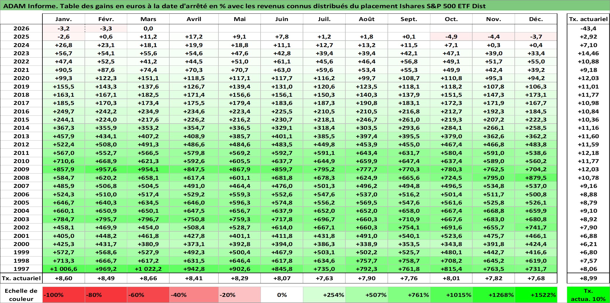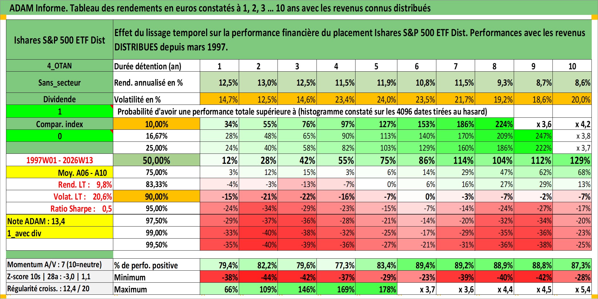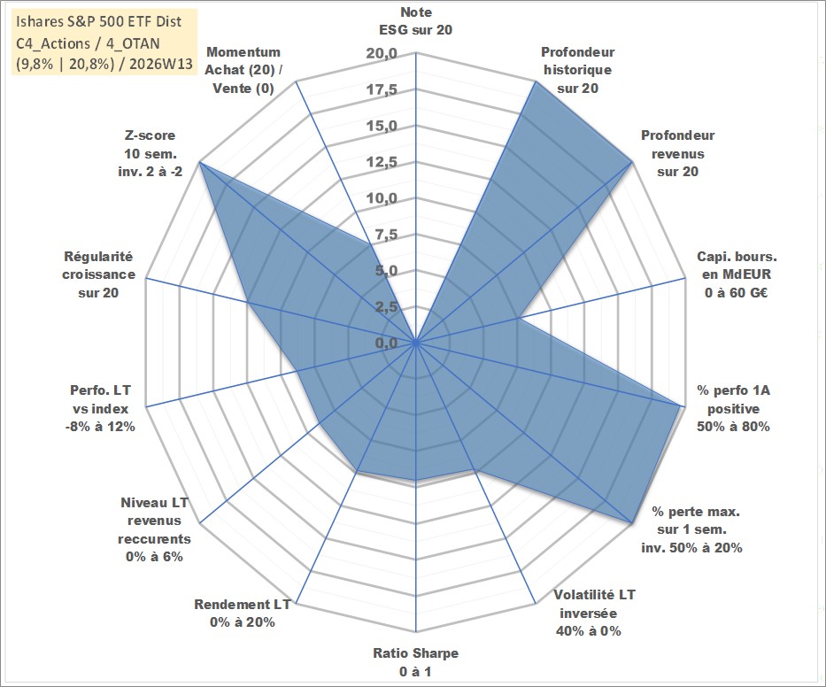 Site dédié aux investisseursPage dédiée sur site financeAnalyse des valorisations hebdomadaires du fonds Ishares S&P 500 ETF Dist. Cet actif est cote en AUD. Les valorisations sont en contrevaleur EURO et couvrent les semaines 1997W01 a 2026W13. Les revenus de cet actif financier sont pris en compte depuis la semaine 1997W13. La note ESG de cet actif n'est pas connue.