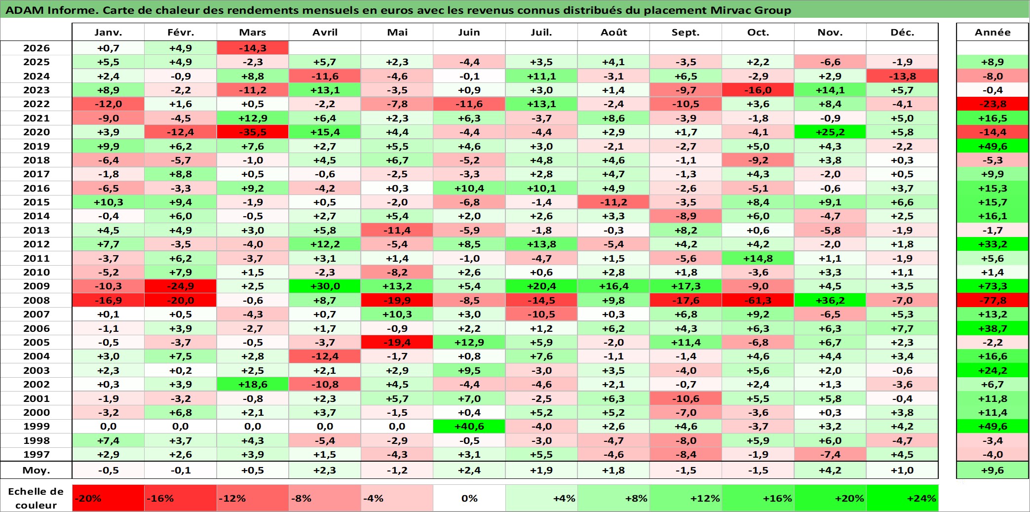 Dernière perfo 1 an en %