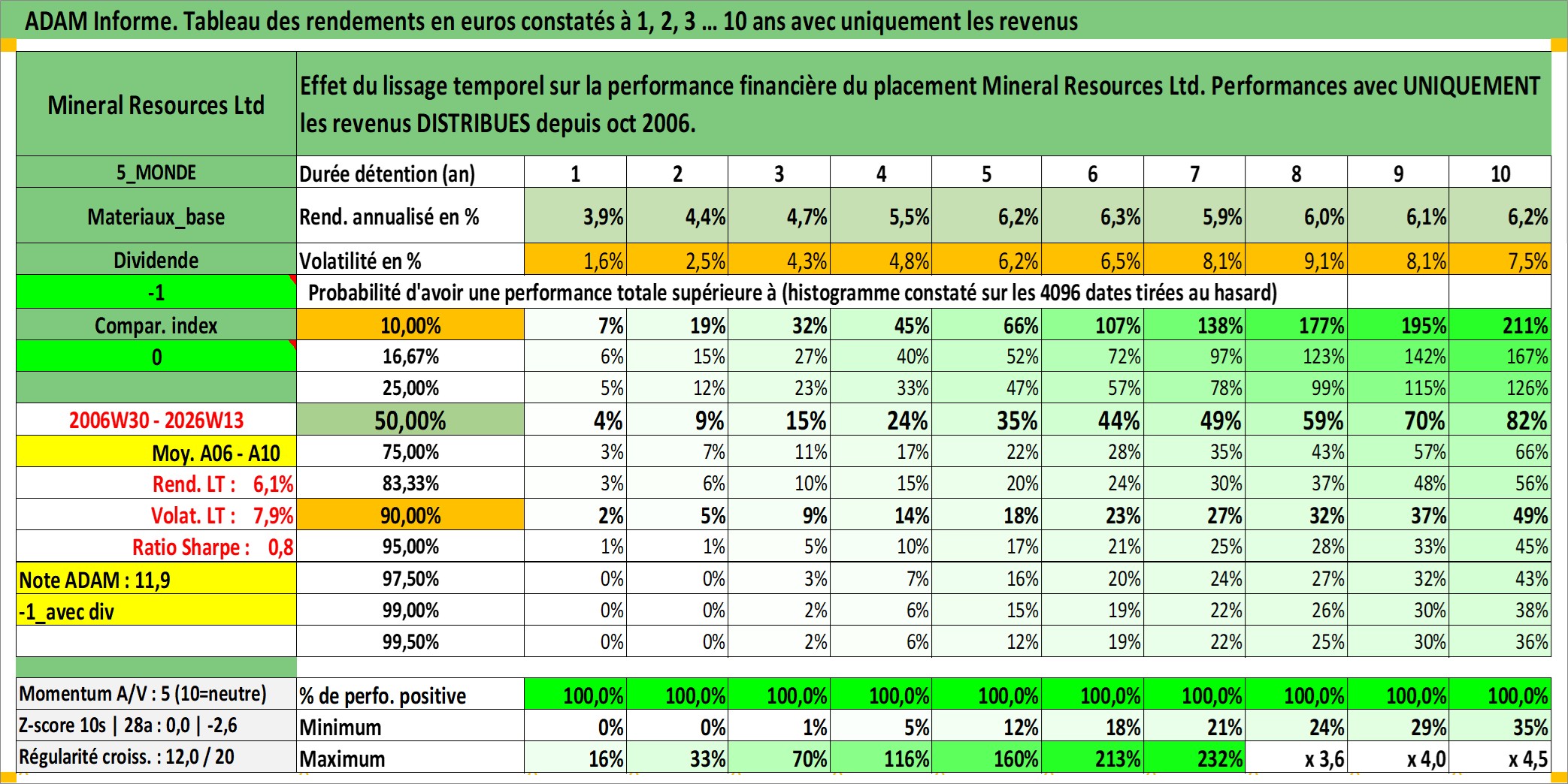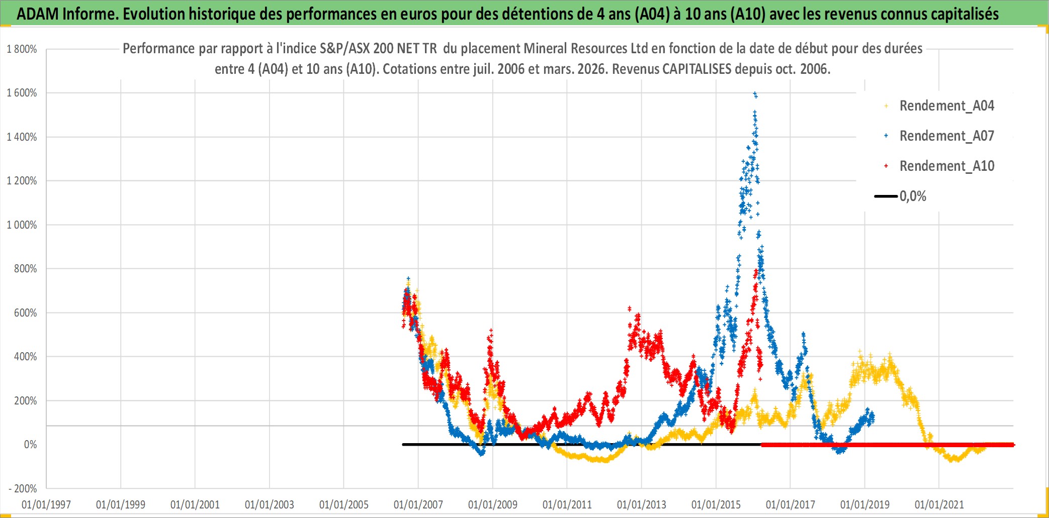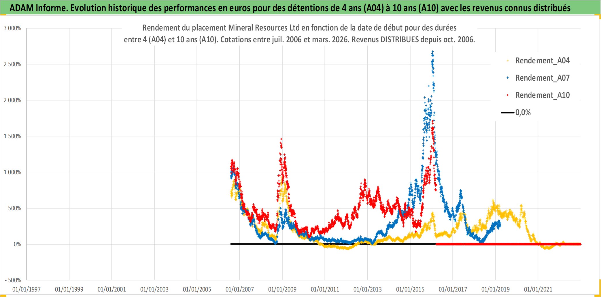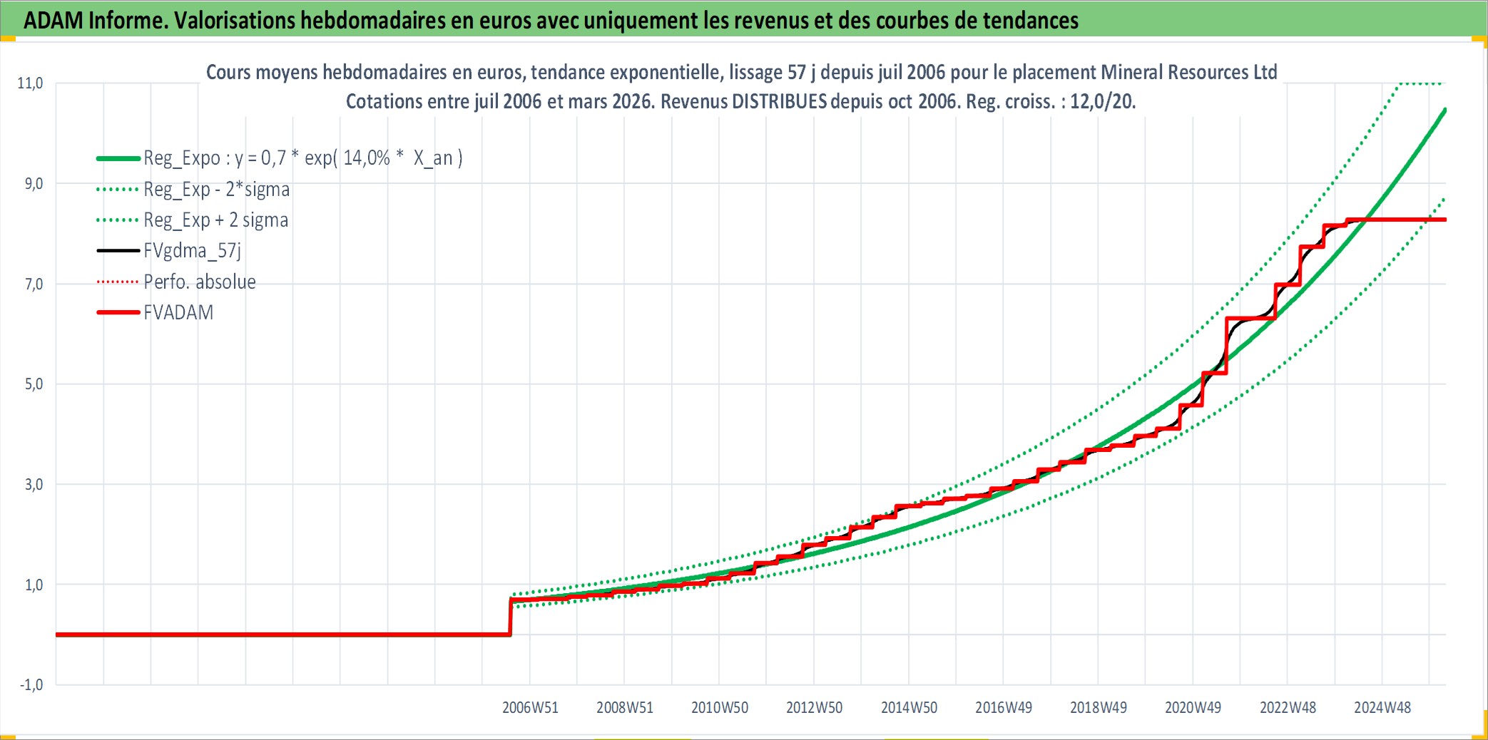 Site dédié aux investisseursPage dédiée sur site financeAnalyse des valorisations hebdomadaires de l'action Mineral Resources Ltd. Cet actif est cote en AUD. Les valorisations sont en contrevaleur EURO et couvrent les semaines 2006W30 a 2026W13. Les revenus de cet actif financier sont pris en compte depuis la semaine 2006W41. La note ESG de cet actif n'est pas connue.