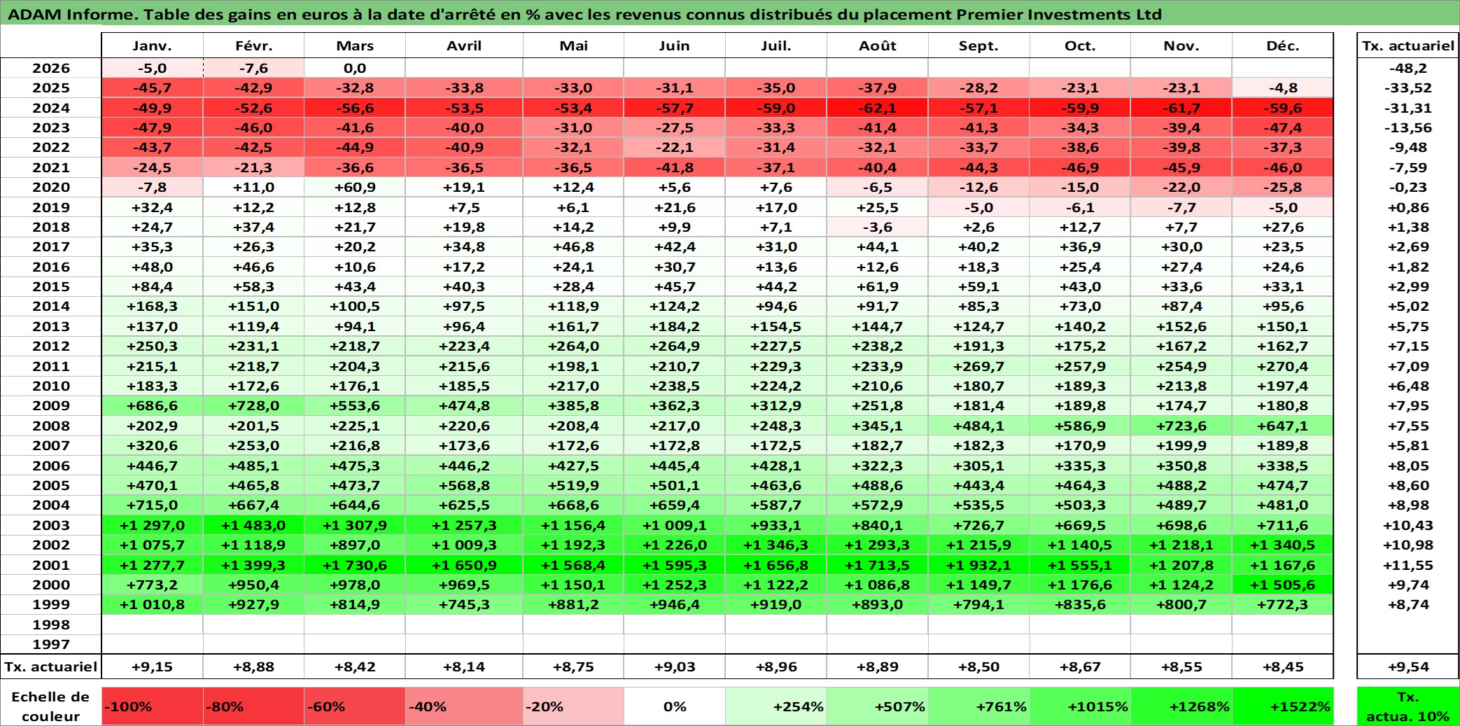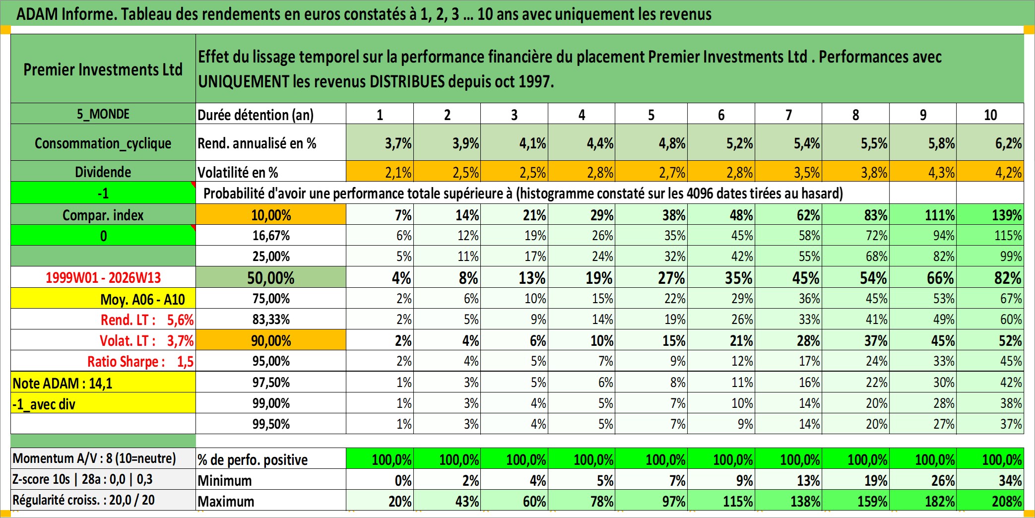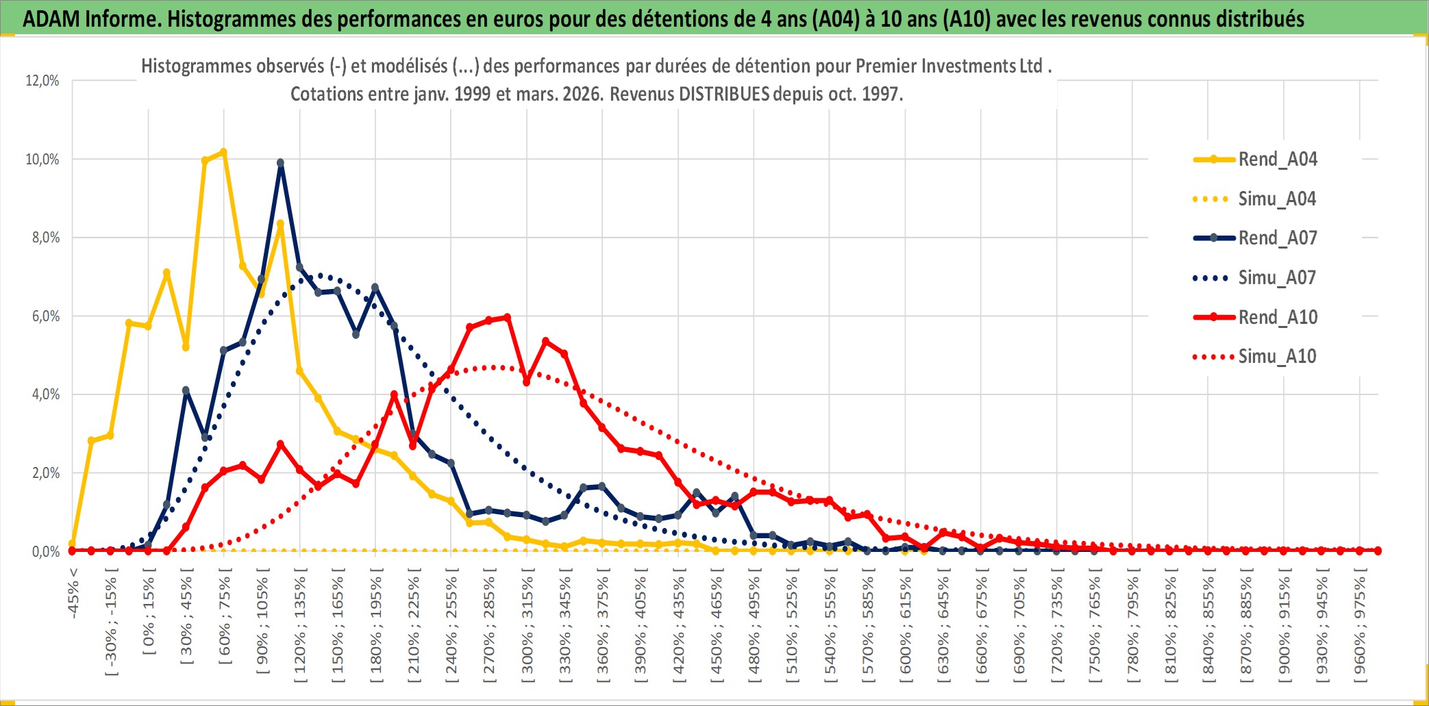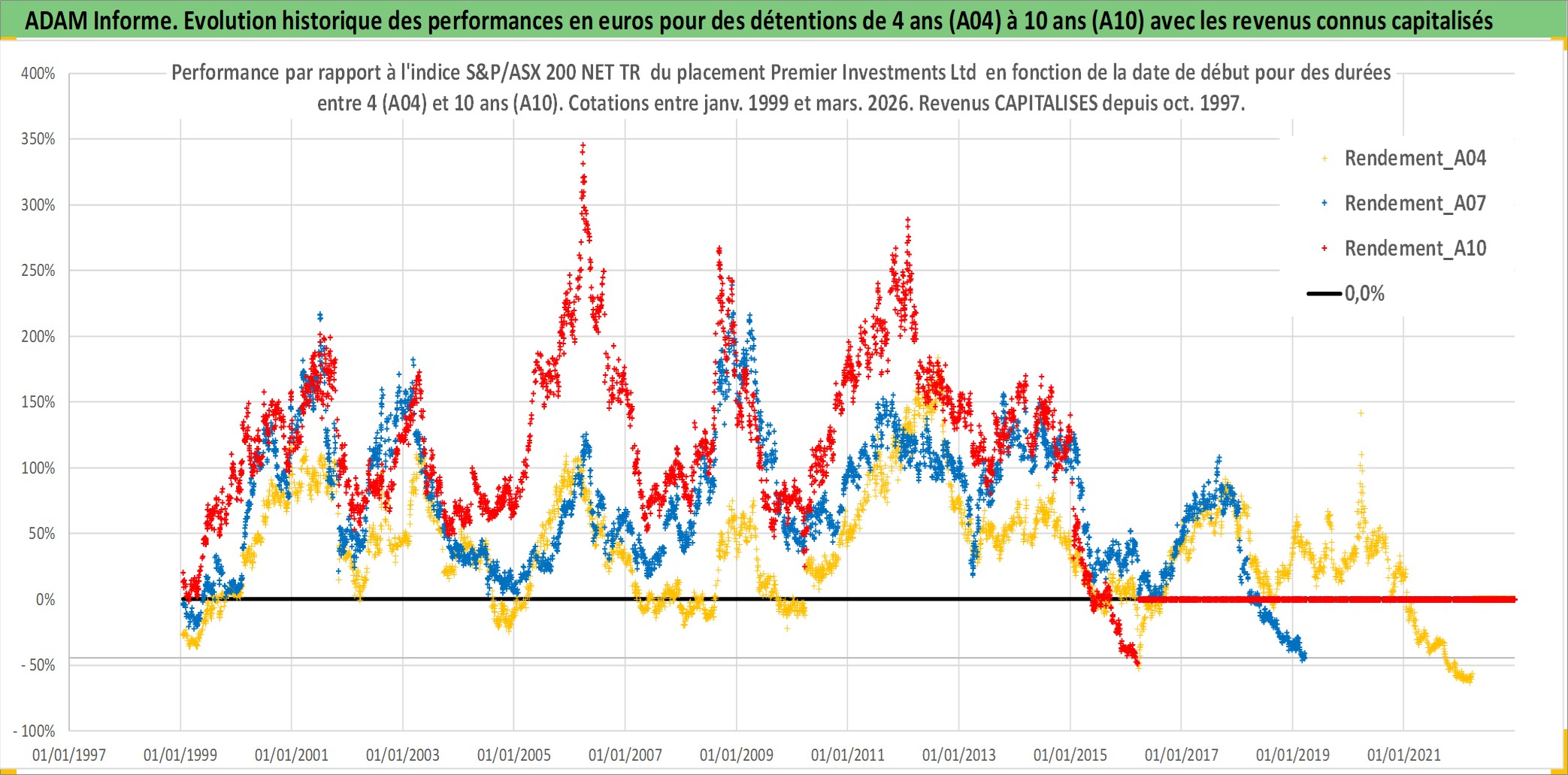 Site dédié aux investisseursPage dédiée sur site financeAnalyse des valorisations hebdomadaires de l'action Premier Investments Ltd . Cet actif est cote en AUD. Les valorisations sont en contrevaleur EURO et couvrent les semaines 1999W01 a 2026W13. Les revenus de cet actif financier sont pris en compte depuis la semaine 1997W44. La note ESG de cet actif n'est pas connue.